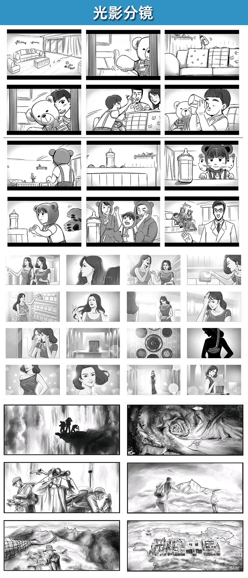 Storyboarding, Comic Strip Illustration, Four-Panel Comic Strip, Comic Strip Manuscript, Story Animation, Storyboard Script Design, Line Art