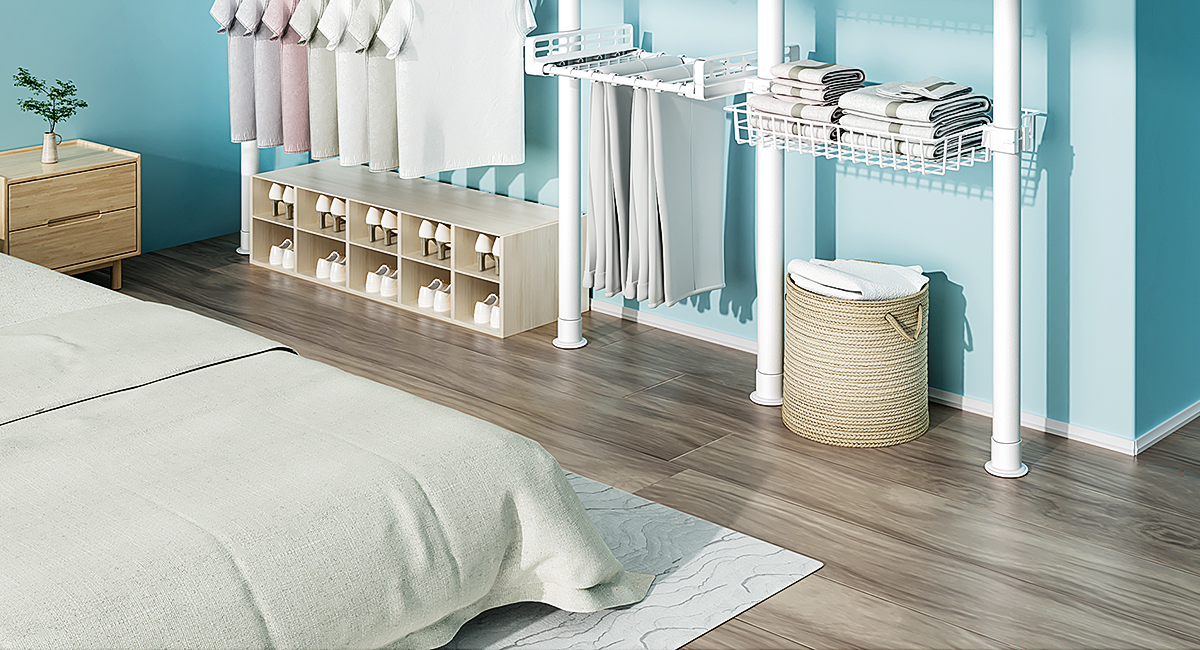 Space-Saving Freestanding Partition for Home Use, Bedroom, Walk-In Closet, Storage Rack, Clothes and Hat Rack