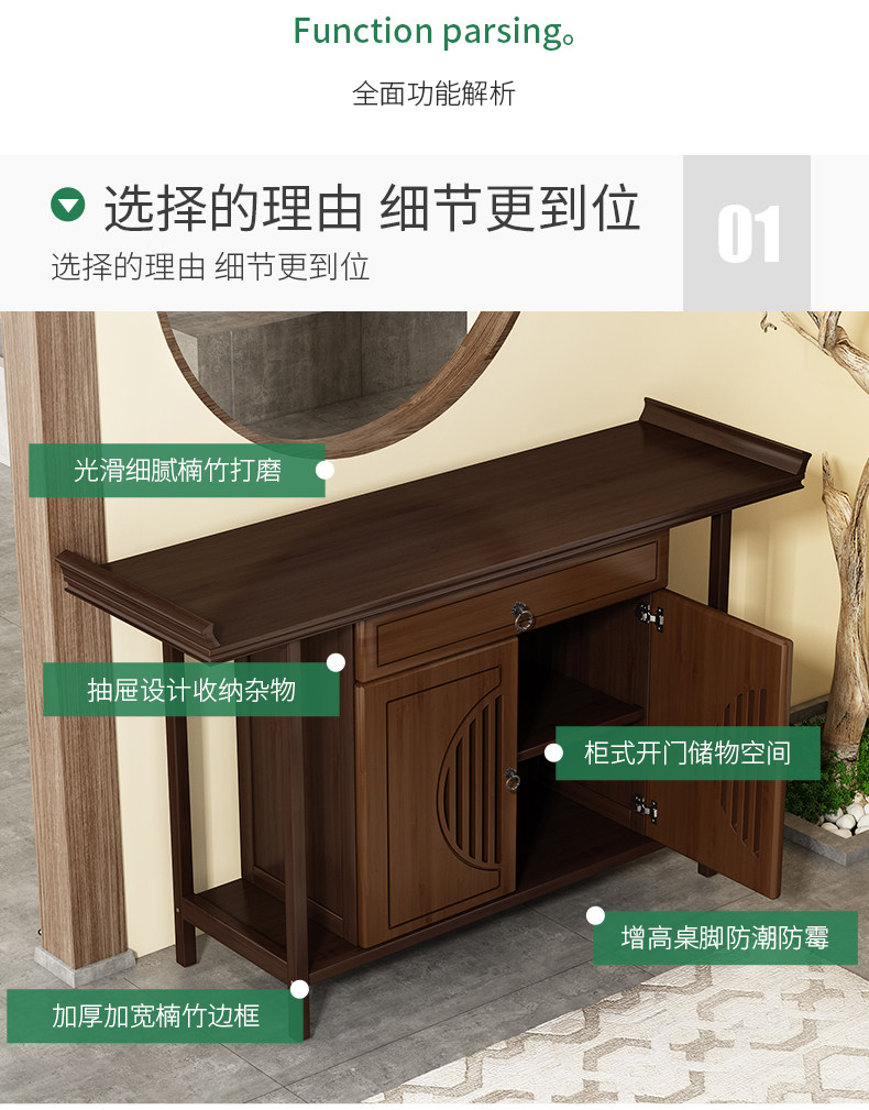 New Chinese-Style Entrance Table, Zen-Style Foyer Narrow Table, Modern Minimalist Living Room Side Table, End View Table, Foyer Cabinet