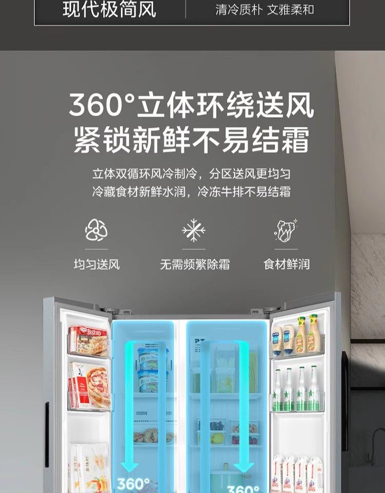 Midea 571 Upgraded Model Double-Door Refrigerator Large Capacity Household Side-By-Side Inverter Air-Cooled Bcd-571Wkpm(E)