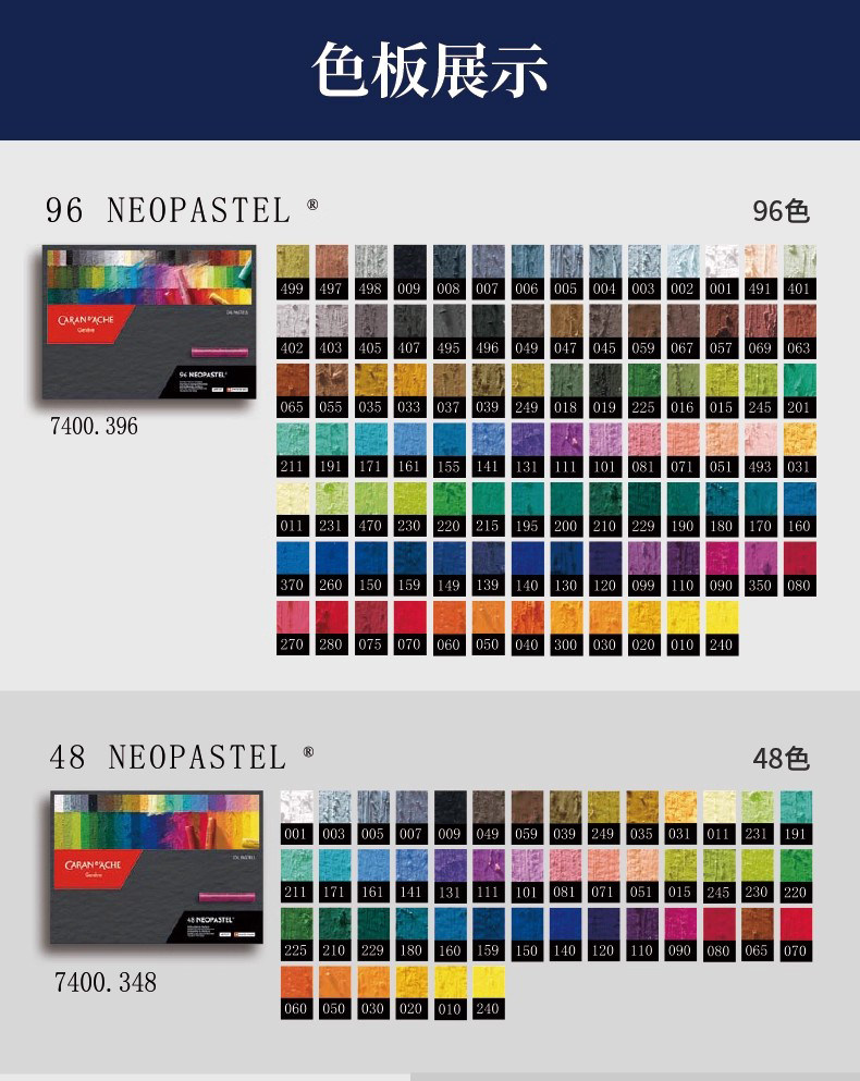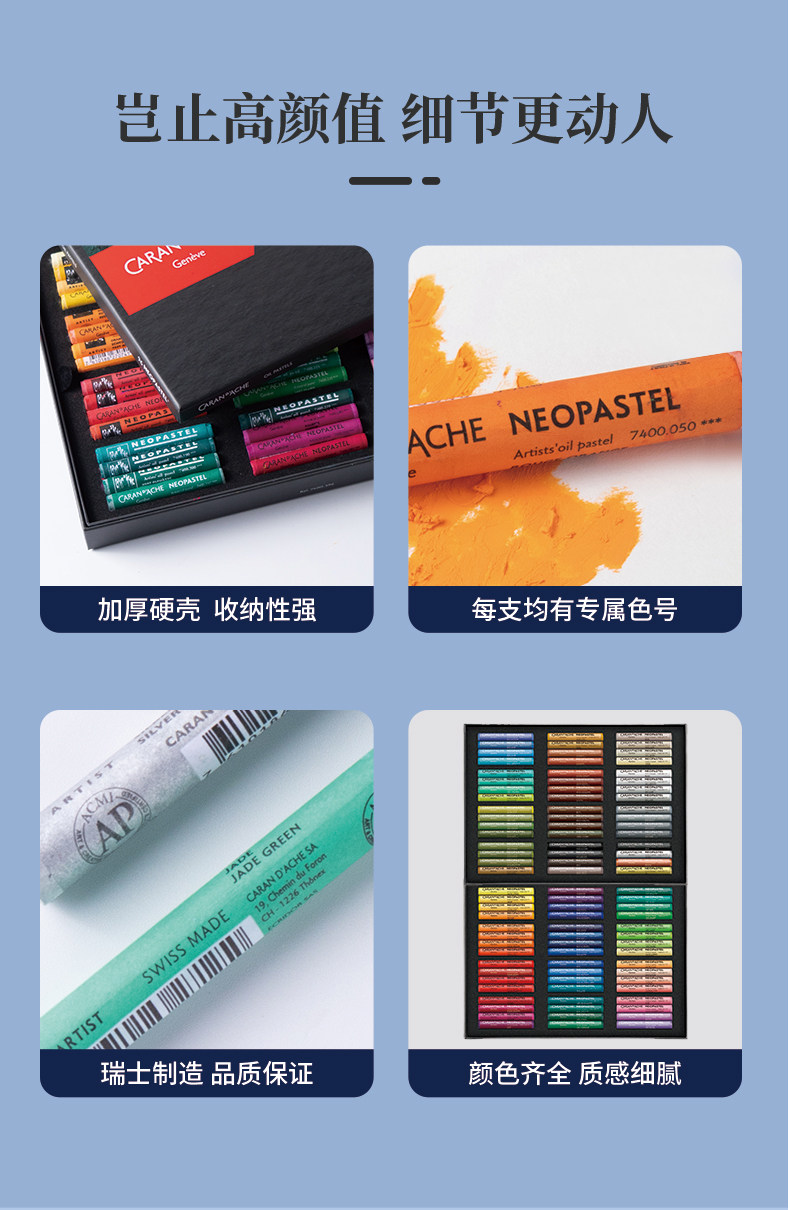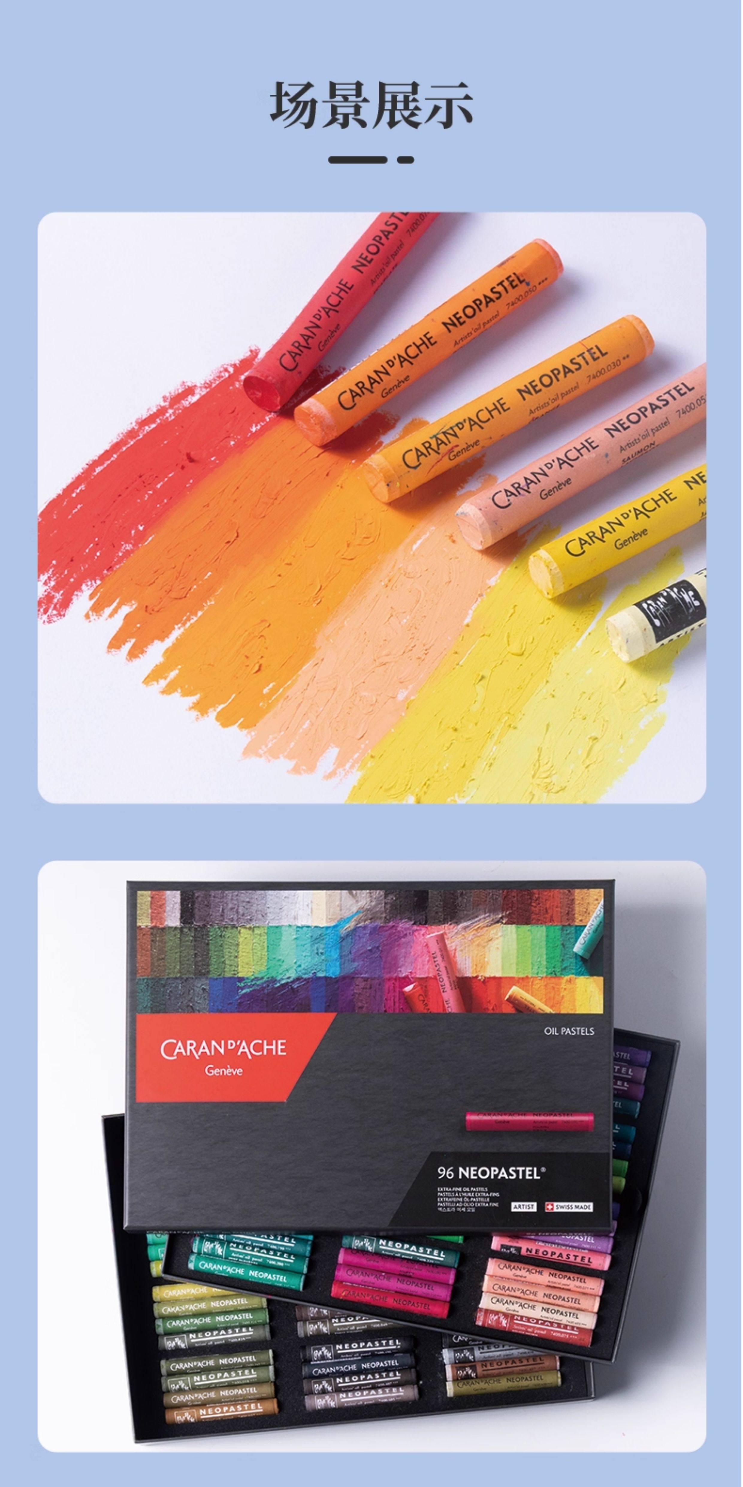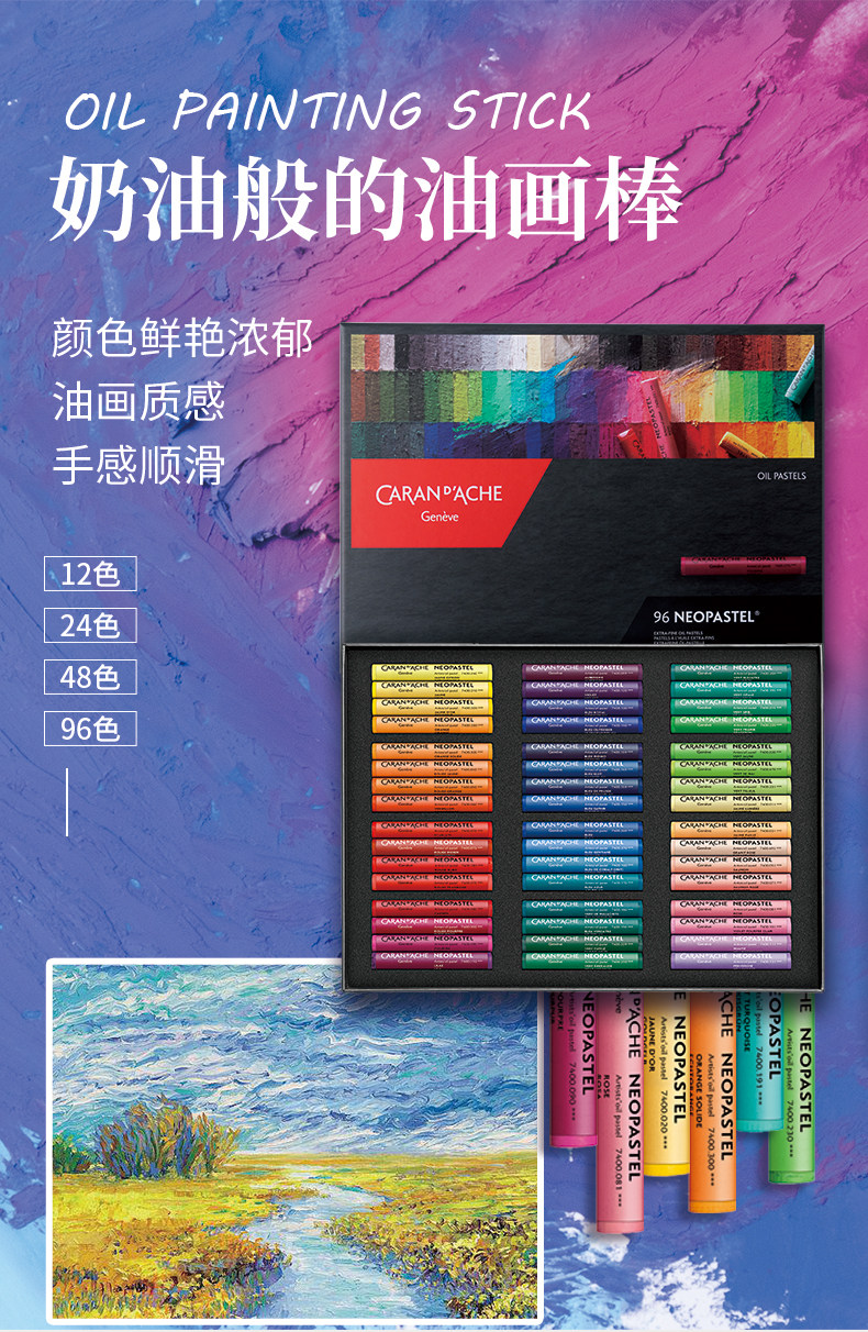Caran D'Ache Swiss Imported Professional-Grade Oil-Based Soft Pastel Sticks Oil Pastels Artist Neopastel Crayons 12 Colors 48 Colors Children's Art Student Special Set
