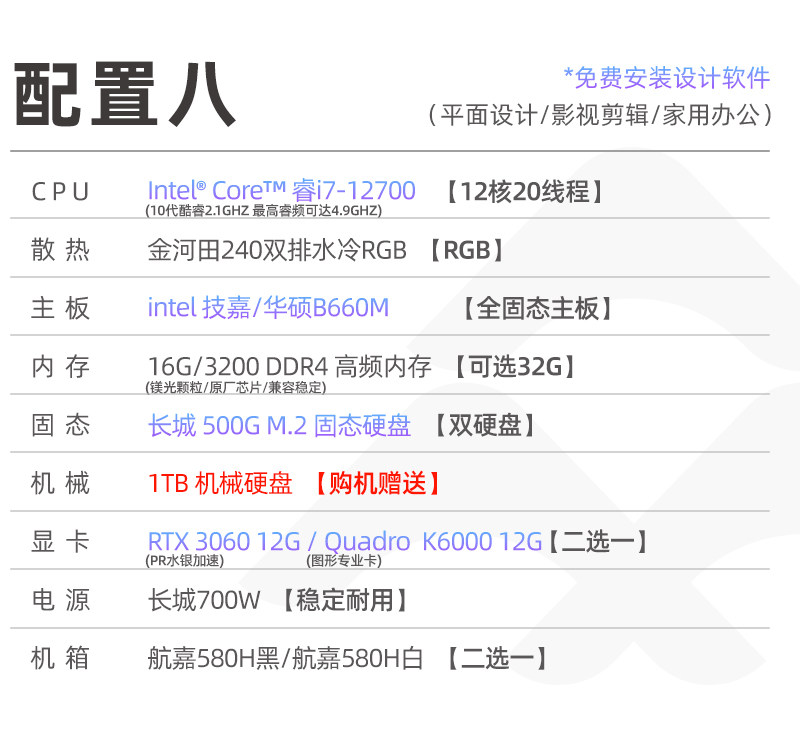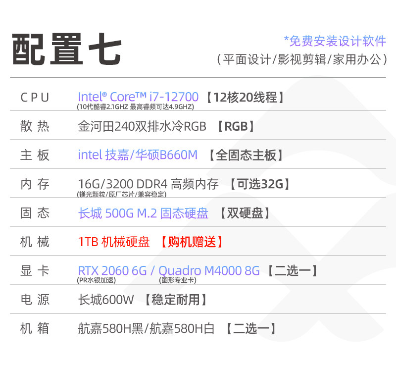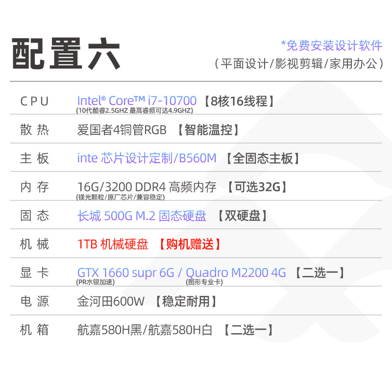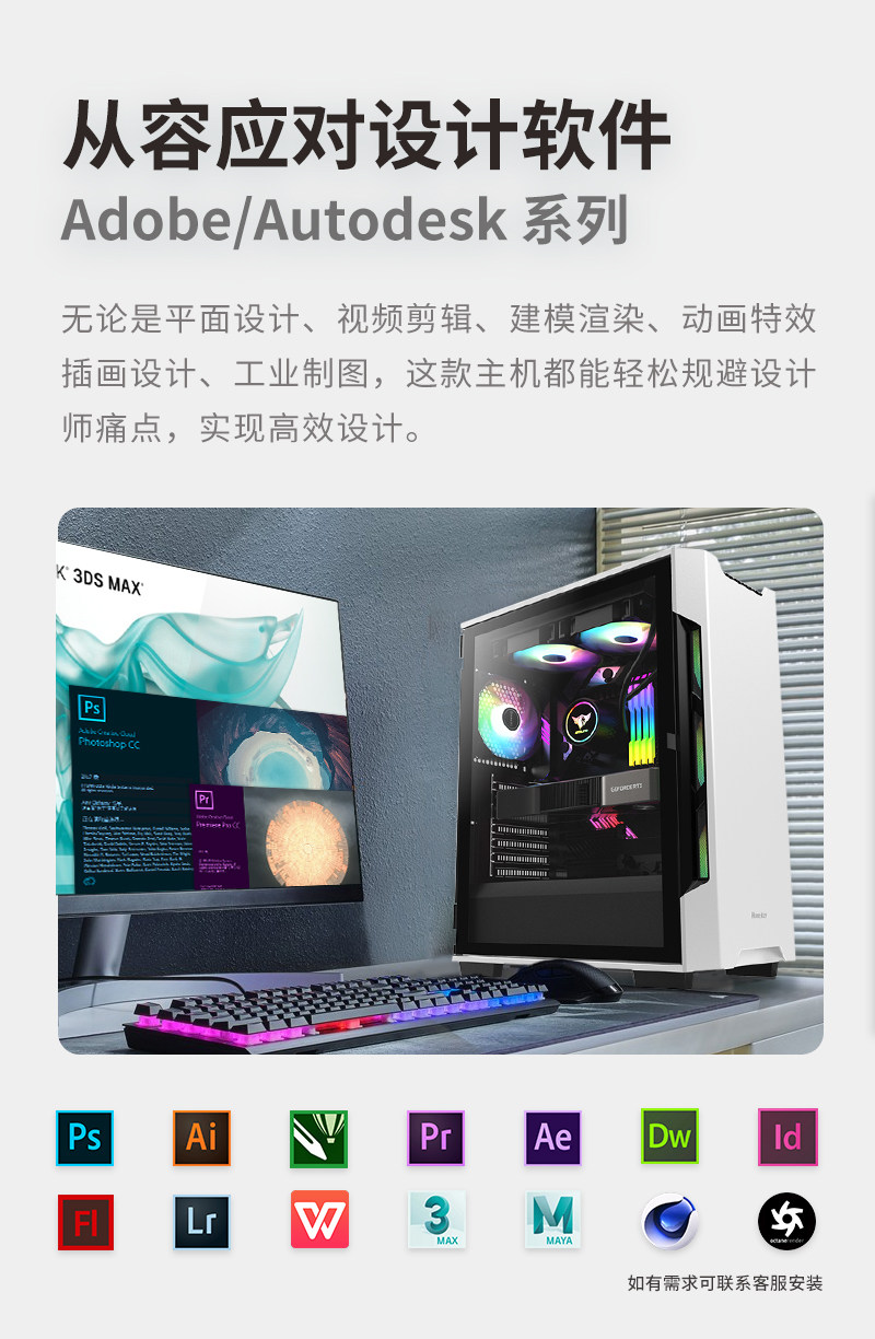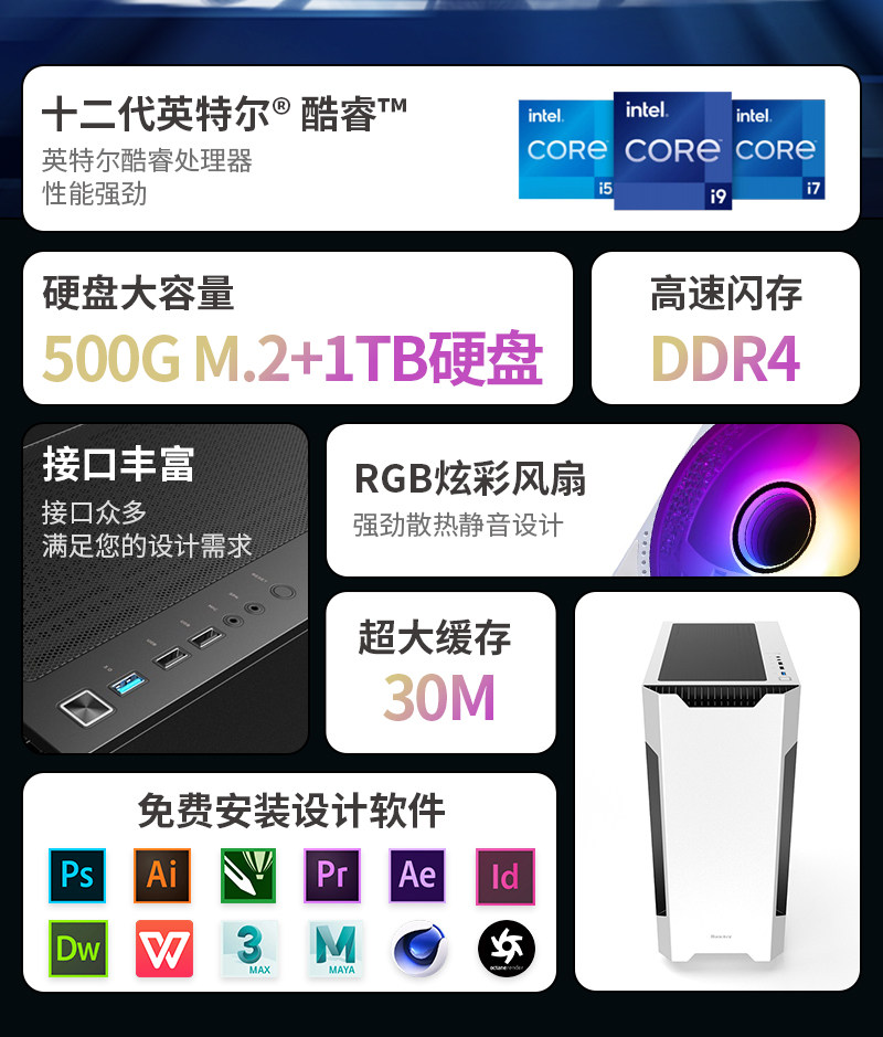 Designer's Dedicated Computer Host I7 Video Editing Graphics Workstation Drawing 3D Rendering Water-Cooled Desktop Office