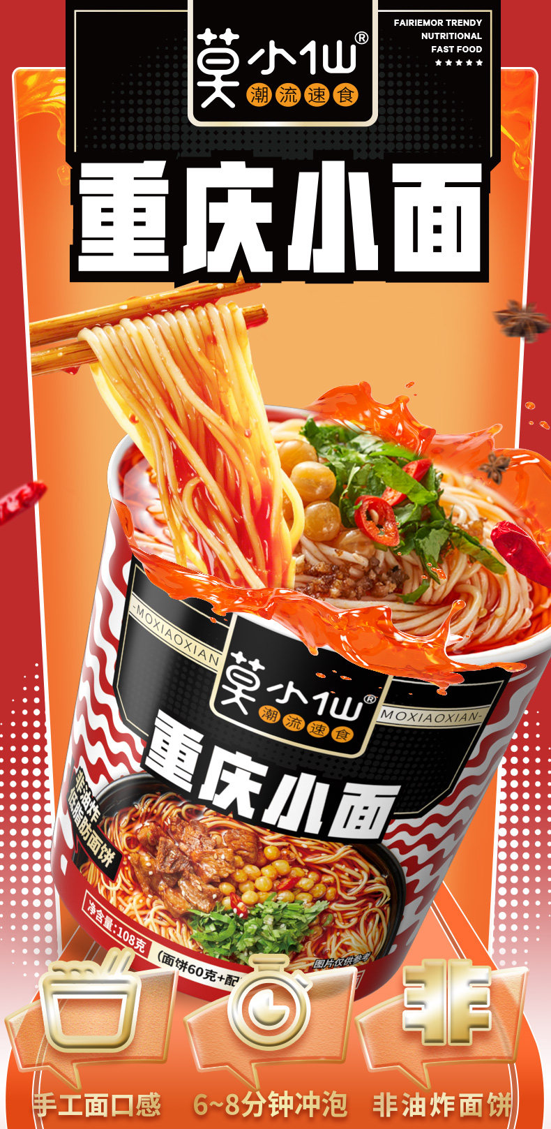 Mo Xiaoxian Instant Noodles Chongqing Noodles Bucket Pack Non-Fried Internet-Famous Wholesale Lazy Instant Food Convenient Noodles Whole Box