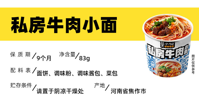 | Taste | Private Recipe Beef Noodle * 8,Hot and Sour Noodles 98g*8,[8 Barrels in a Box] Chongqing Noodles*8,[8 Barrels, 2 Flavors] Chongqing Noodles*4+Hot and Sour Noodles*4,[8 Barrels, 2 Flavors] Chongqing Noodles*4+Private Beef Noodles*4,[8 Barrels, 4 Flavors] Chongqing Noodles*2+Private Beef Noodles*2+Lanzhou Ramen*2+Hot and Sour Noodles*2,[12 Barrels in a Box] Hot and Sour Noodles 98g*12,[12 Barrels in a Box] Chongqing Noodles*12,[12 Barrels Per Box] Private Beef Noodles*12,[12 Barrels, 4 Flavors] Chongqing Noodles*3+Private Beef Noodles*3+Lanzhou Noodles*3+Hot and Sour Noodles*3,[18 Barrels of Stocking up] Chongqing Noodles*9+Private Beef Noodles*9,[18 Barrels of Stocking] Chongqing Noodles*6+Lanzhou Ramen*6+Private Beef Noodles*6 |