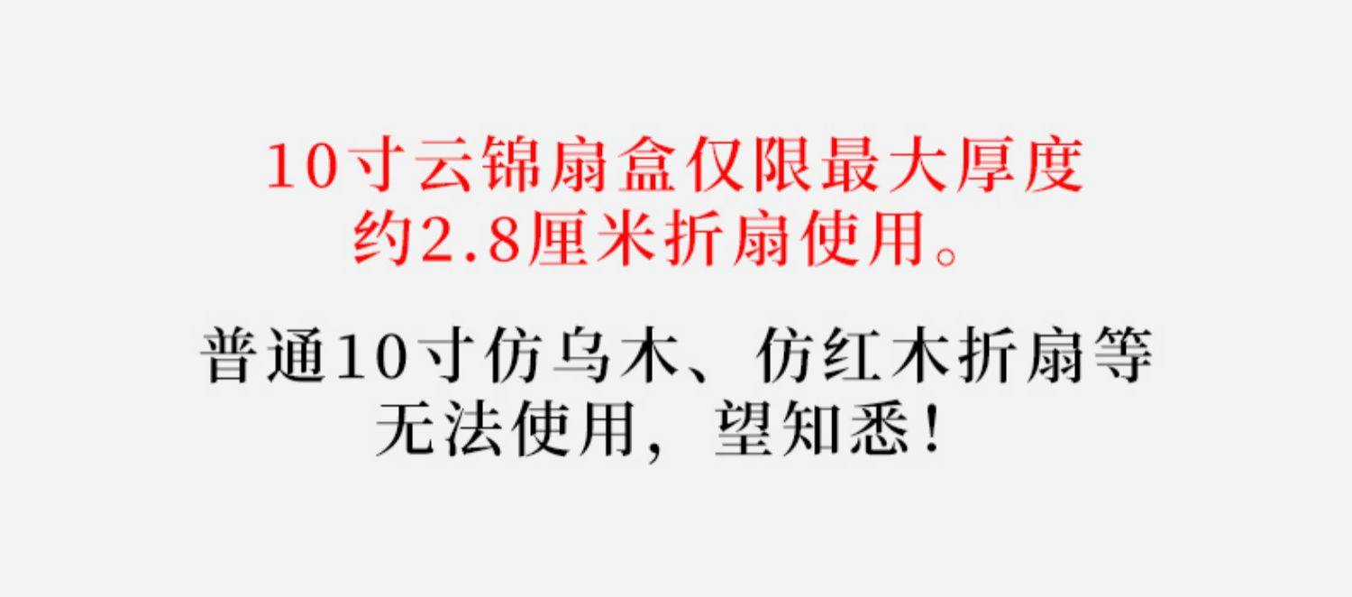 | Color Classification | Note: the 10inch Fan Box Is Only Suitable for Wenwan Folding Fans,Not Suitable for Ordinary Flat Fans,Peacock Yunjin - Suitable for 7/8 Inch Folding Fans (Flannel Lining),Peacock Cloud Brocade - 9/9.Suitable for 5-Inch Folding Fans (Flannel Lining),Peacock Yunjin - Suitable for 10-Inch Folding Fans (Flannel Lining),Gray Linen Brocade - 9/9.Suitable for 5-Inch Folding Fans (Flannel Lining),10inch Camphor Wood-Blue Background Sea Wave Cloud Brocade (Simple Style),9/9.5inch Yellow Wave Cloud Brocade Bamboo Fan Box (Yellow Velvet Lining) |
