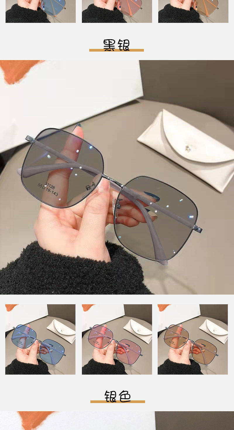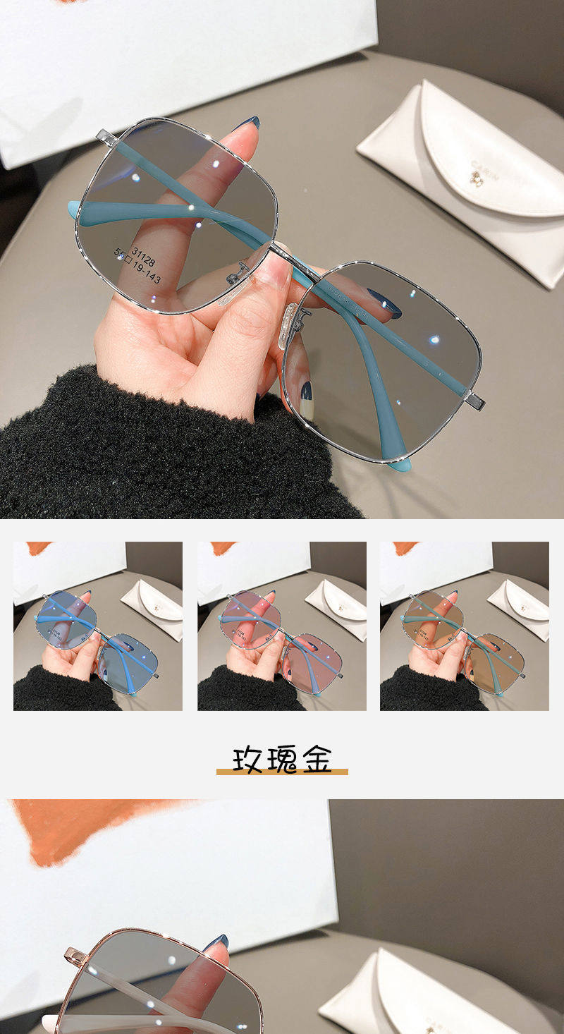 Instagram-Worthy Color-Changing Glasses for Women with Prescription, Ultra-Light, Large Square Frame, Korean Style, Anti-Blue Light Radiation, Eye Protection, Non-Prescription Glasses