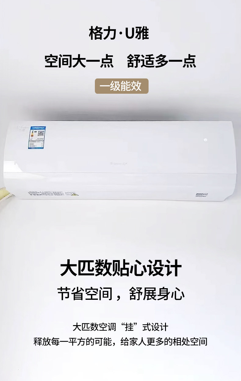 Gree Air Conditioner U Ya Large 2 Hp 3 Hp First-Class Energy Efficiency Inverter Cooling and Heating Wall-Mounted Energy-Saving Smart Wifi Large Unit