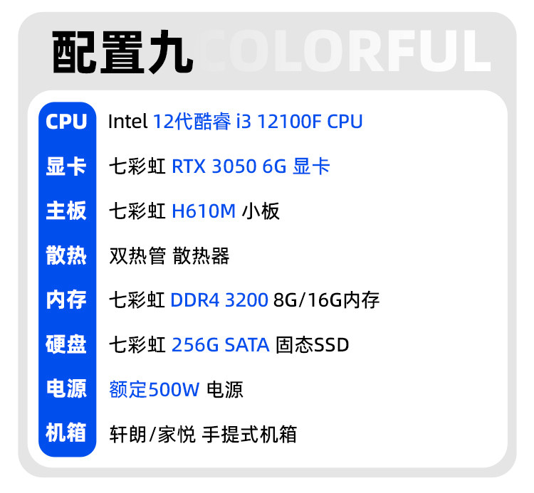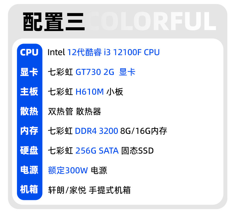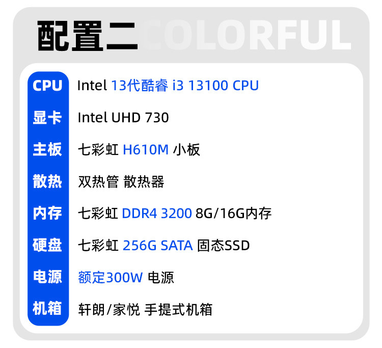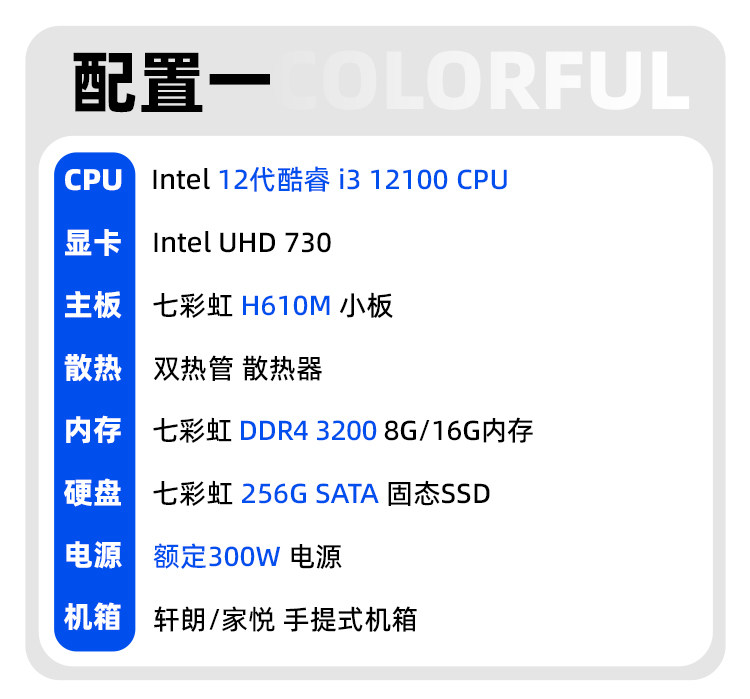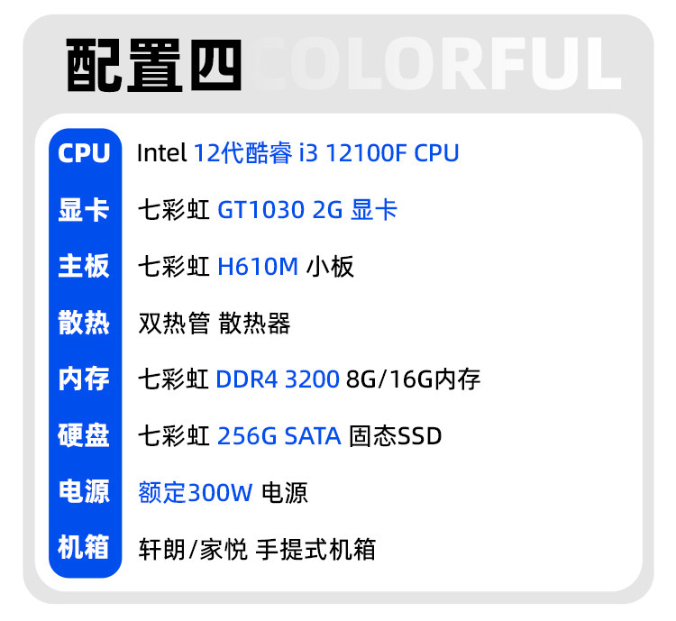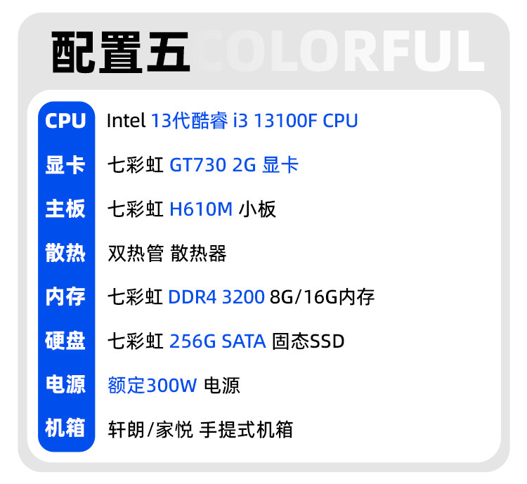 Colorful Computer Case I3 12100/13100 12400/H610M Enterprise Purchase Home Business Office DIY Assembly Computer Desktop All-In-One Hardware