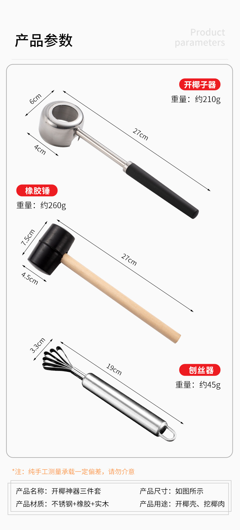| Classification | Powerful Coconut Opener,Powerful Coconut Opener + Hammer,Powerful Coconut Opener + Hammer + Coconut Meat Planer |
