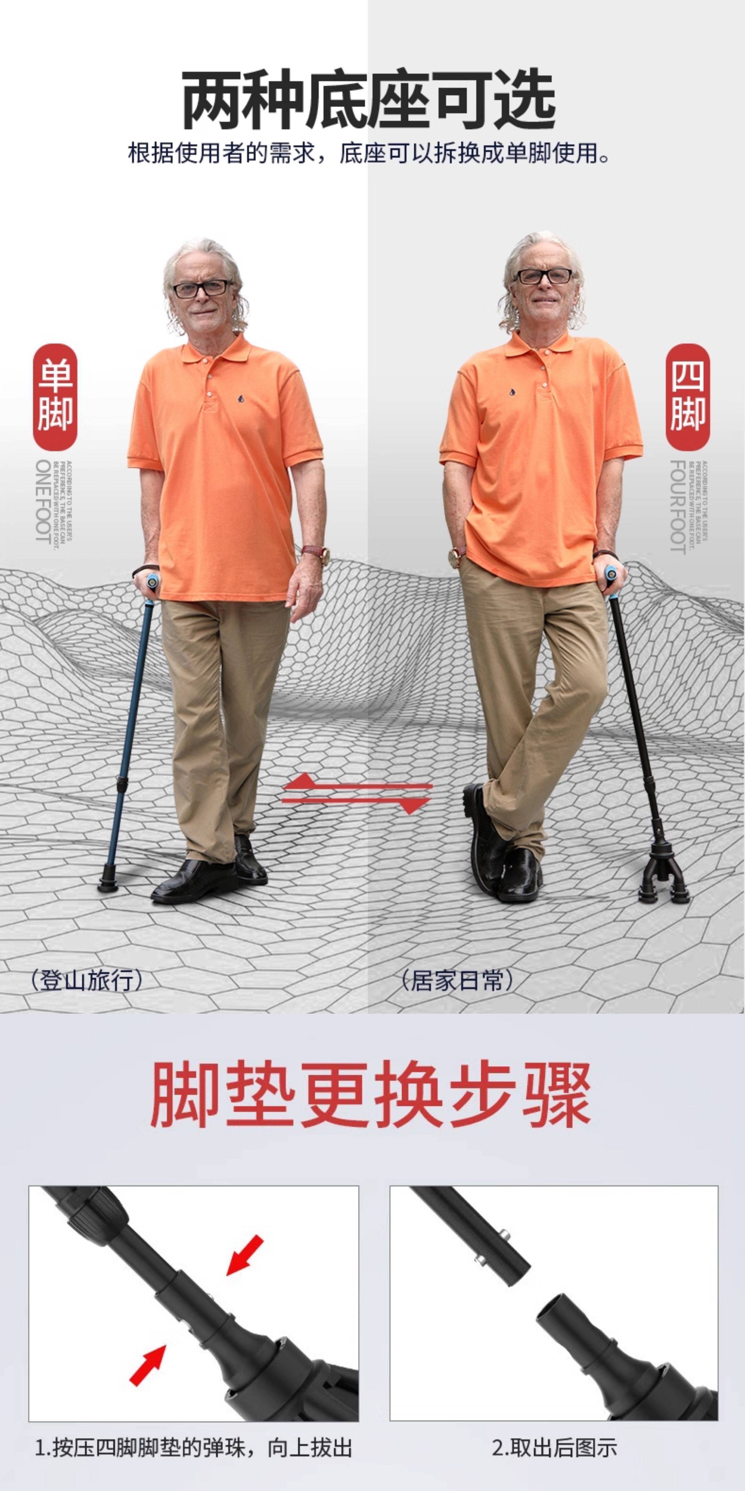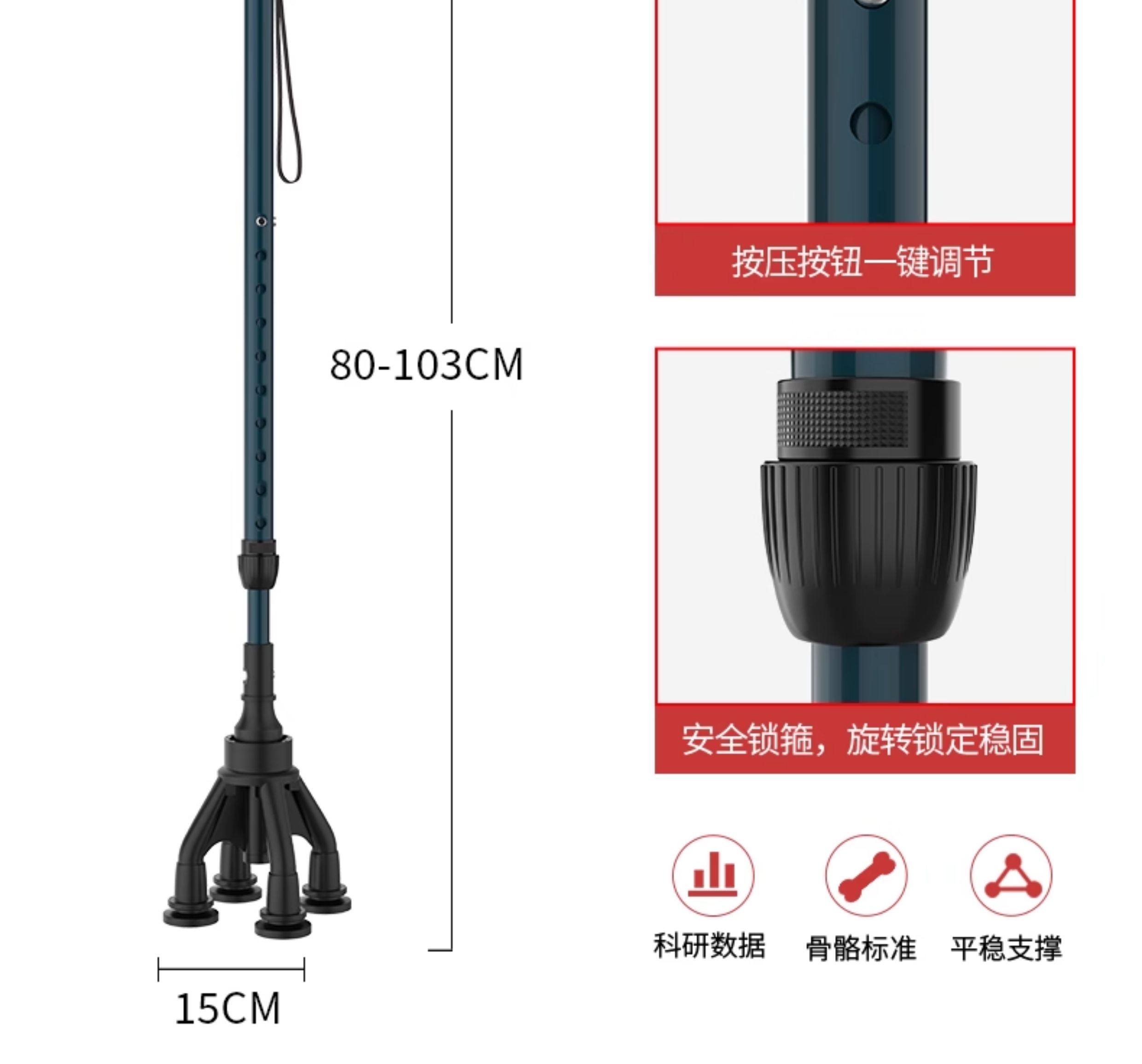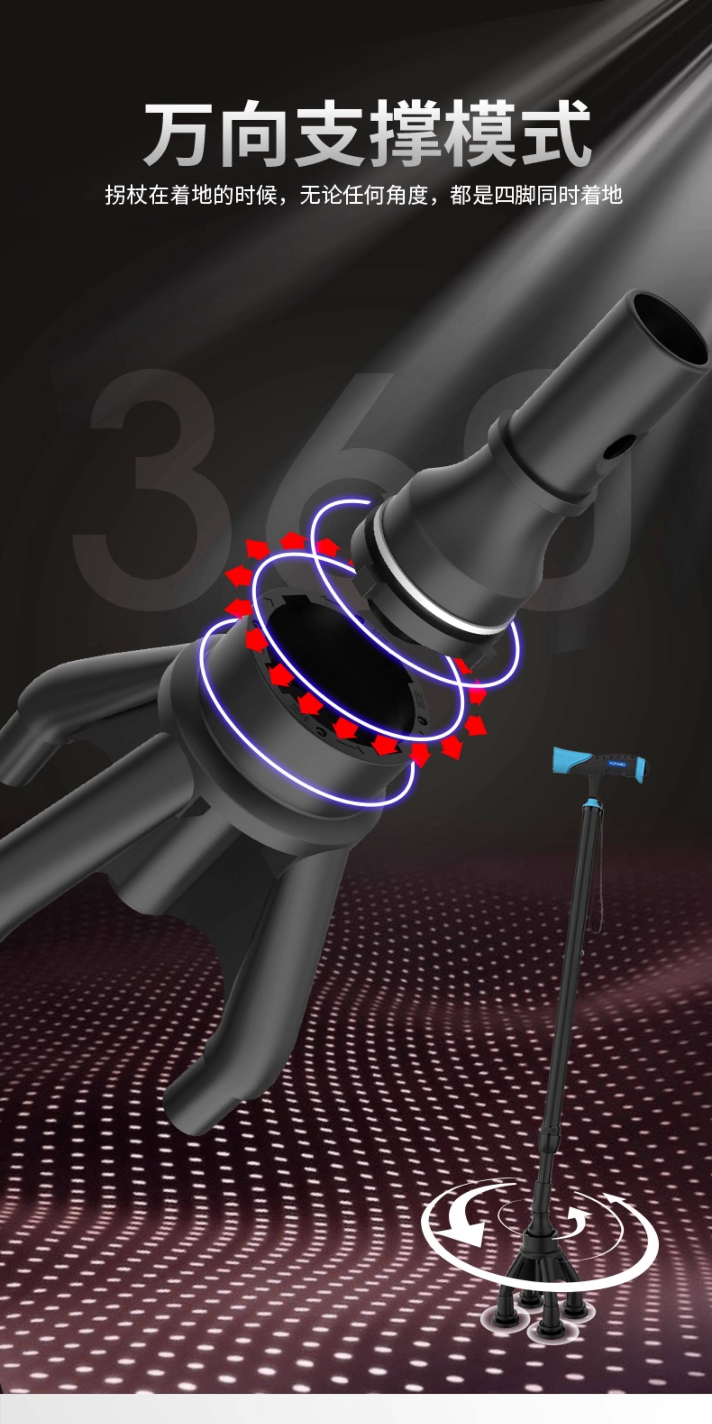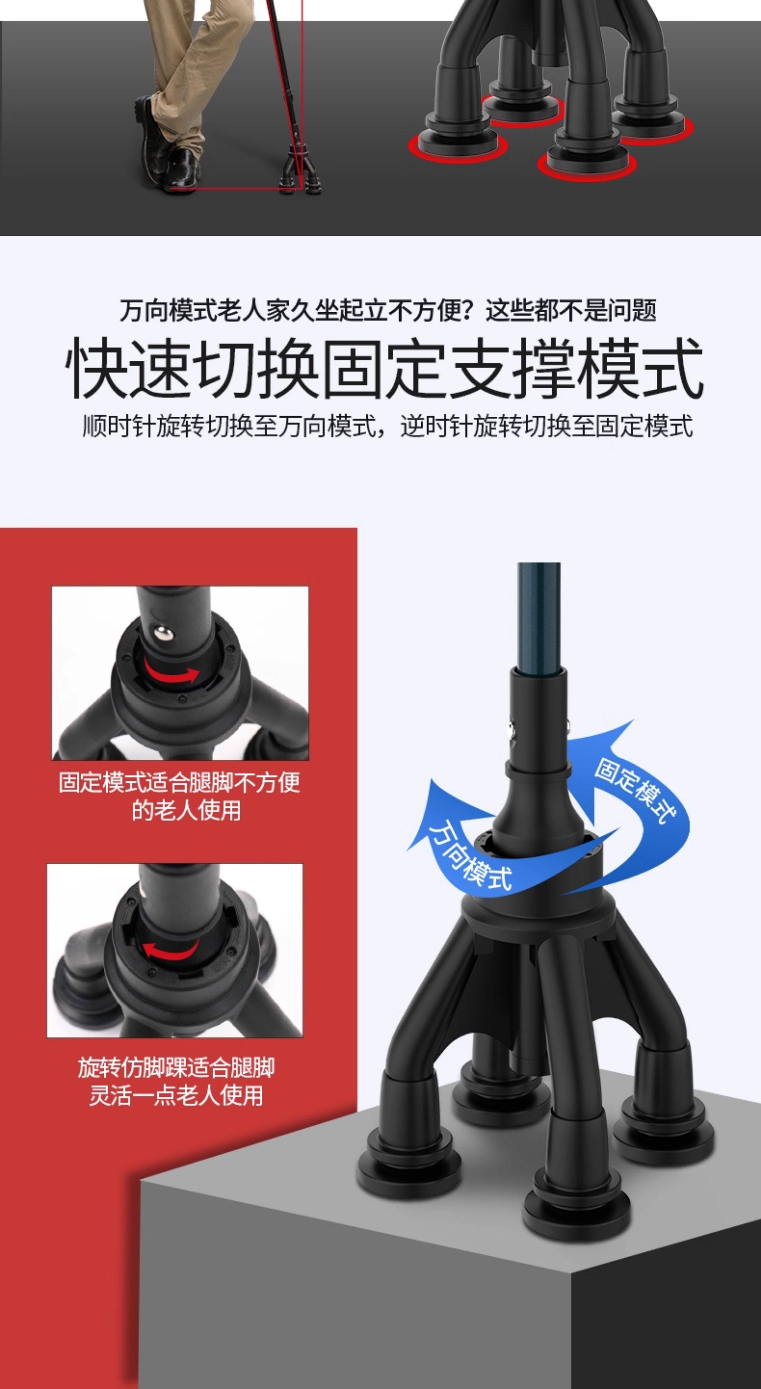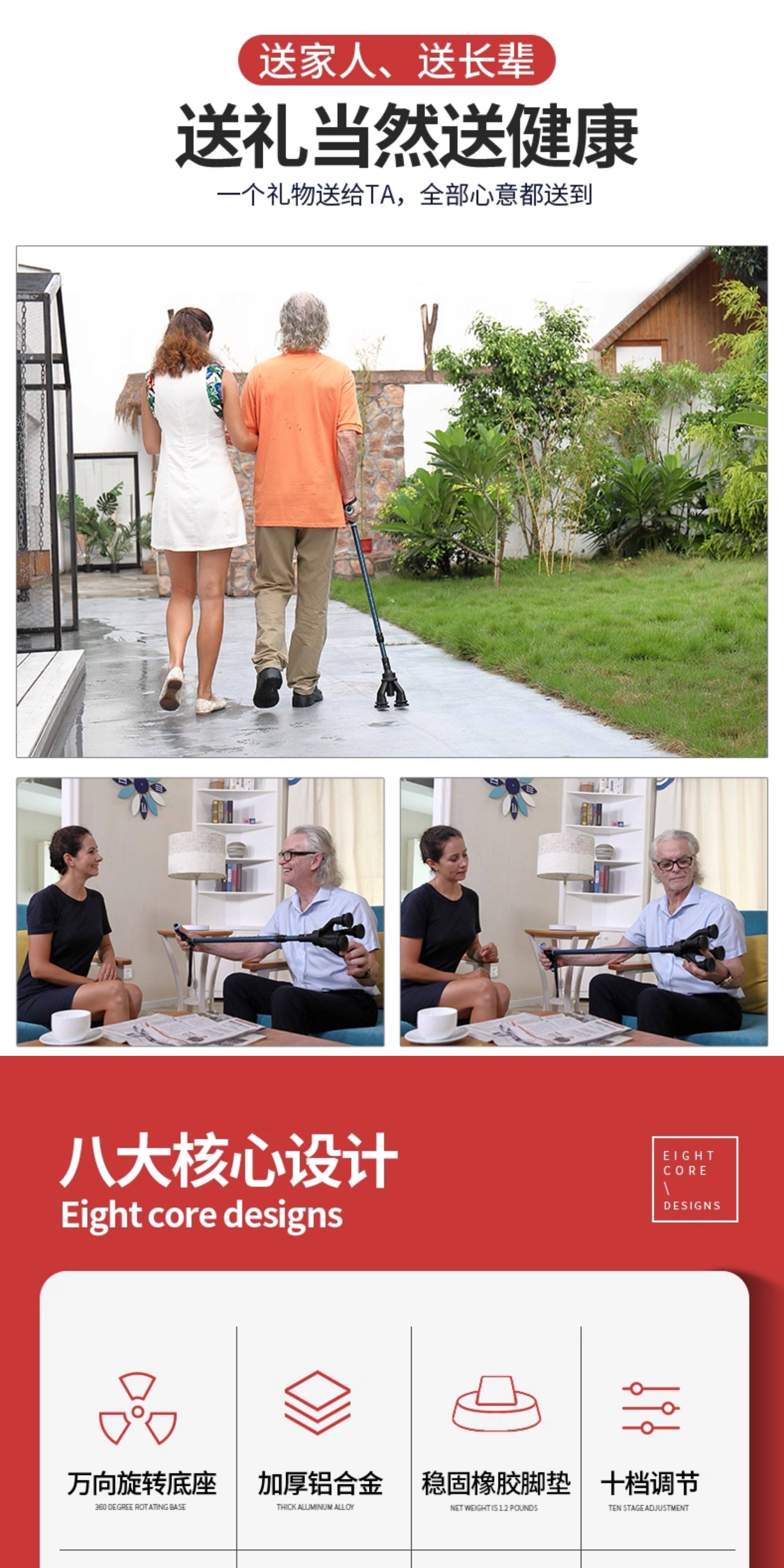 Carbon Fiber Elderly Walking Stick, Non-Slip Four-Legged Multifunctional Telescopic Folding Four-Corner Walking Stick for the Elderly, Walking Aid