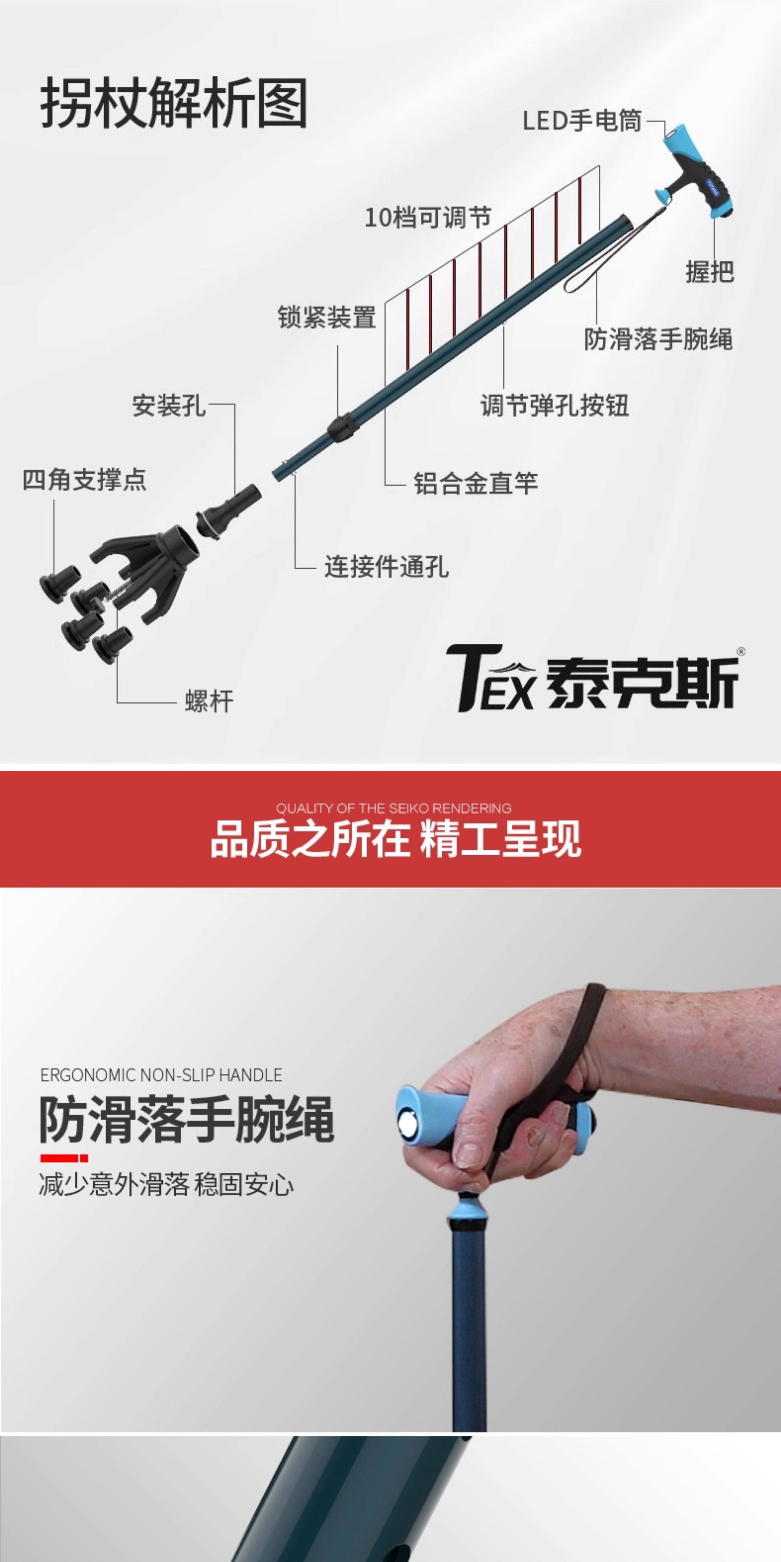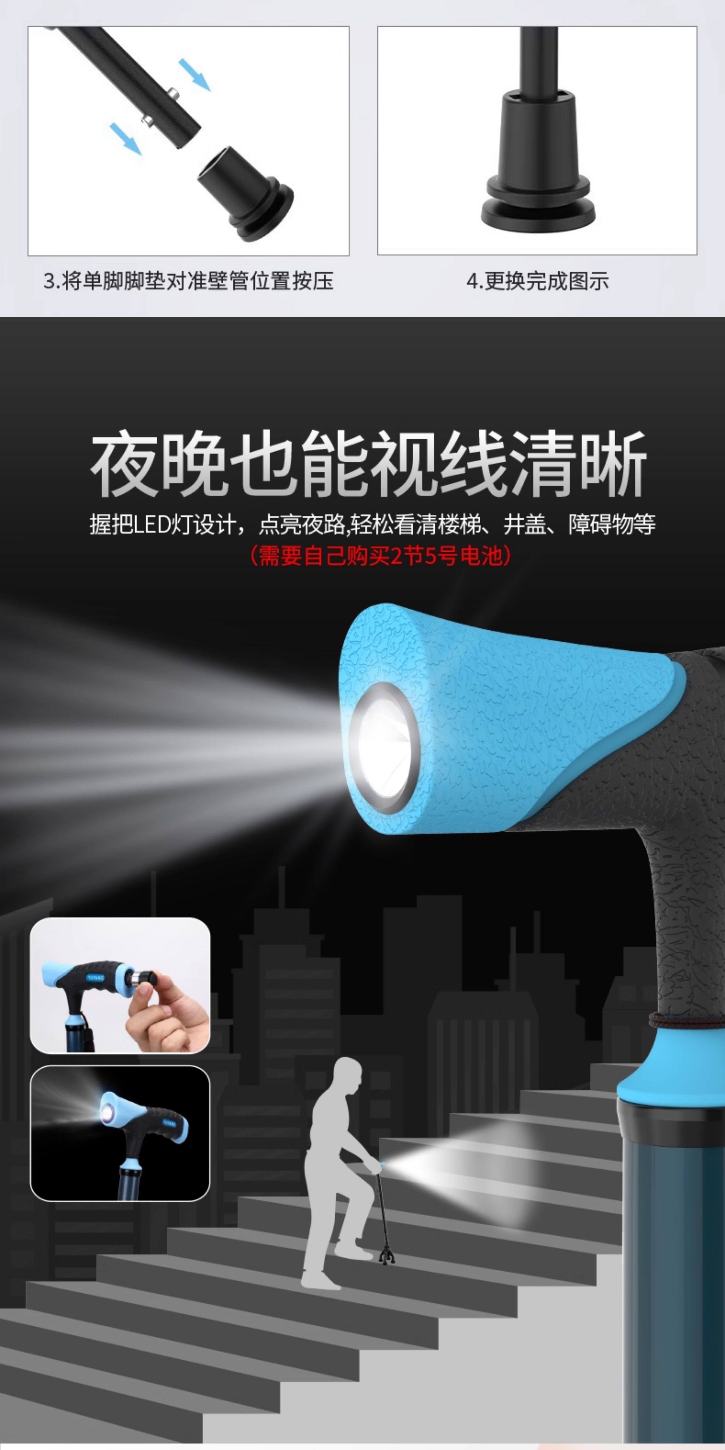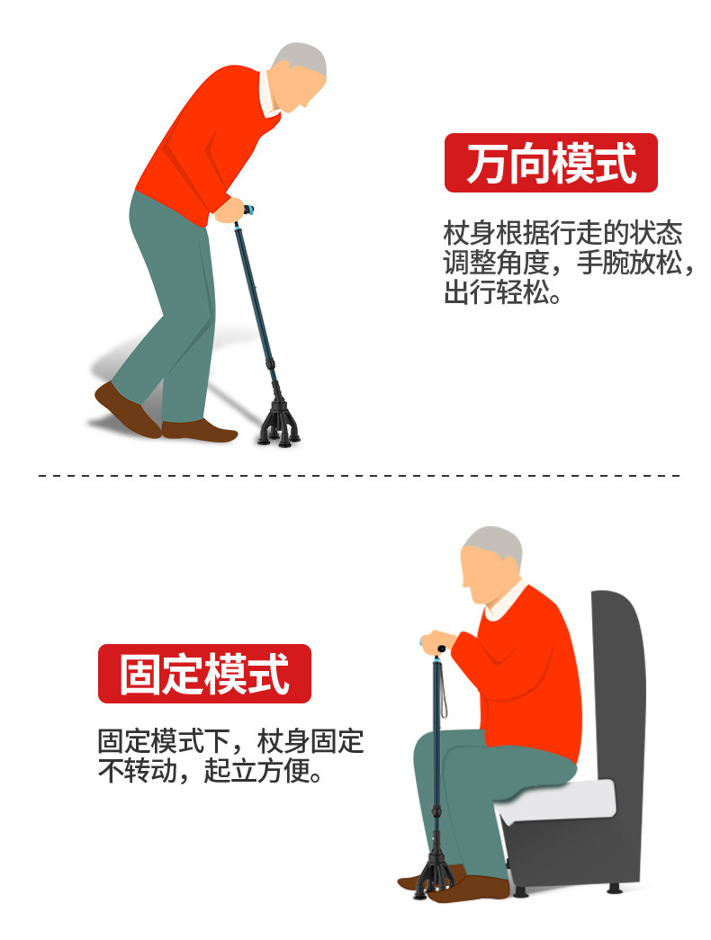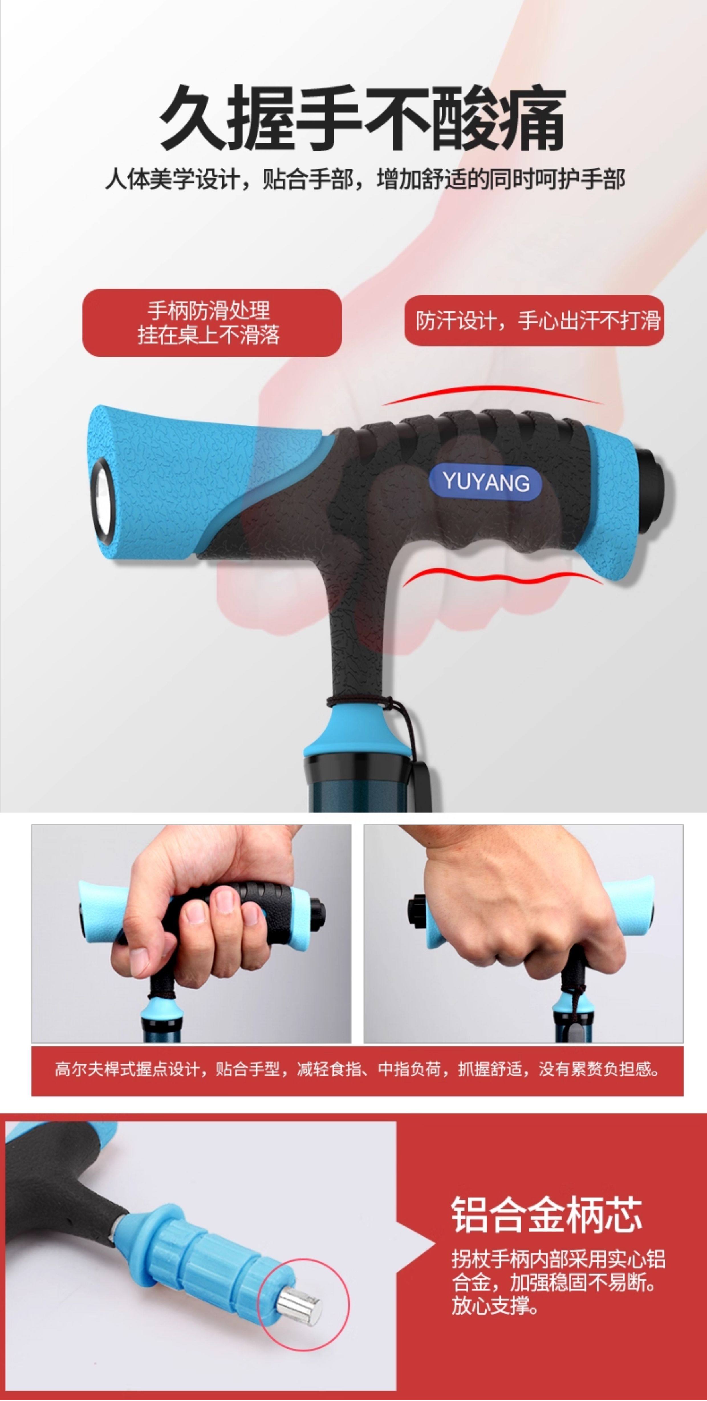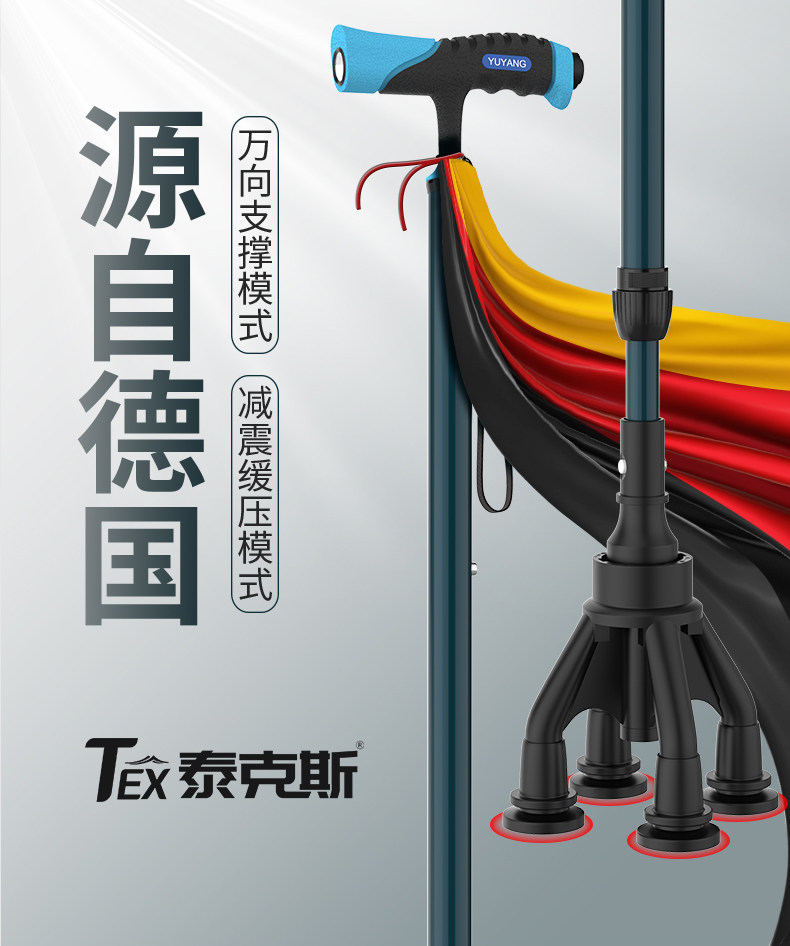 Carbon Fiber Elderly Walking Stick, Non-Slip Four-Legged Multifunctional Telescopic Folding Four-Corner Walking Stick for the Elderly, Walking Aid