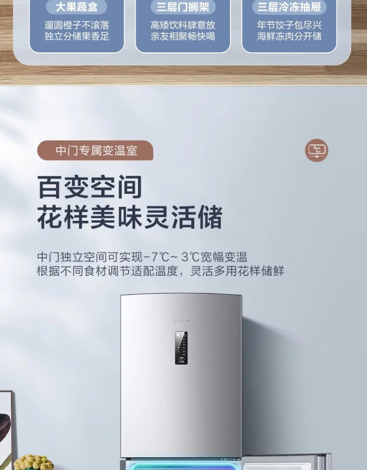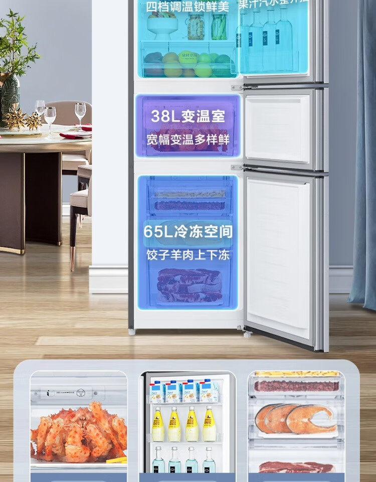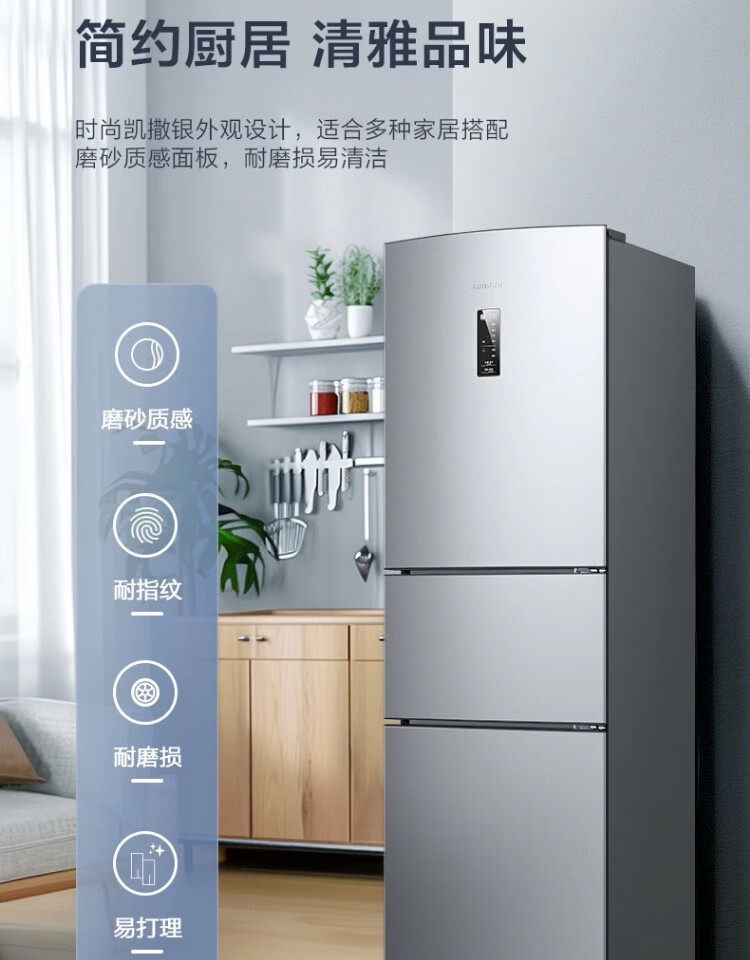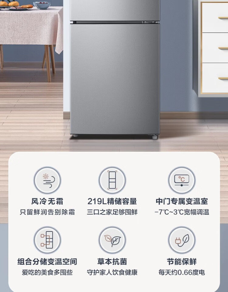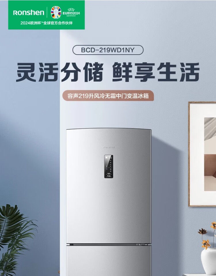 Rongsheng Three-Door Refrigerator, Frost-Free, Antibacterial, Middle Door Temperature Adjustment, Computer-Controlled Temperature, Bcd-219Wd1Ny