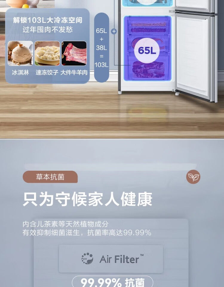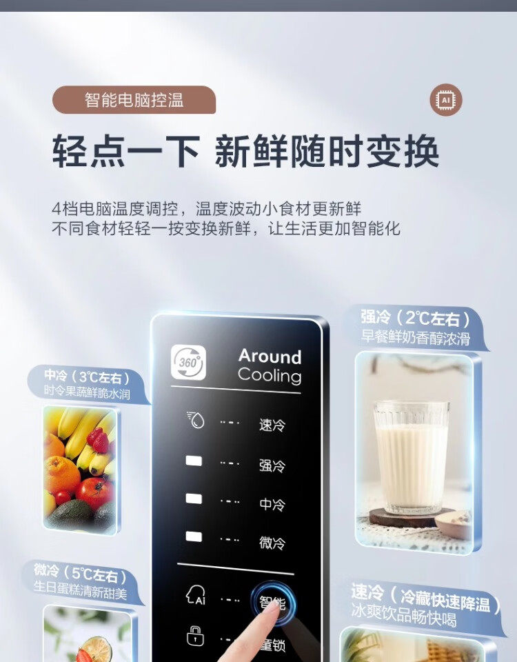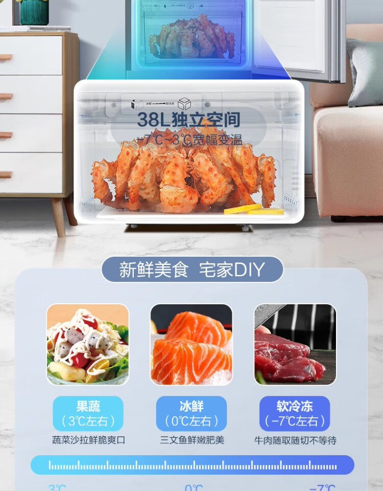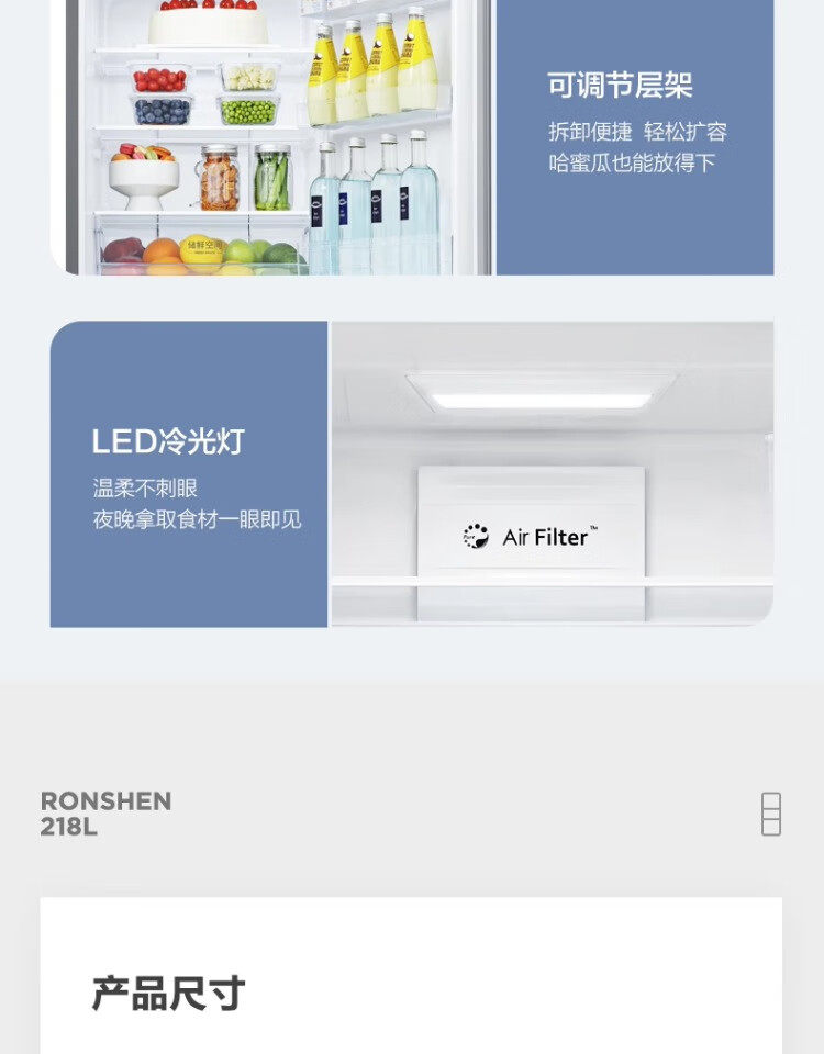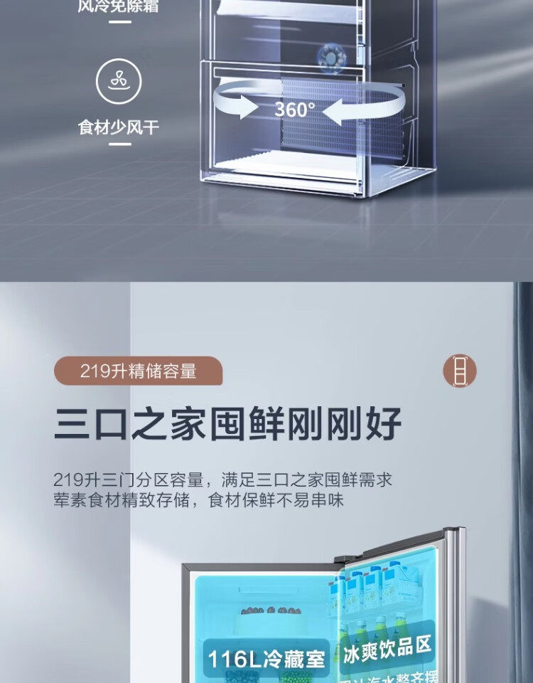 Rongsheng Three-Door Refrigerator, Frost-Free, Antibacterial, Middle Door Temperature Adjustment, Computer-Controlled Temperature, Bcd-219Wd1Ny