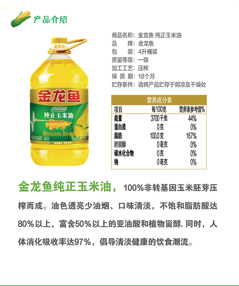 Arowana Pure Corn Oil 4L*4 Barrels Edible Oil Non-Gmo Boxed