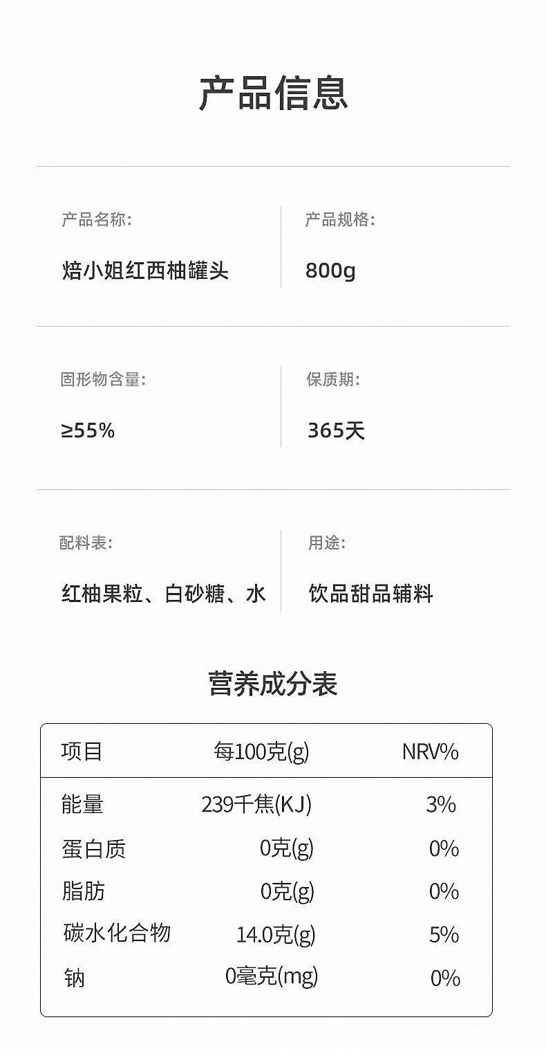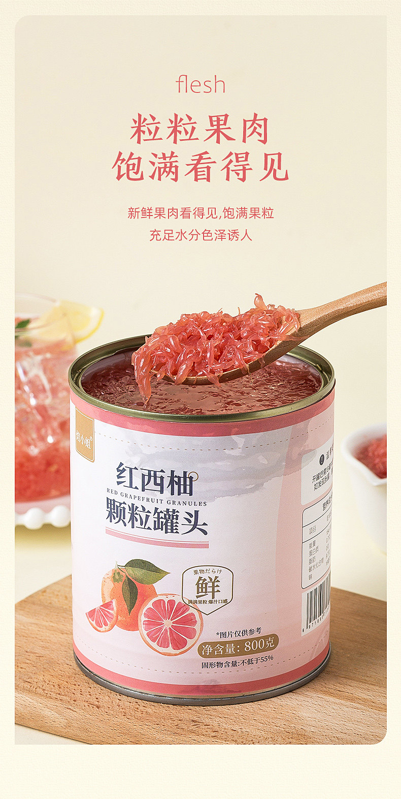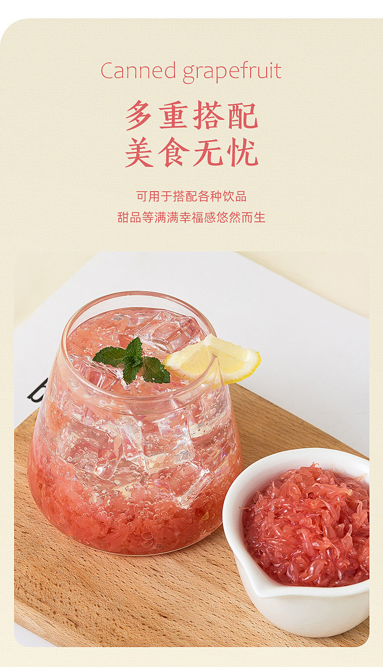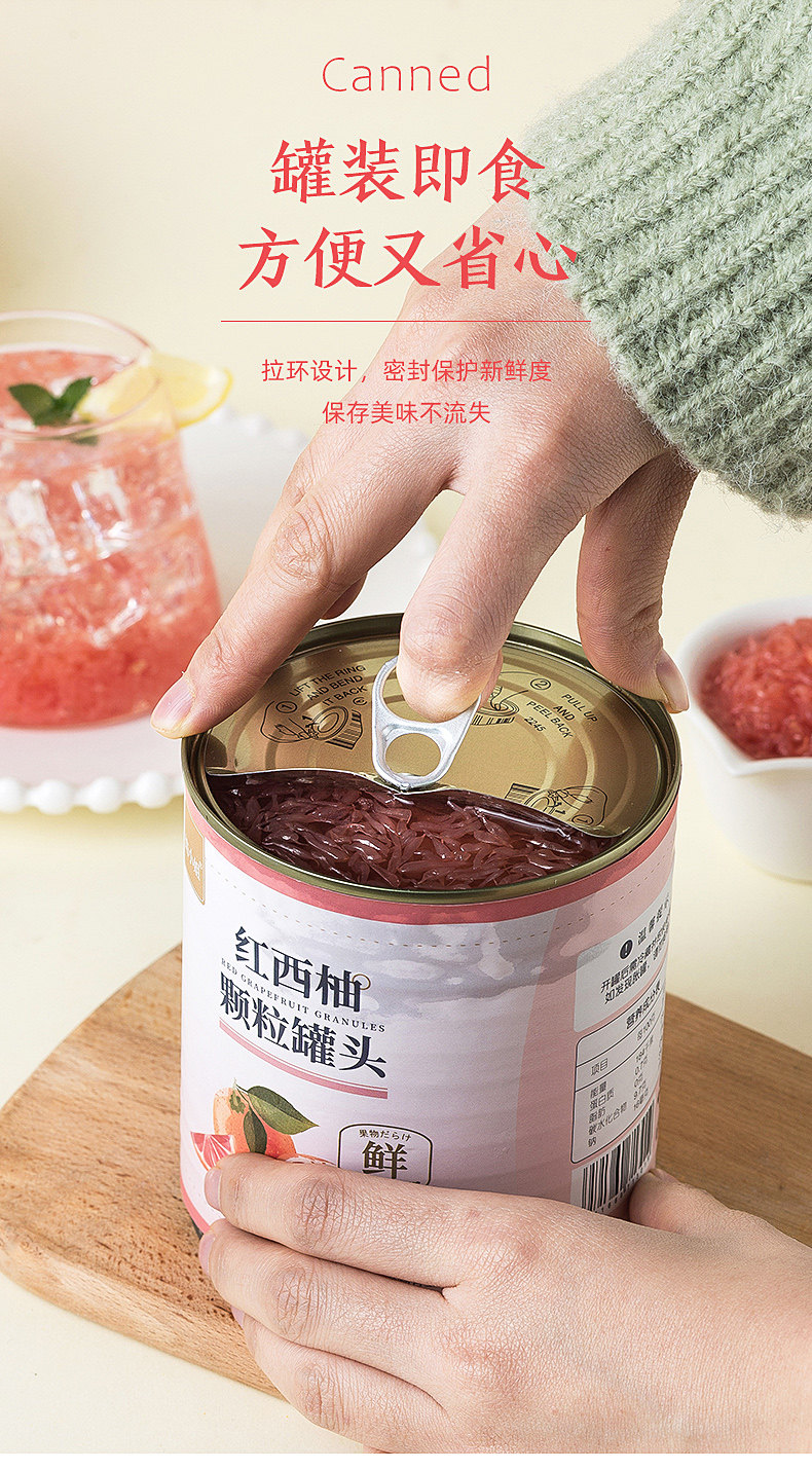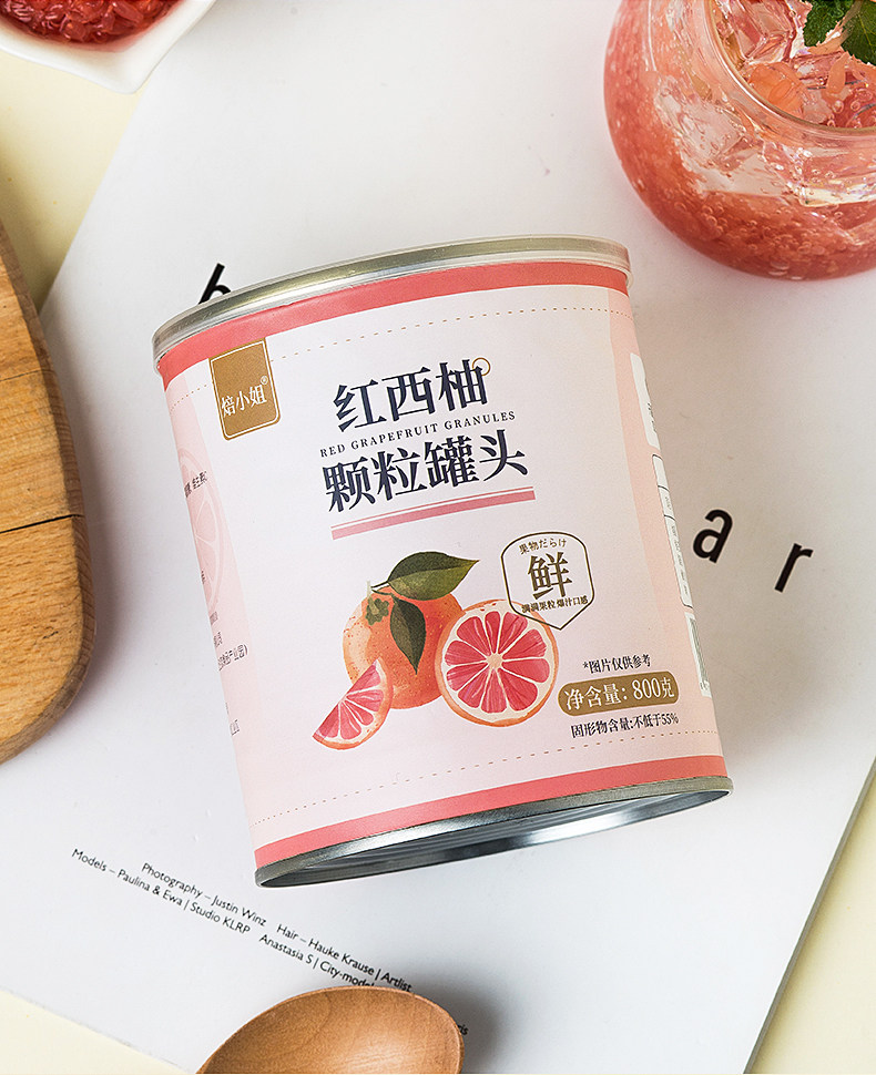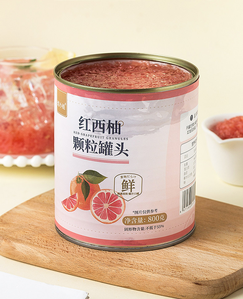 | Taste | Miss Baking Red Grapefruit Pulp Canned 800g,Miss Bao Grape Granules Canned 850g |