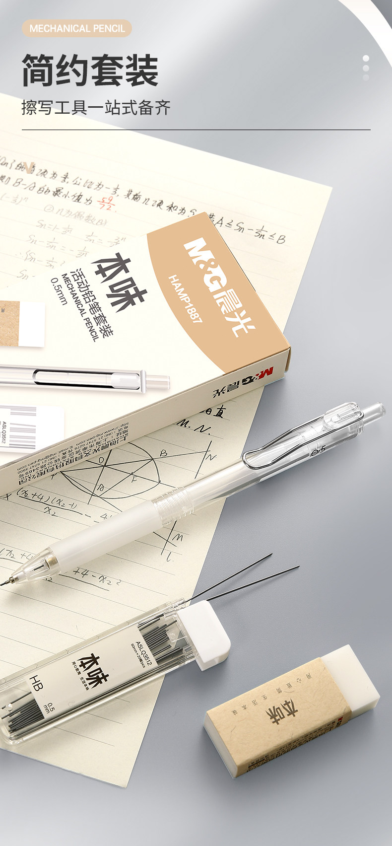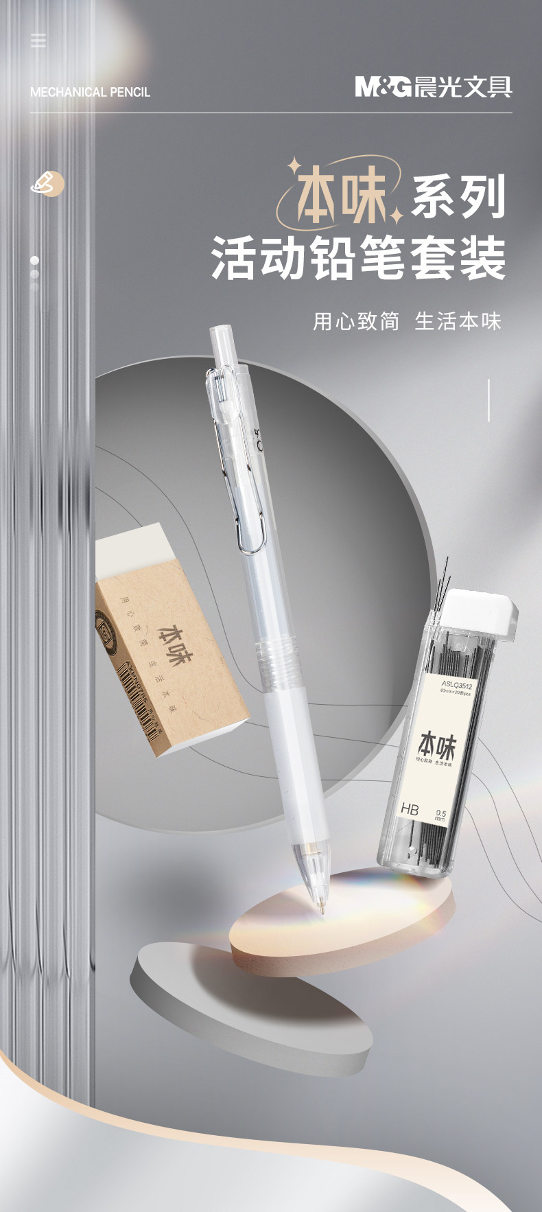 Morning Light Original 0.7 Mechanical Pencil Set, Automatic Pencil with Non-Breaking Lead, for Children and Elementary School Students in Grades 1-3, Hb Pencil 0.5 for Exams, Sketching, Mechanical Pencil ins Simple Style Stationery Supplies