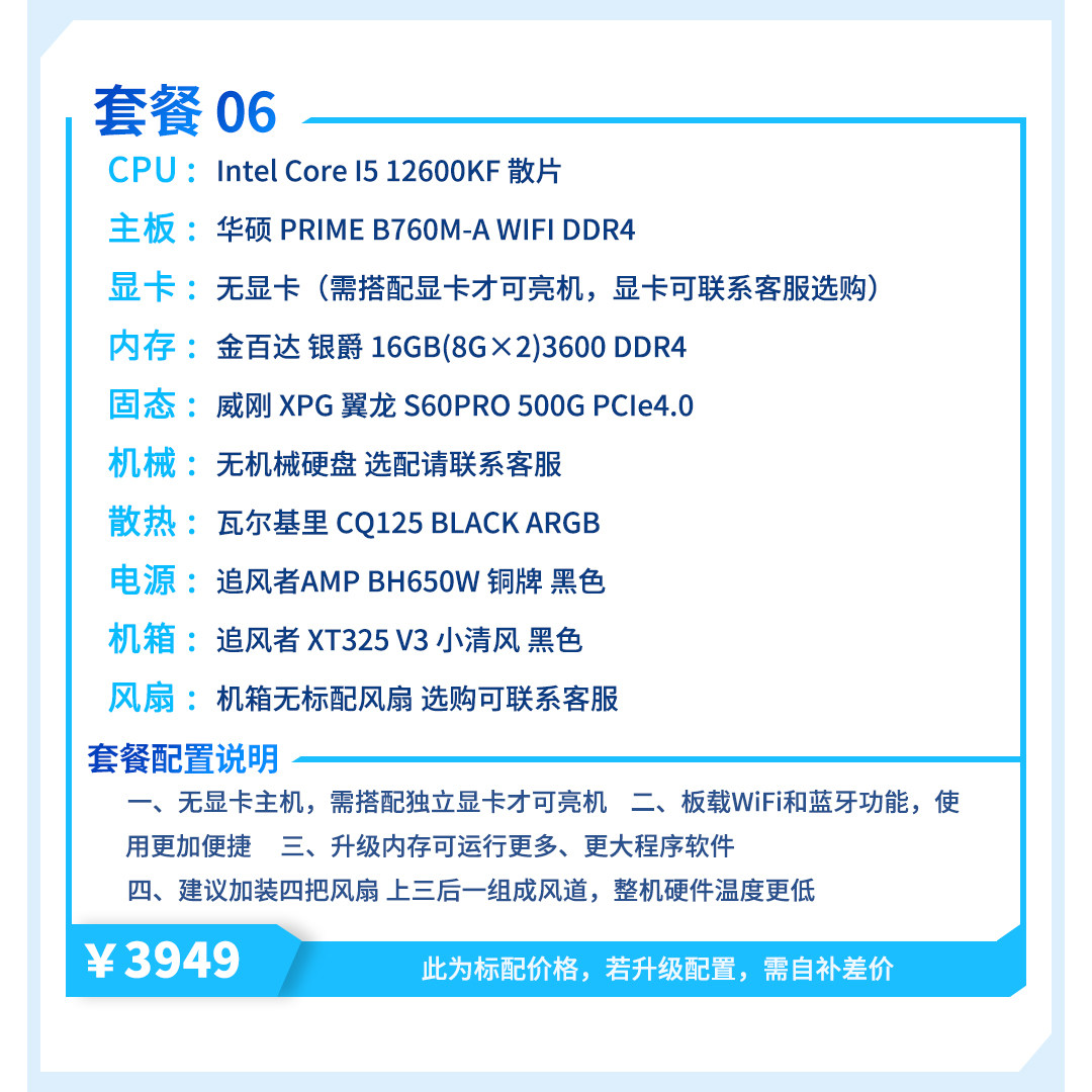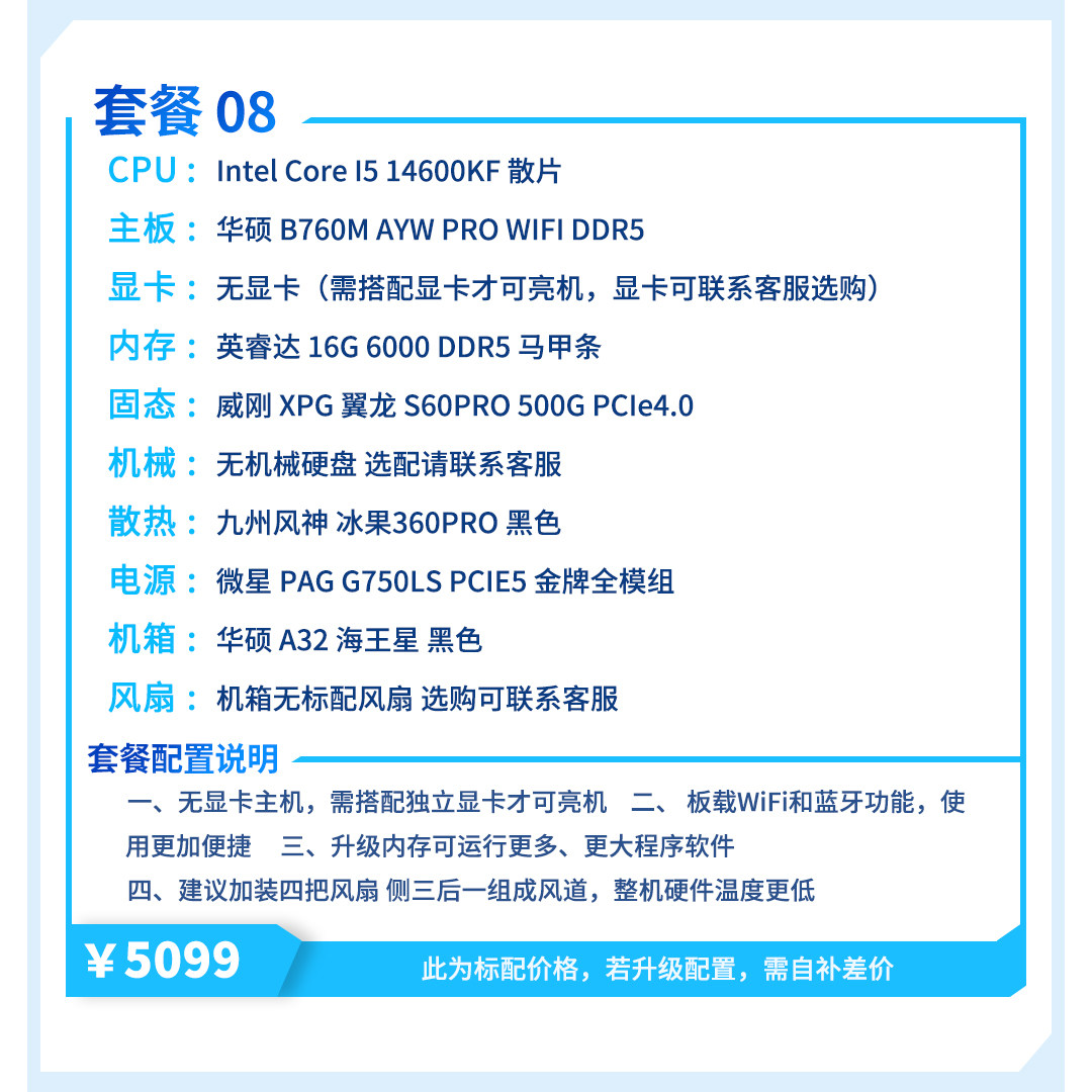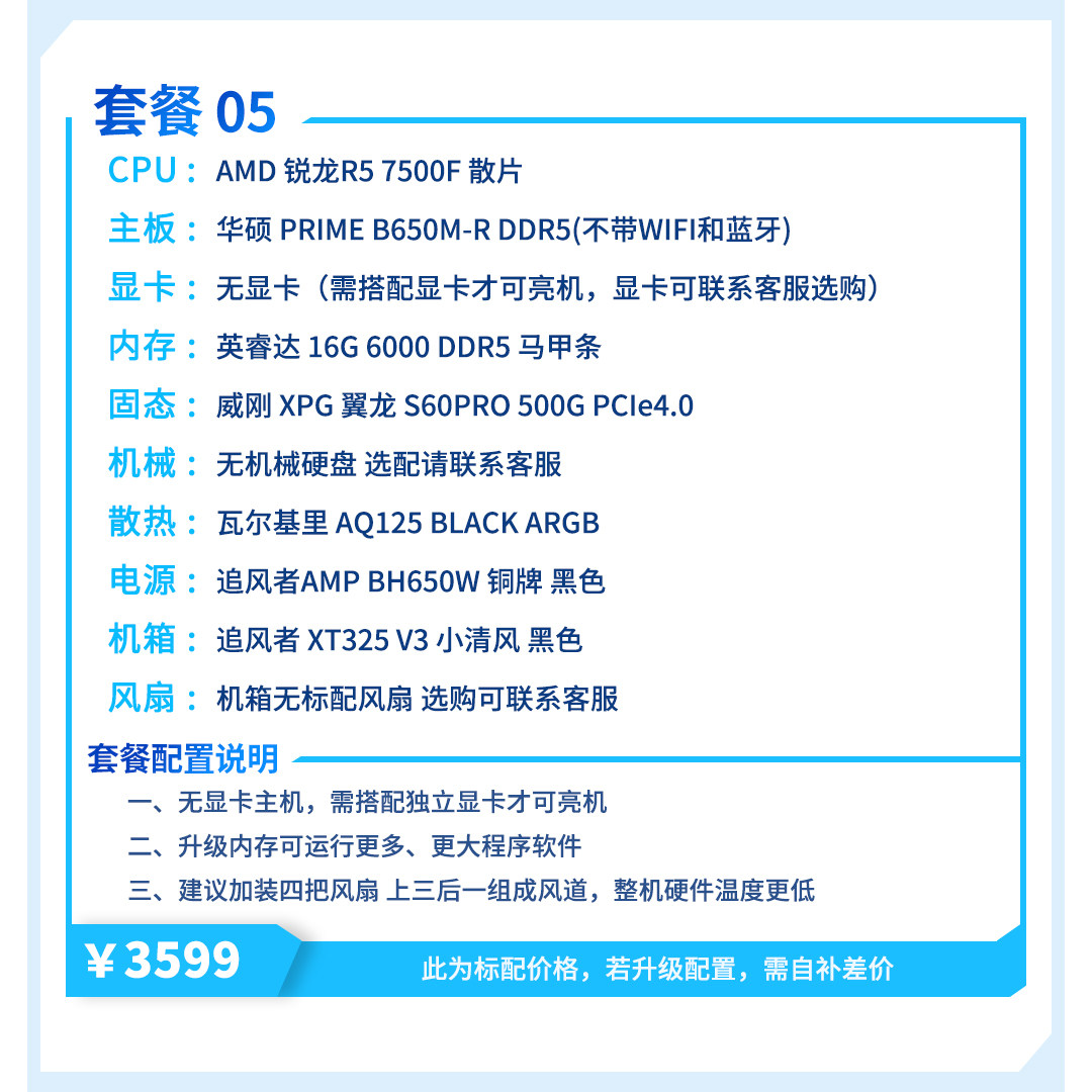 | Package Type | Package 1 (I3 12100F + Host Without Graphics Card),Package 2 (R5 5600+ Host Without Graphics Card),Package Three (I5 12400F + Host Without Graphics Card),Package 4 (R7 5700X + Host Without Graphics Card),Package 5 (R5 7500F + Host Without Graphics Card),Package Six (I5 12600Kf + Host Without Graphics Card),Package 7 (R5 9600X + Host Without Graphics Card),Package 8 (I5 14600Kf + Host Without Graphics Card) |