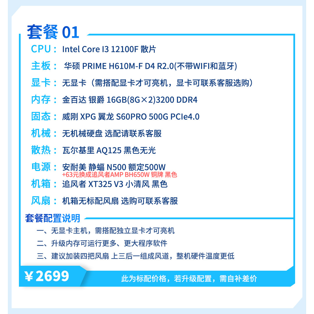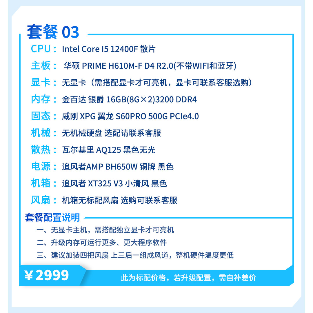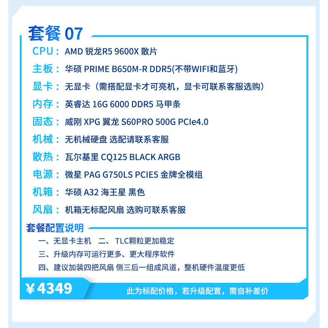 | Package Type | Package 1 (I3 12100F + Host Without Graphics Card),Package 2 (R5 5600+ Host Without Graphics Card),Package Three (I5 12400F + Host Without Graphics Card),Package 4 (R7 5700X + Host Without Graphics Card),Package 5 (R5 7500F + Host Without Graphics Card),Package Six (I5 12600Kf + Host Without Graphics Card),Package 7 (R5 9600X + Host Without Graphics Card),Package 8 (I5 14600Kf + Host Without Graphics Card) |