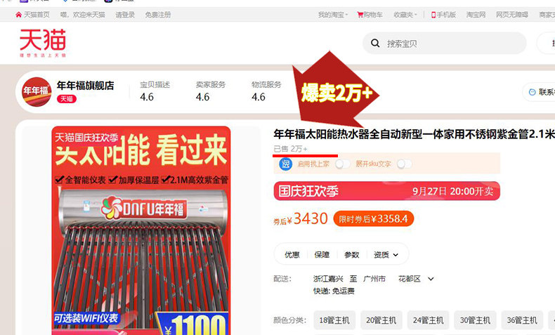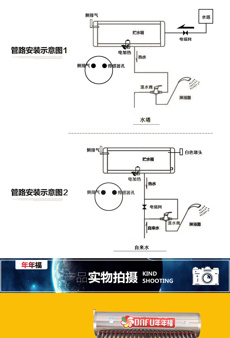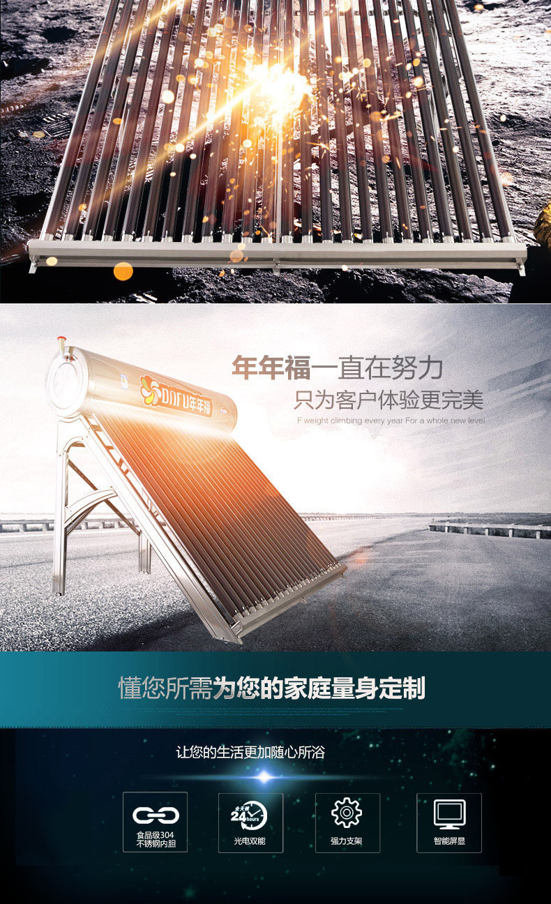 Nian Nian Fu Solar Water Heater, Fully Automatic, New Integrated Model for Home Use, Stainless Steel Purple Gold Tube, 2.1m Large Capacity