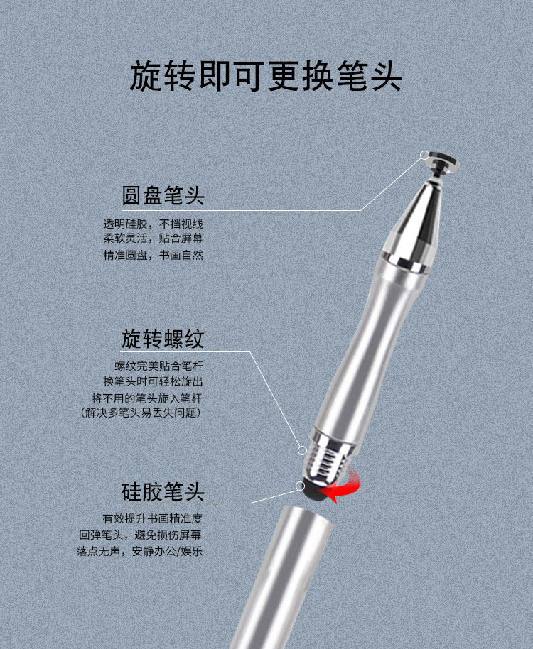 | Color Classification | Silver-[Big Head]Small Waist-Dual Use Model[E],Black-[Big Head]Small Waist-Dual Use Model[E],White-[Big Head]Small Waist-Dual Use Model[E],Capacitive Pen-Anti-Lost Style-Random Color[W],Capacitive Pen-Straight Rod Type[Silver],Capacitive Pen-Straight Rod Type[Black],Small Waist (Silver) Comes with Transparent Head*1+Silicone Head*2,Small Waist (Black) Comes with Transparent Head*1+Silicone Head*2,Small Waist (White) Comes with Transparent Head*1+Silicone Head*2,Sucking Upgrade[Black]Notes/Painting/Games,Sucking Upgrade[White]Notes/Painting/Games |