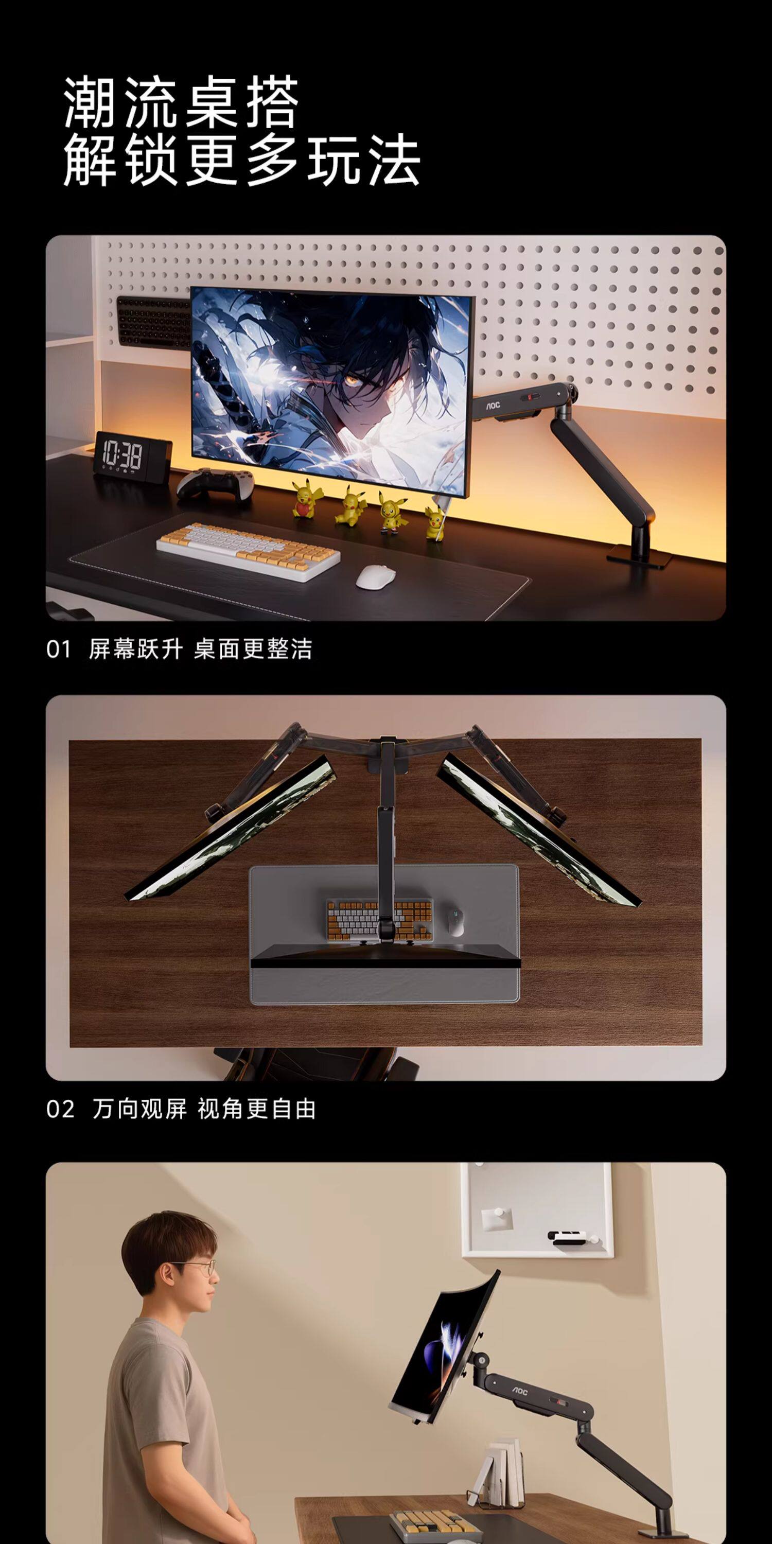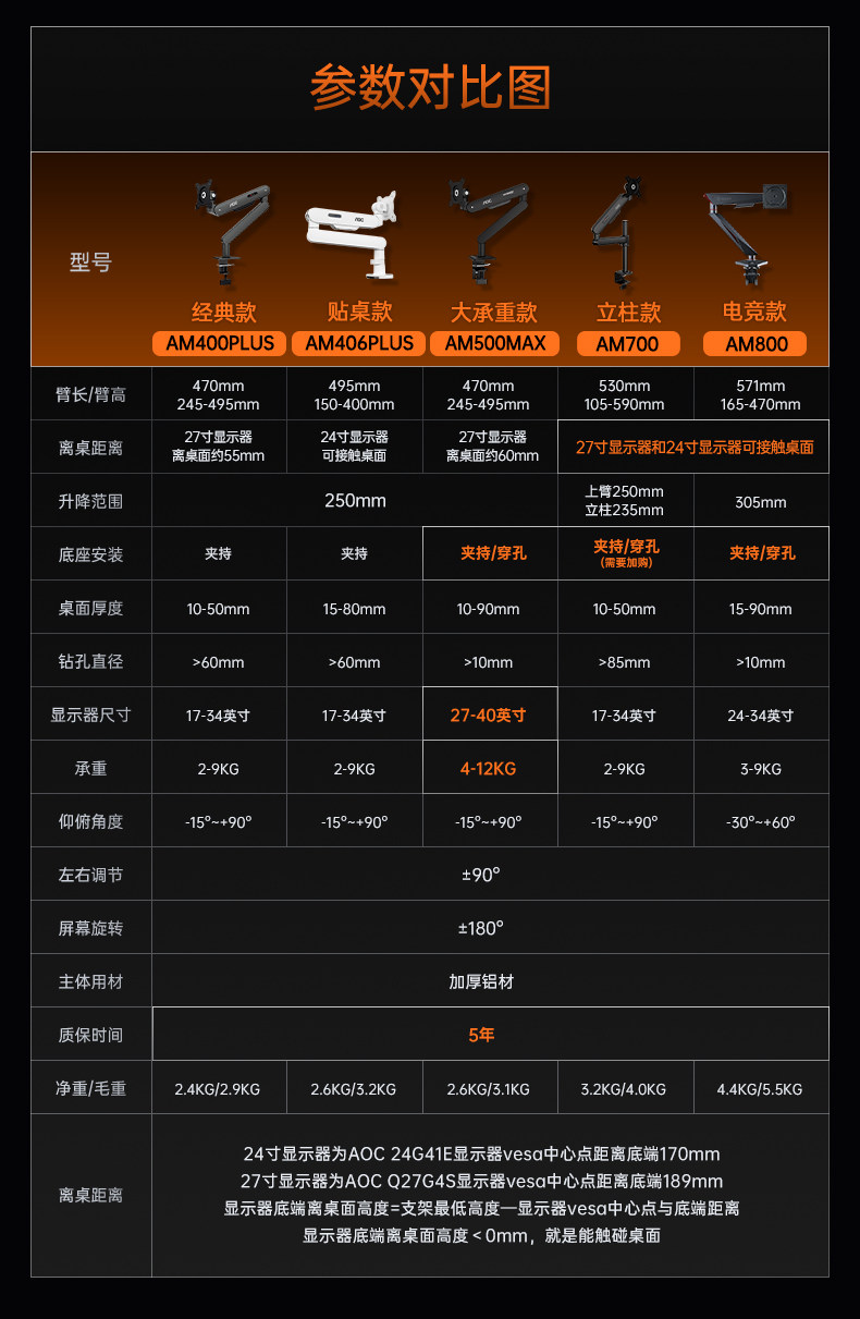 Aoc Monitor Stand Robotic Arm Am400P Computer Display Screen Adjustable Cantilever Base Dual-Screen Two-In-One