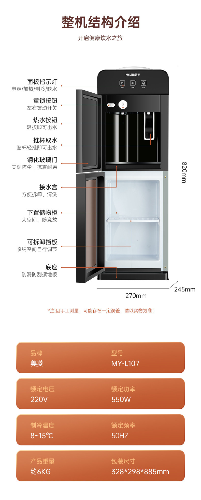 Meiling Water Dispenser for Home Use, Vertical Cooling and Heating, Desktop Small Size, Office Use, Bottled Water, Fully Automatic, Intelligent, New Model