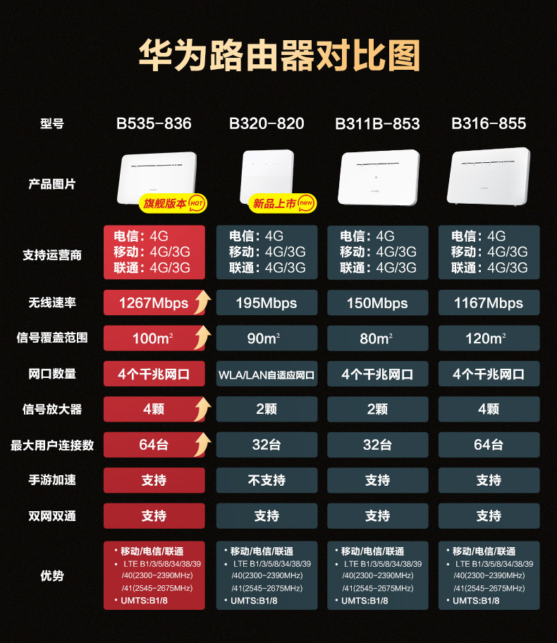 | Color Classification | B320-820 [Full Netcom],New Product Launch B321-820,B535-836 [4g Full Network High-End Version],B311B-853 [4g Full Network High-Speed Version],B311As-853 [4g Full Network Classic Model],B316-855 [4g Full Netcom Ultimate Edition],B320-820 [Three Network Switching-One Card for Three Networks],B535-836 [Three Network Switching-One Card for Three Networks] |
