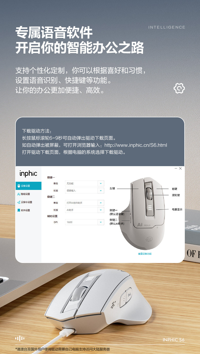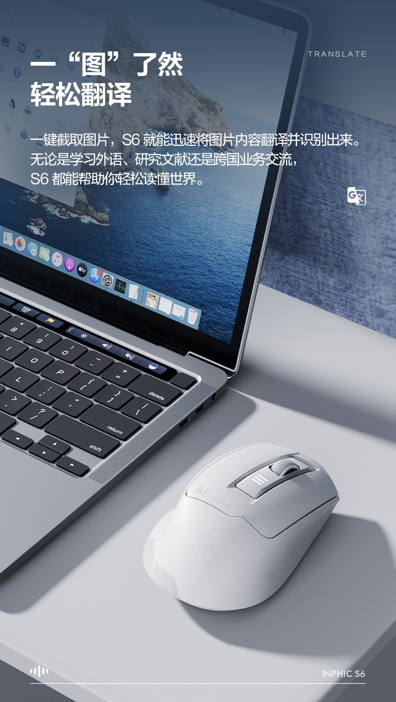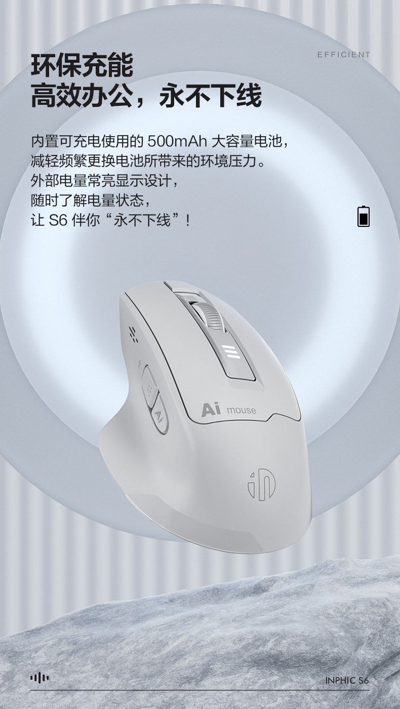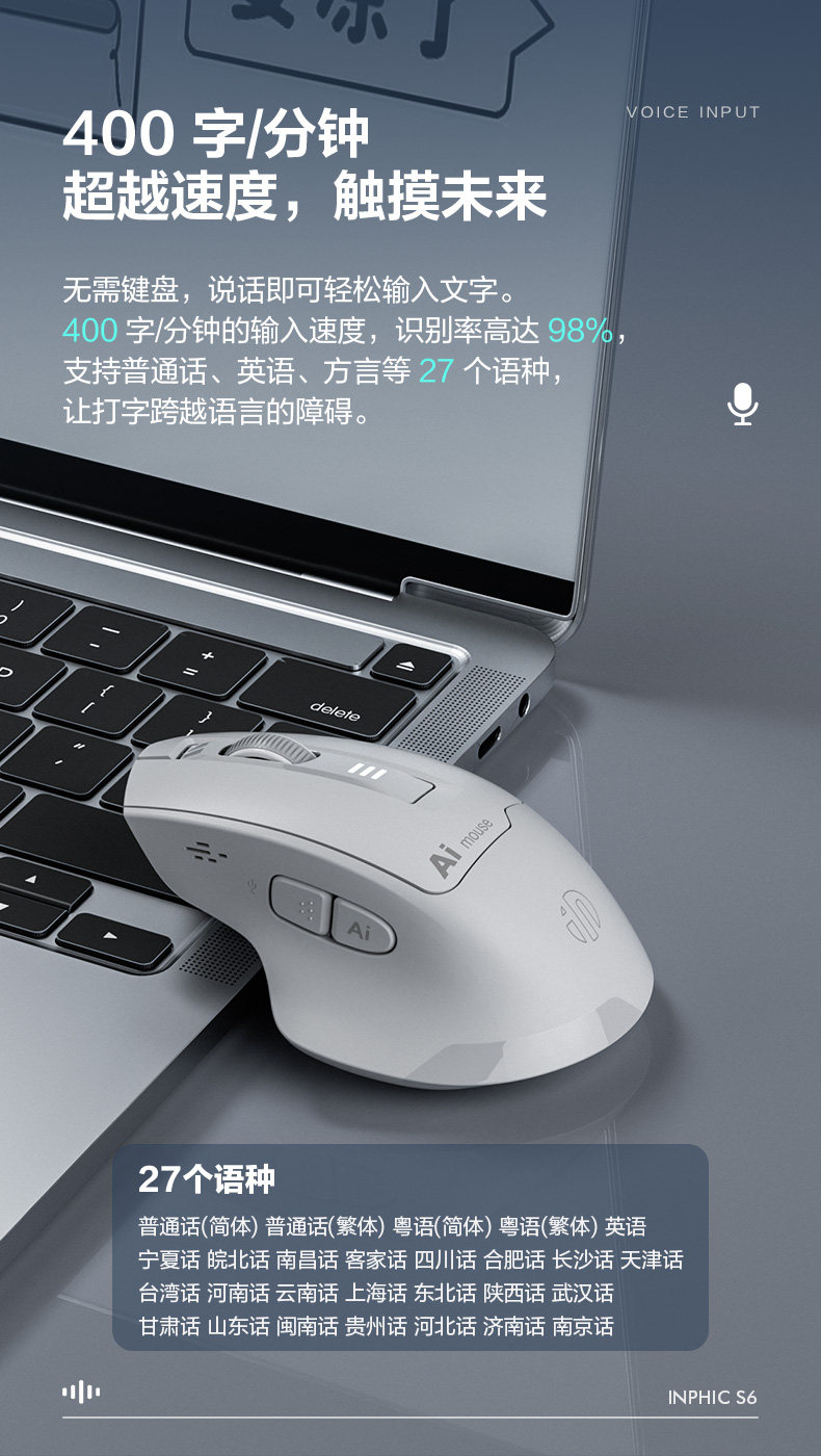Inphic S6 Wireless Ai Voice Mouse Rechargeable Silent Smart Voice Control Typing Bluetooth Notebook Office