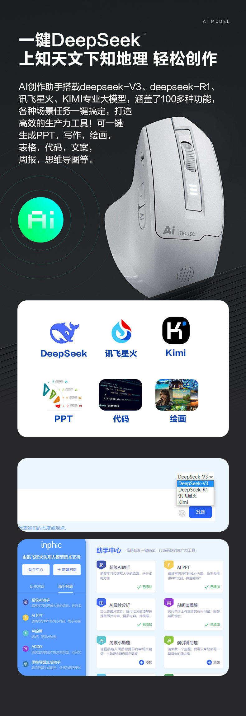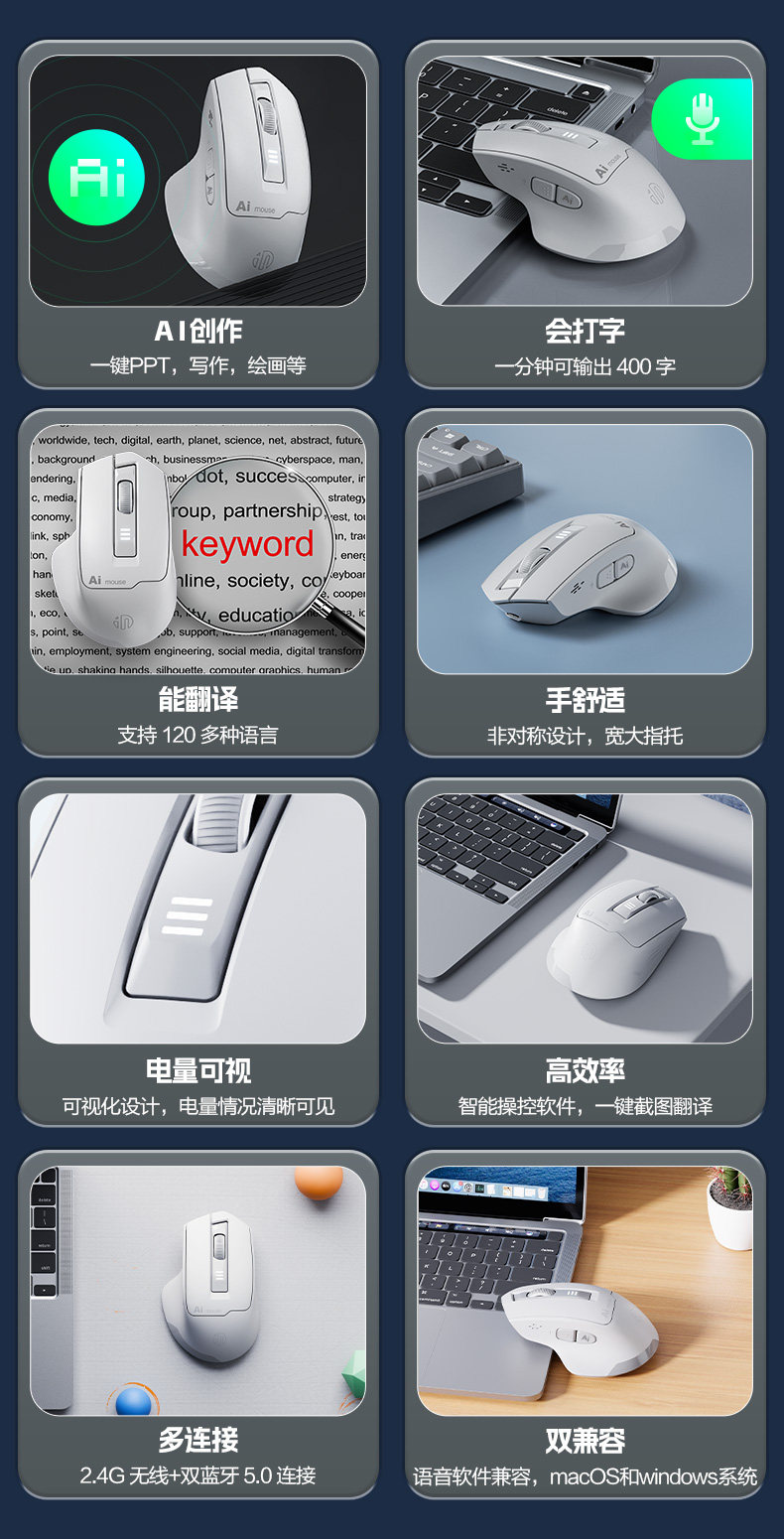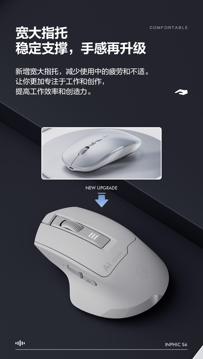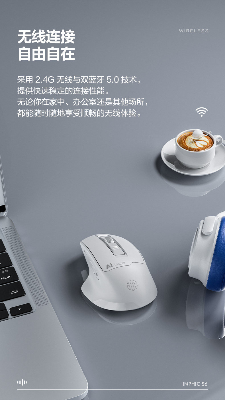 Inphic S6 Wireless Ai Voice Mouse Rechargeable Silent Smart Voice Control Typing Bluetooth Notebook Office