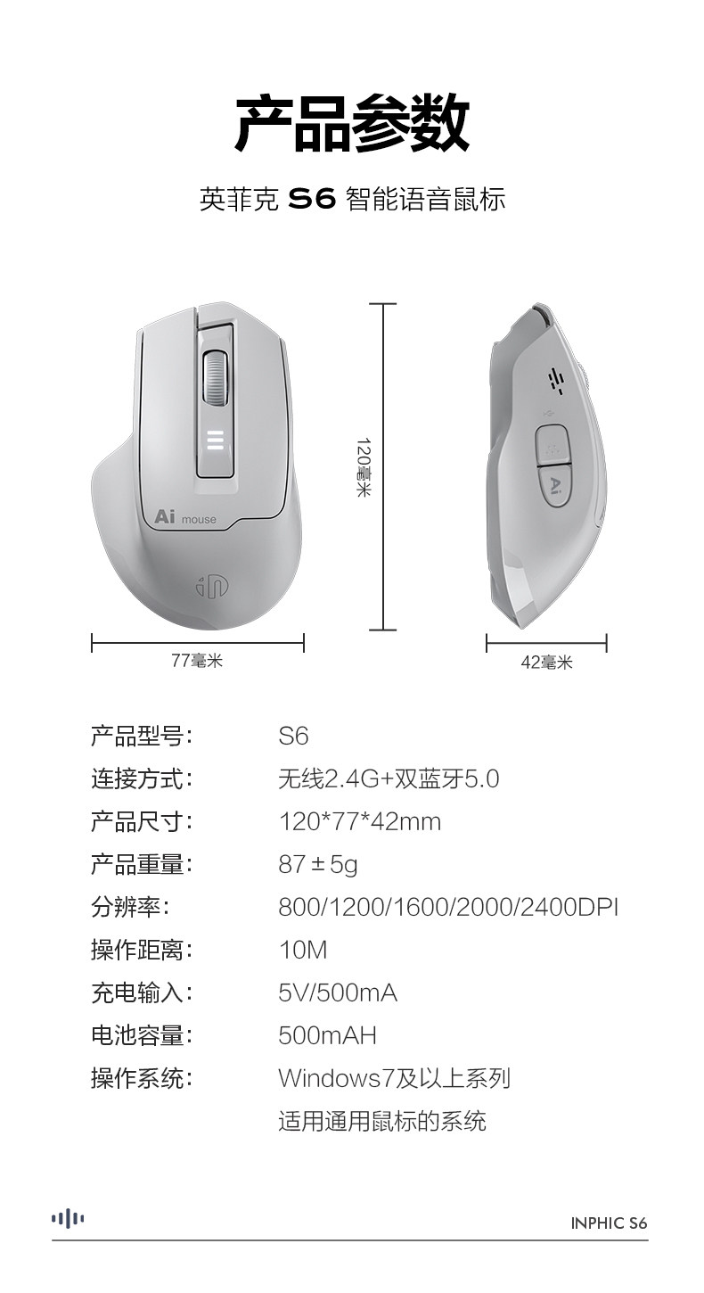 | Model | S6 Dual-Mode Voice Mouse |