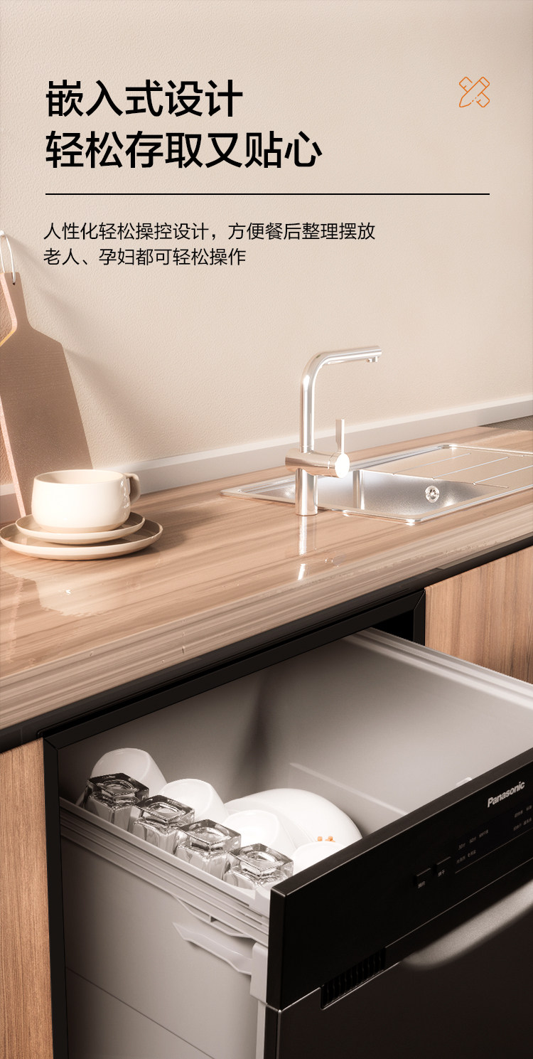Panasonic Built-In Dishwasher for Home Use, 8 Sets, Drawer Type, Fully Automatic Sterilization and Drying, Smart Dishwasher 6R5