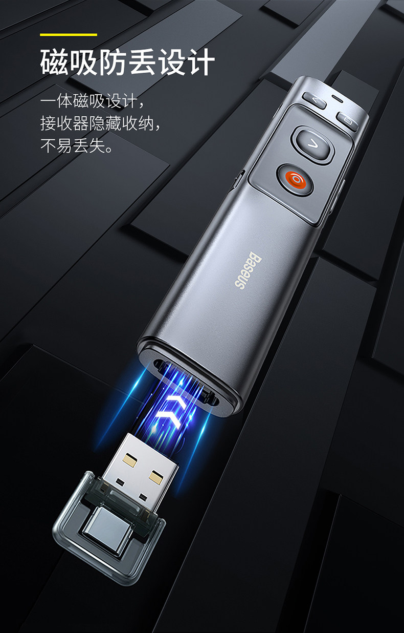 Baseus Page-Turning Pen, Multifunctional Laser Pointer for Teachers, Ppt Projector Pen, Multimedia Teaching Laser Remote Control Pen, Rechargeable Model for Presentations, Slide Show, Whiteboard, Interactive Whiteboard Page Turner