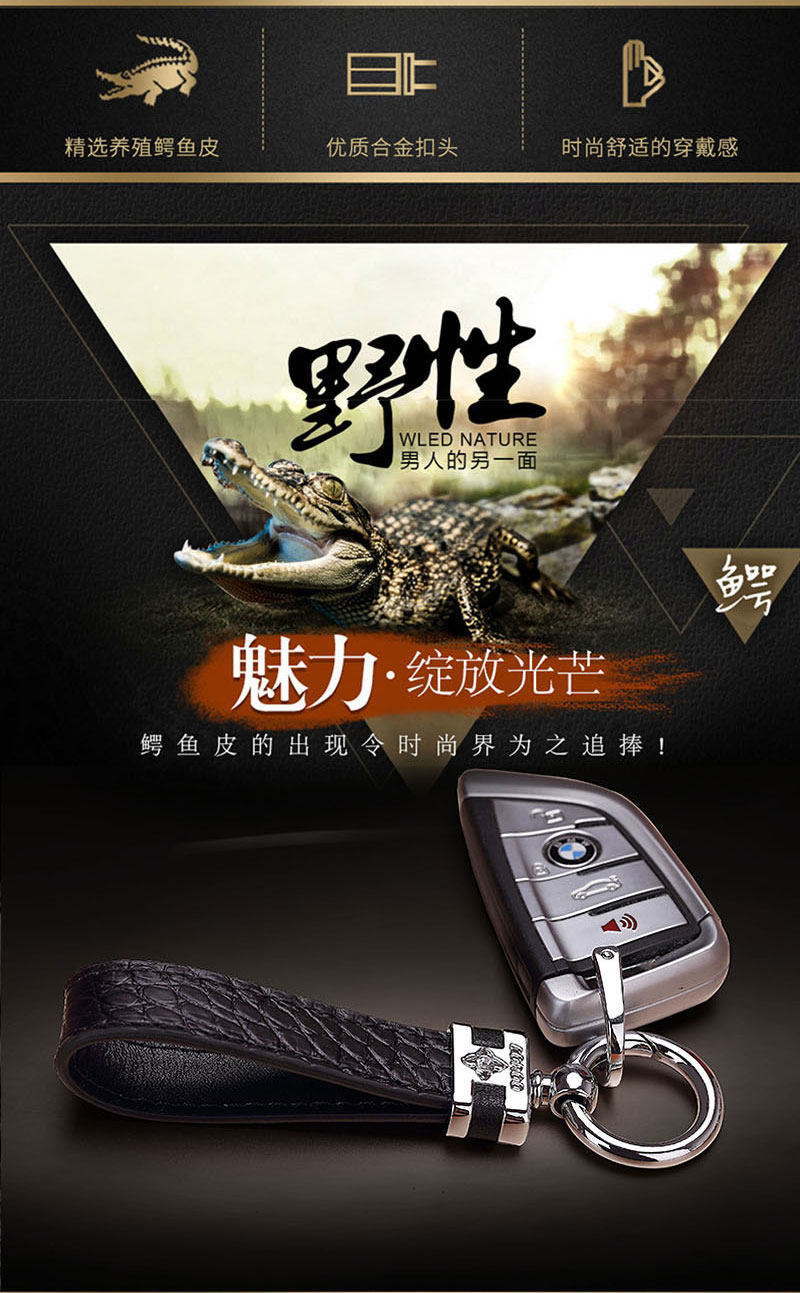 Car Keychain for Men, High-End Car Key Pendant, Crocodile Leather Key Chain, Personalized, Simple, Exquisite, Trendy for Women