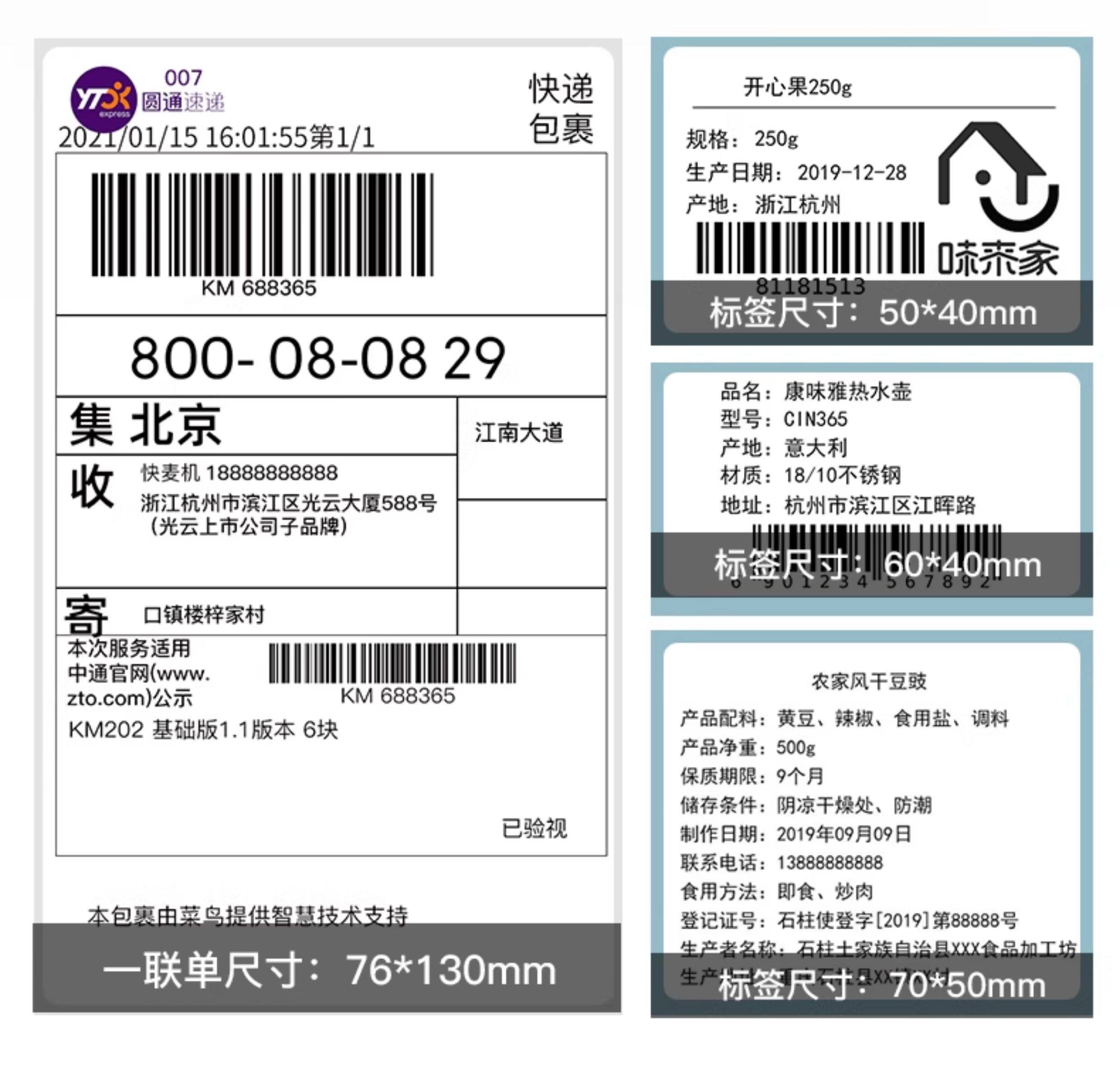 Kuaimai Km202M Express Receipt Printer Single Receipt Printer Bluetooth Adhesive Barcode Qr Code Price Sticker Thermal Label Printer Taobao Electronic Waybill Express Order Printer