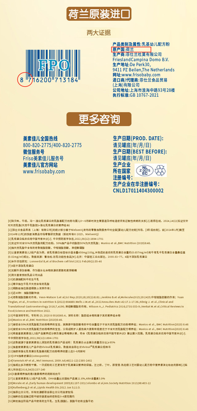 | Brand | Friso Prestige/Royal Meisujiaer |