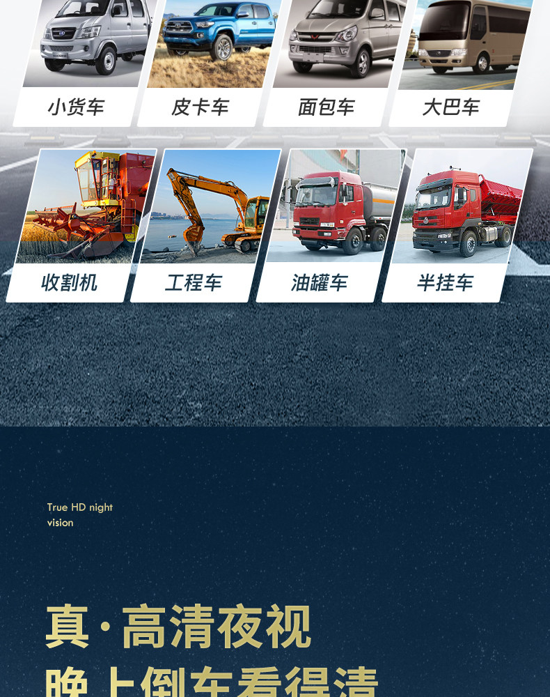 Truck Reversing Image 12V24V Harvester Truck-Mounted Display High-Definition Night Vision Camera Radar Probe