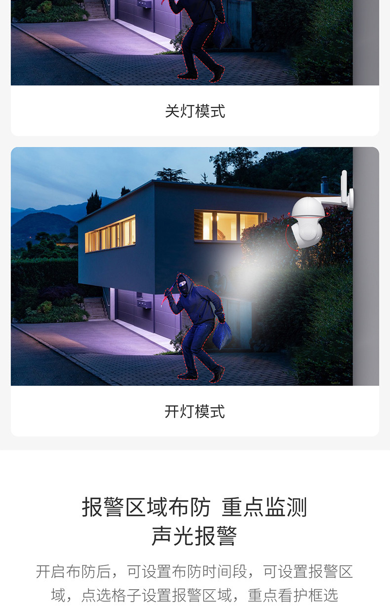 | Function | Perimeter Alarm,Supports Two-Way Talk,Recording |