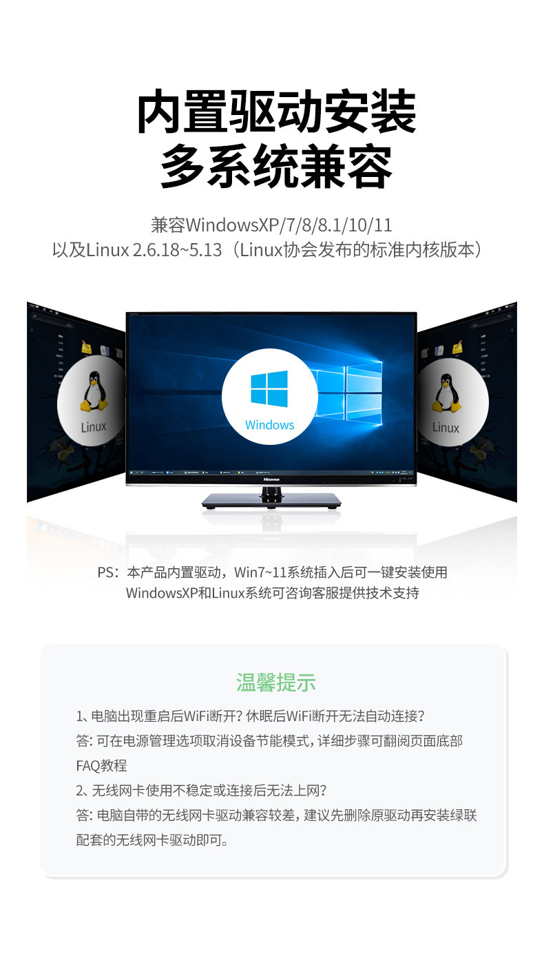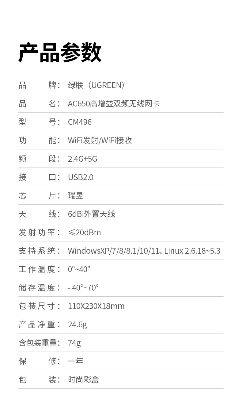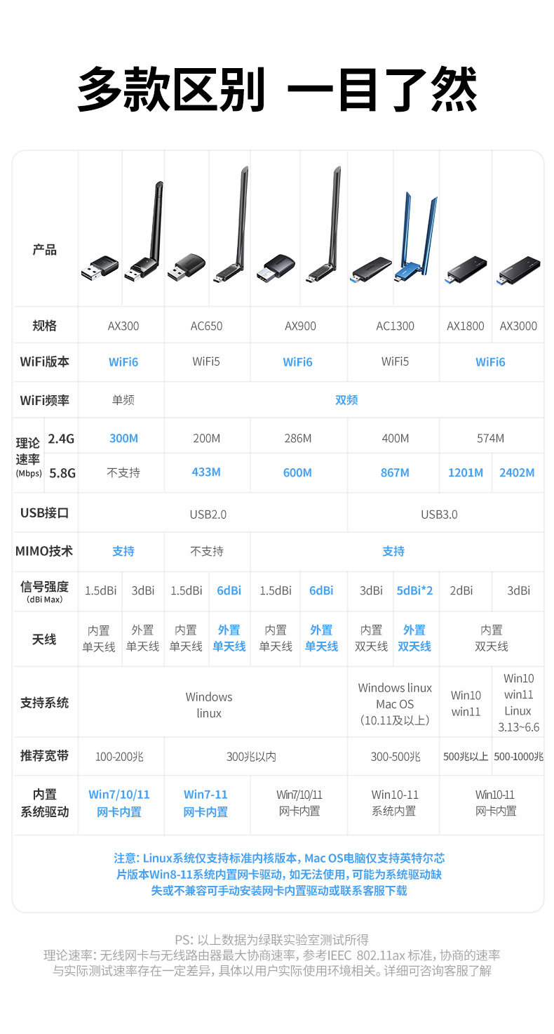 | Color Classification | 【Wifi 6 Ax300】Driver-Free Version - Built-In Antenna - Mini & Portable - 2.4Ghz Single-Band,【Wifi6-Ax300】Driverless Version-Built-In Antenna-2.4G Single Frequency,【Wifi6-Ax300】Driver-Free Version-External Antenna★Strong Signal★More Stable through the Wall - 2.4g Single Frequency,【Wifi5-Ac650】Driver-Free Version-External Antenna★Strong Signal★More Stable through the Wall - 2.4G+5.8G Dual Frequency,[Wifi5-Ac650] Driver-Free Version - Built-In Antenna - 2.4G+5.8G Dual-Band,[Wifi6-Ax900] Driver-Free Version - Built-In Antenna - 2.4G+5.8G Dual-Band,【Wifi6-Ax900】Driver-Free Version-External Antenna★Strong Signal★More Stable through the Wall - 2.4G+5.8G Dual Frequency,【Wifi5-Ac1300】Driver-Free Version-External Dual Antennas★Stronger Signal-2.4G+5.8G Dual Band,[Wifi5-Ac1300] Driver-Free Version - Built-In Antenna - 2.4G+5.8G Dual-Band,【Wifi6-Ax1800】Driver-Free Version-External Dual Antennas★Strong Signal★More Stable through the Wall - 2.4G+5.8G Dual Frequency,[Wifi6-Ax1800] Driver-Free Version - Built-In Antenna - 2.4G+5.8G Dual-Band,【Wifi6-Ax3000】Driver-Free Version-Built-In Antenna★Strong Speed★Honeycomb Cooling-2.4G+5.8G Dual Frequency,【Wifi6-Ax3000】Driver-Free Version-External Dual Antennas★Strong Speed★Stronger Signal-2.4G+5.8G Dual Band,【Wifi4--N300】Built-In Antenna-2.4G Single Frequency,【Wifi4-N300】External Antenna★Strong Signal★More Stable through the Wall - 2.4g Single Frequency,Tmall Direct Delivery from 5 Major Warehouses Across the Country |