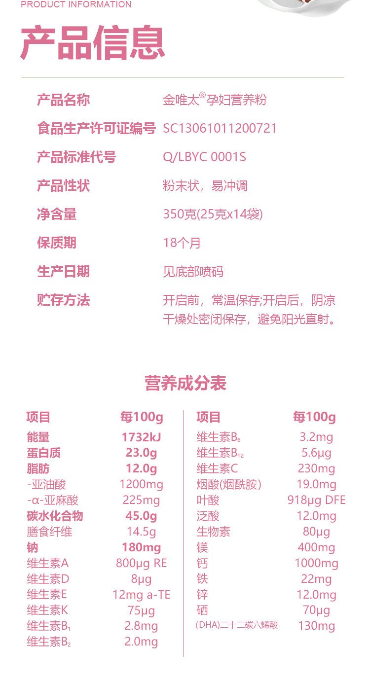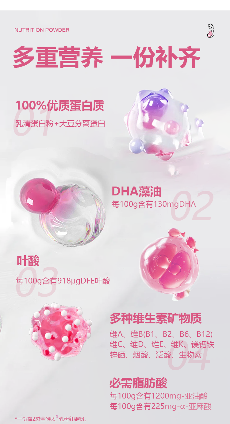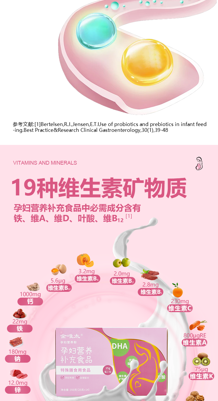 Jinweita Maternity Nutritional Powder Dha Supplements Vitamins and Minerals, Mid-Pregnancy Supplement with Folic Acid, Specially Designed for Pregnant Women