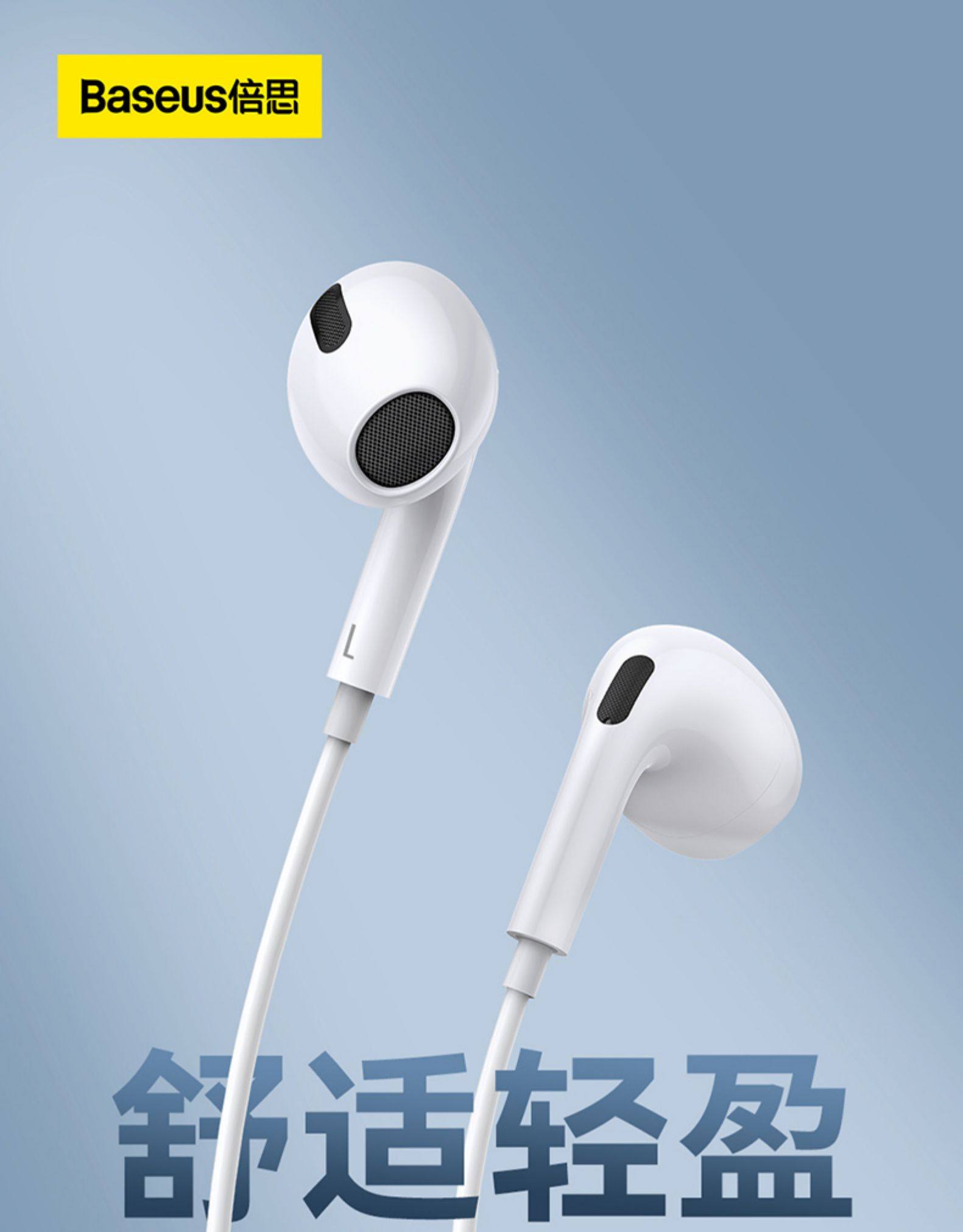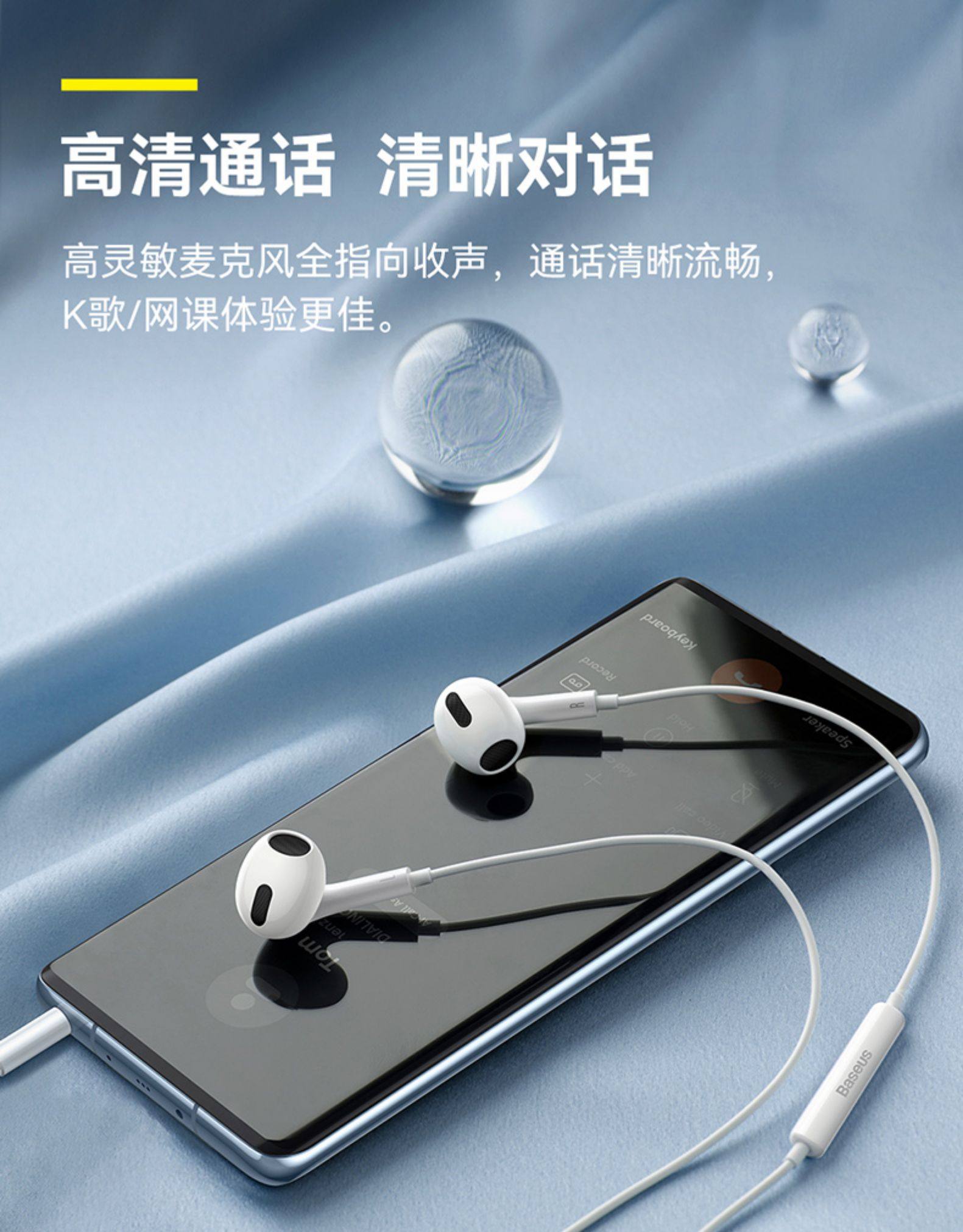 Baseus Wired In-Ear Headphones with Type-C Interface and Round Hole Are Suitable for Huawei, Xiaomi, Apple 16, iPhone 17