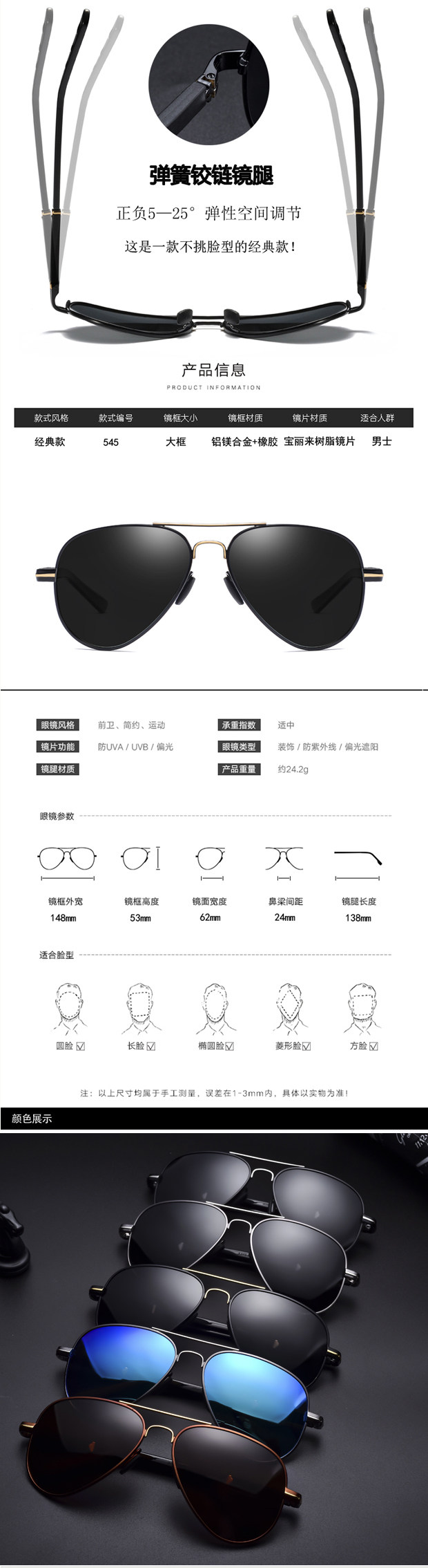 | Function | Polarized,Anti-Uvb,Anti-Blue Light,Anti-Uva,Sunshade,Discoloration,Anti-Arc |
