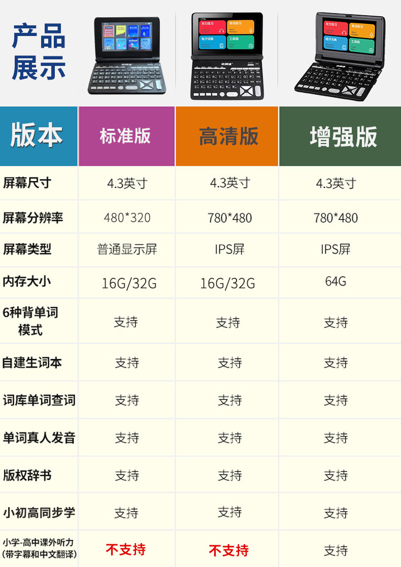 | Color Classification | The Original English Dictionary Brand/Kuaiyitong,16Gb/Standard Screen/Piano Black,32Gb/Standard Screen/Piano Black,32Gb/Hd Screen/Piano Black,64Gb/High-Definition Screen Enhanced Version/Piano Black,32G/Hd Screen/Space Silver,64Gb/High-Definition Screen Enhanced Version/Space Silver |