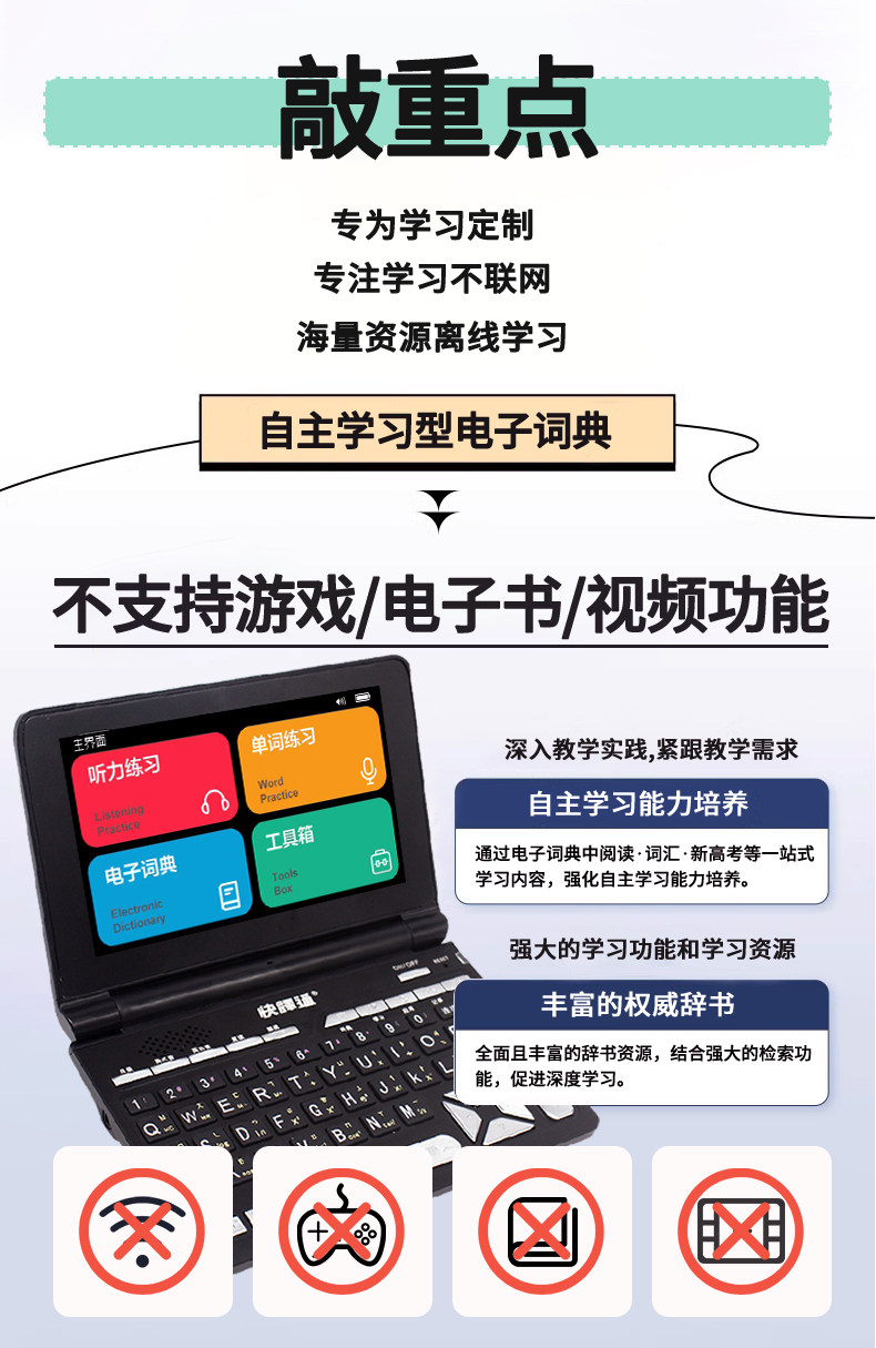 Quick Translator Student English Electronic Dictionary Longman Advanced English-Chinese Dual Interpretation Dictionary Translator for Primary, Middle, and High School Listening Vocabulary Review and Reading Practice, No Games, No Internet Required, English Learning Vocabulary Memorization Device