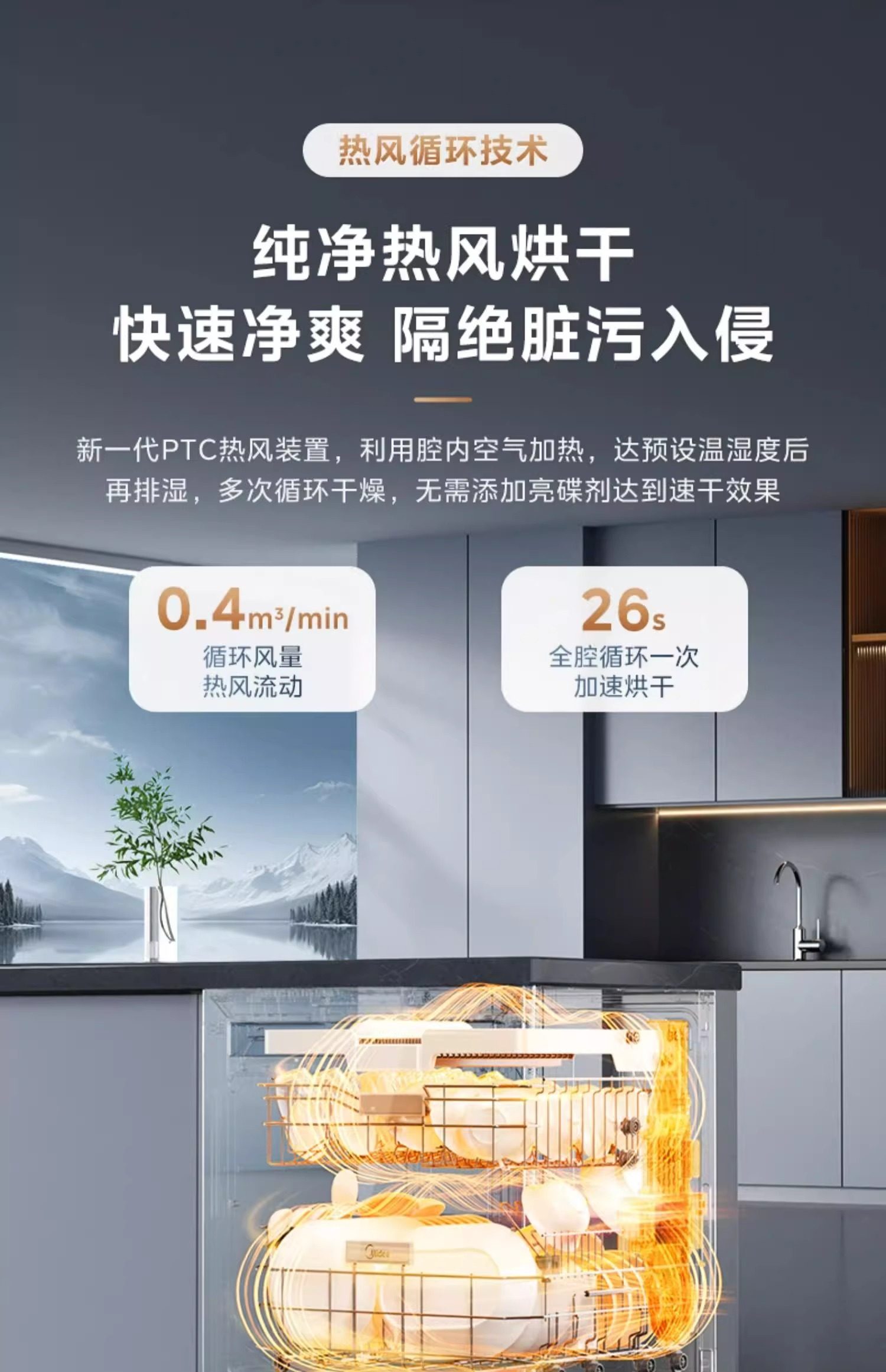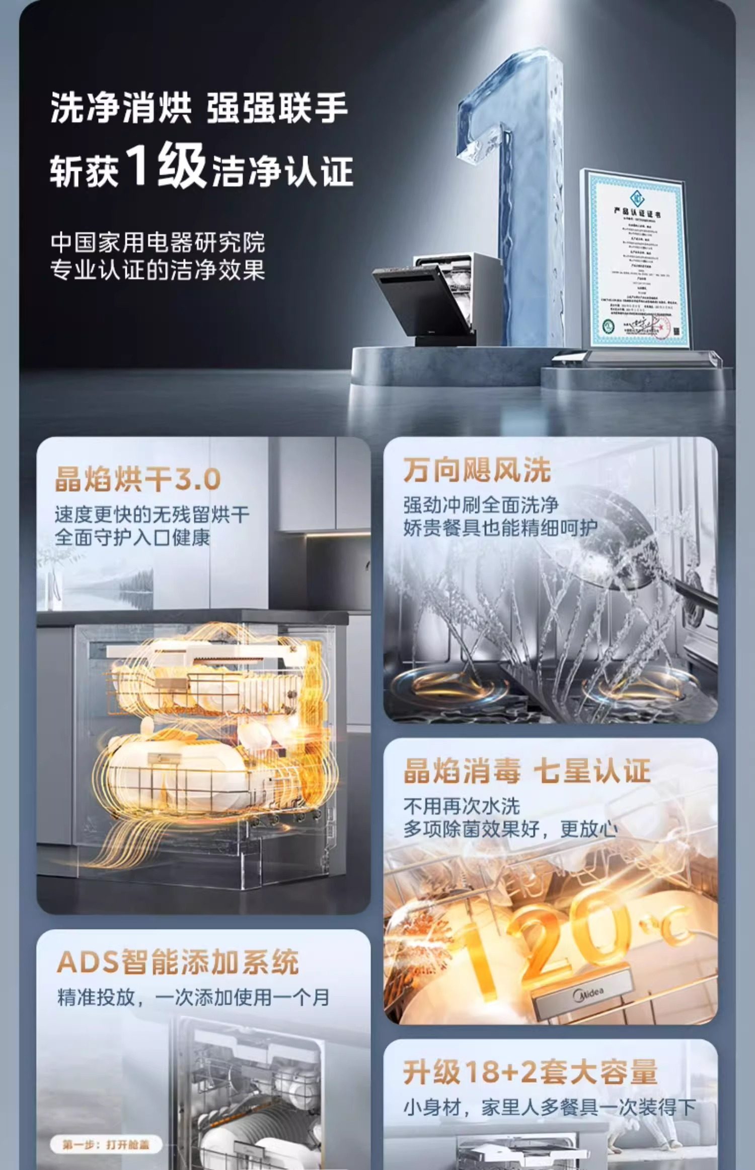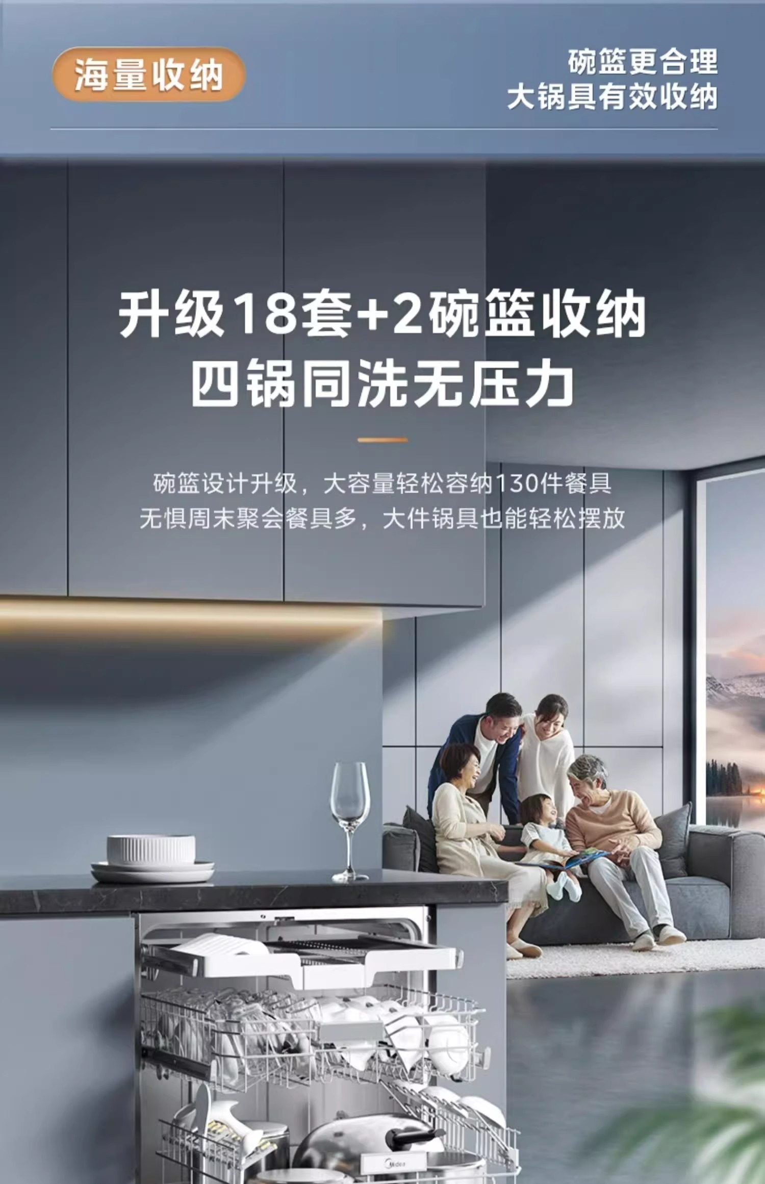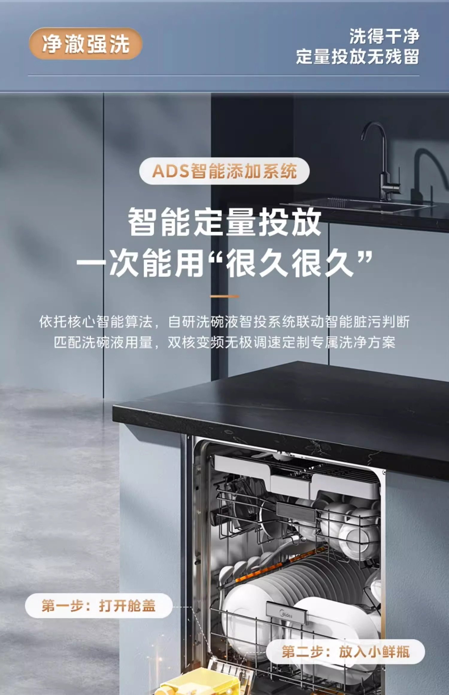 Midea Dishwasher for Home Use, Built-In, Fully Automatic, 18 Sets, Large Capacity, Intelligent Dispensing, Gx1000Smax Premium Edition