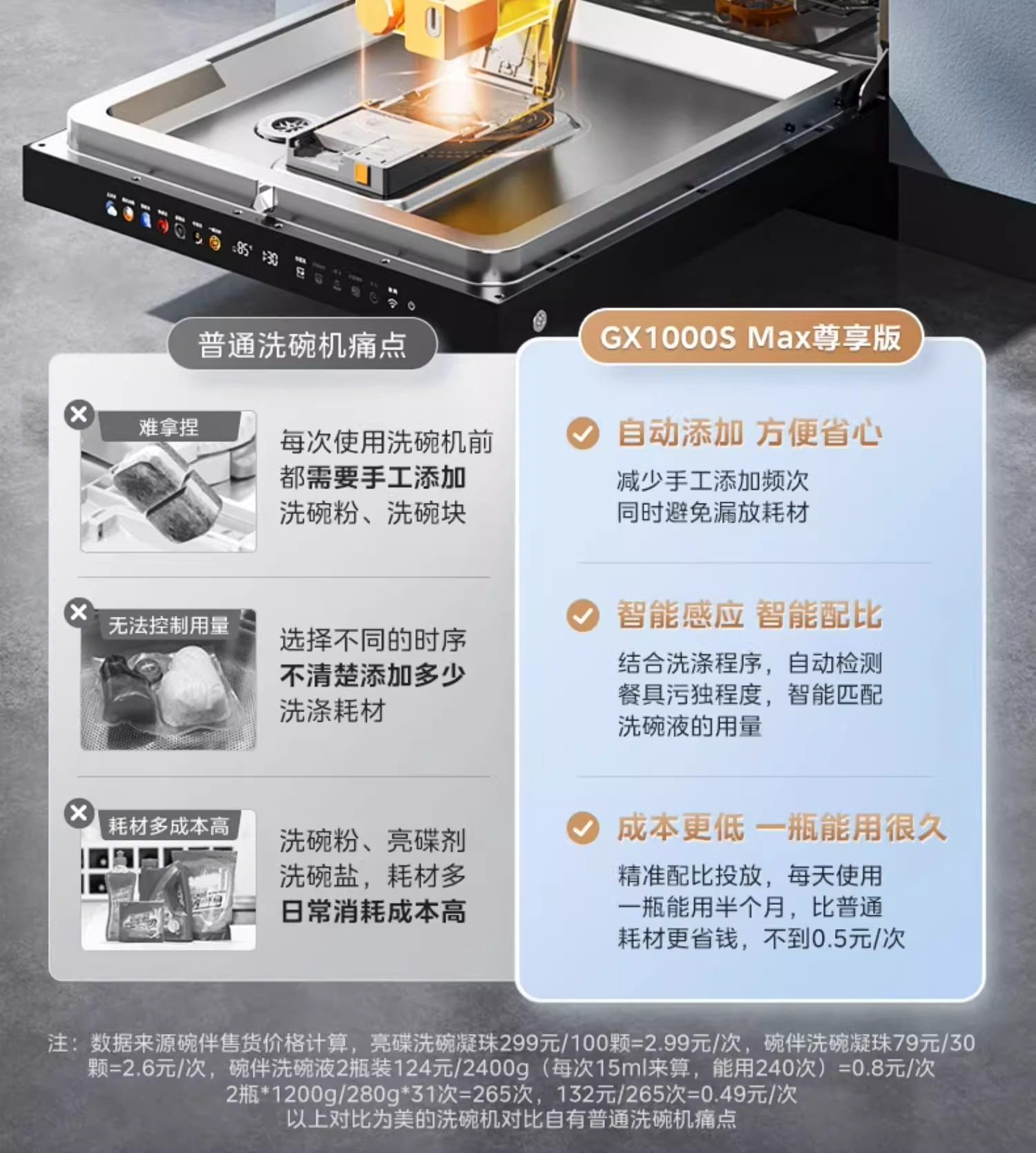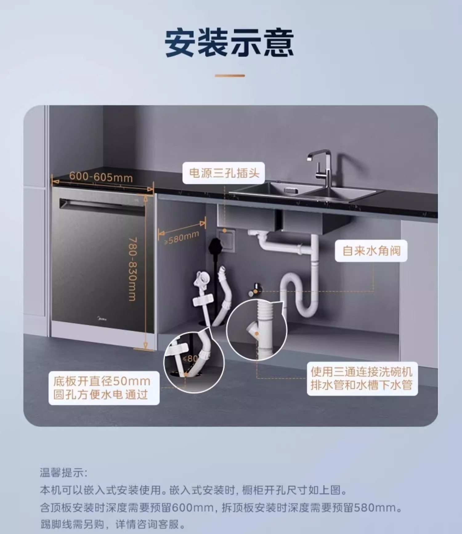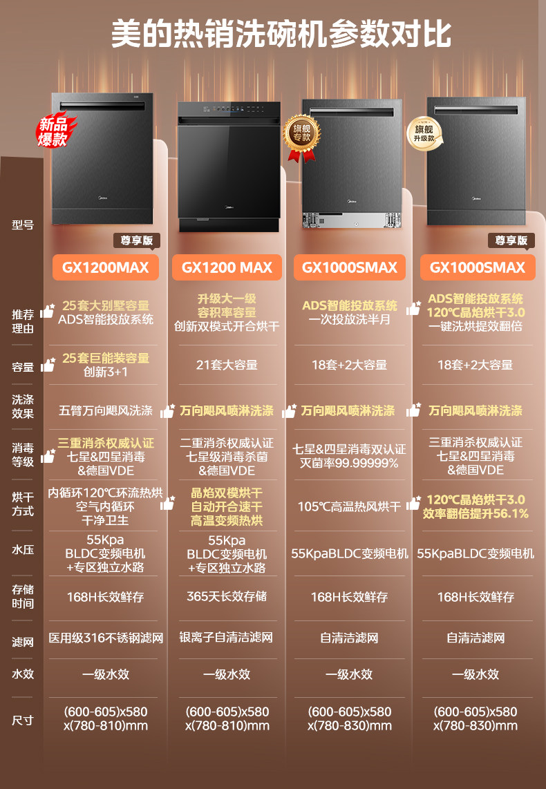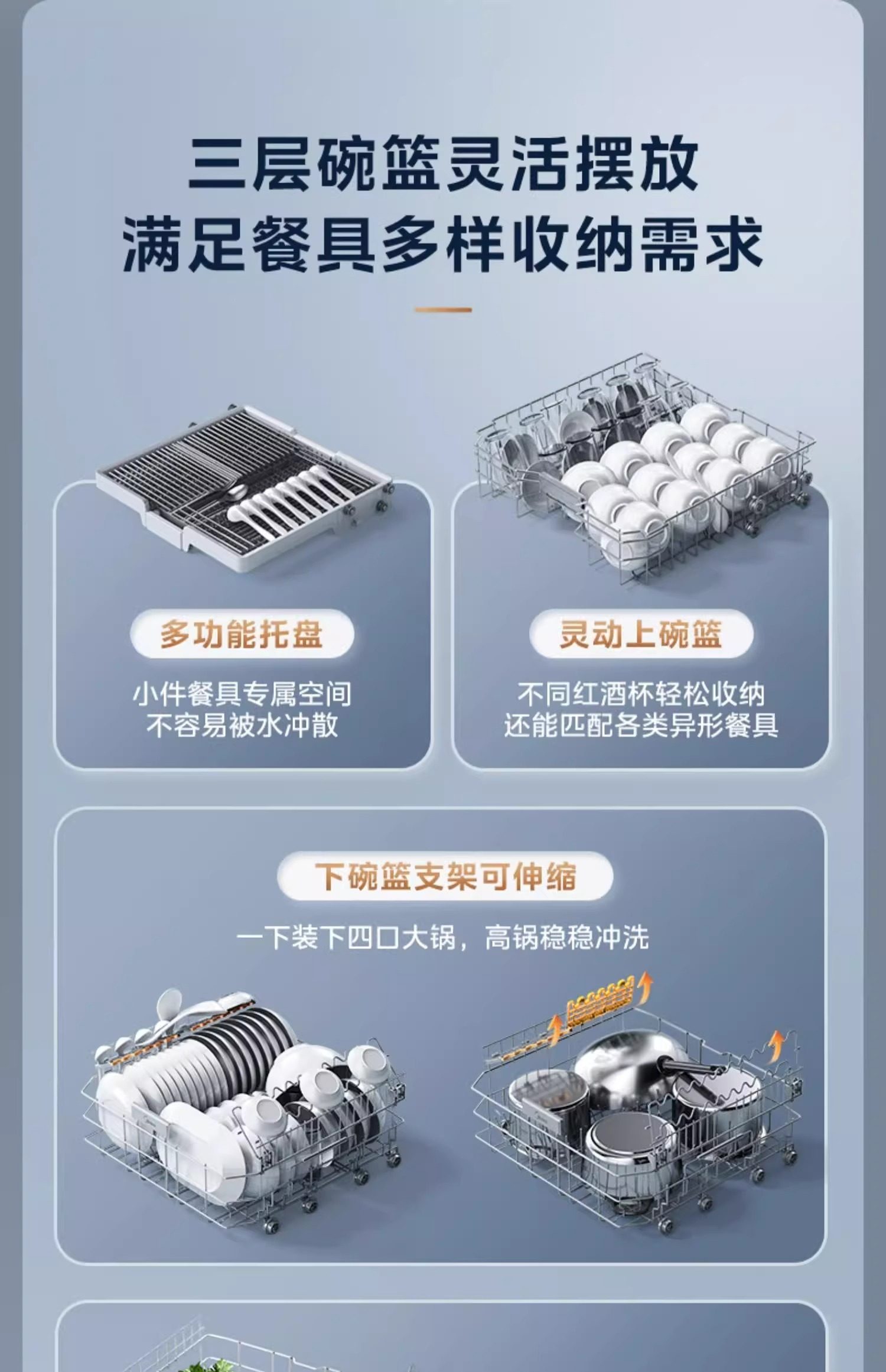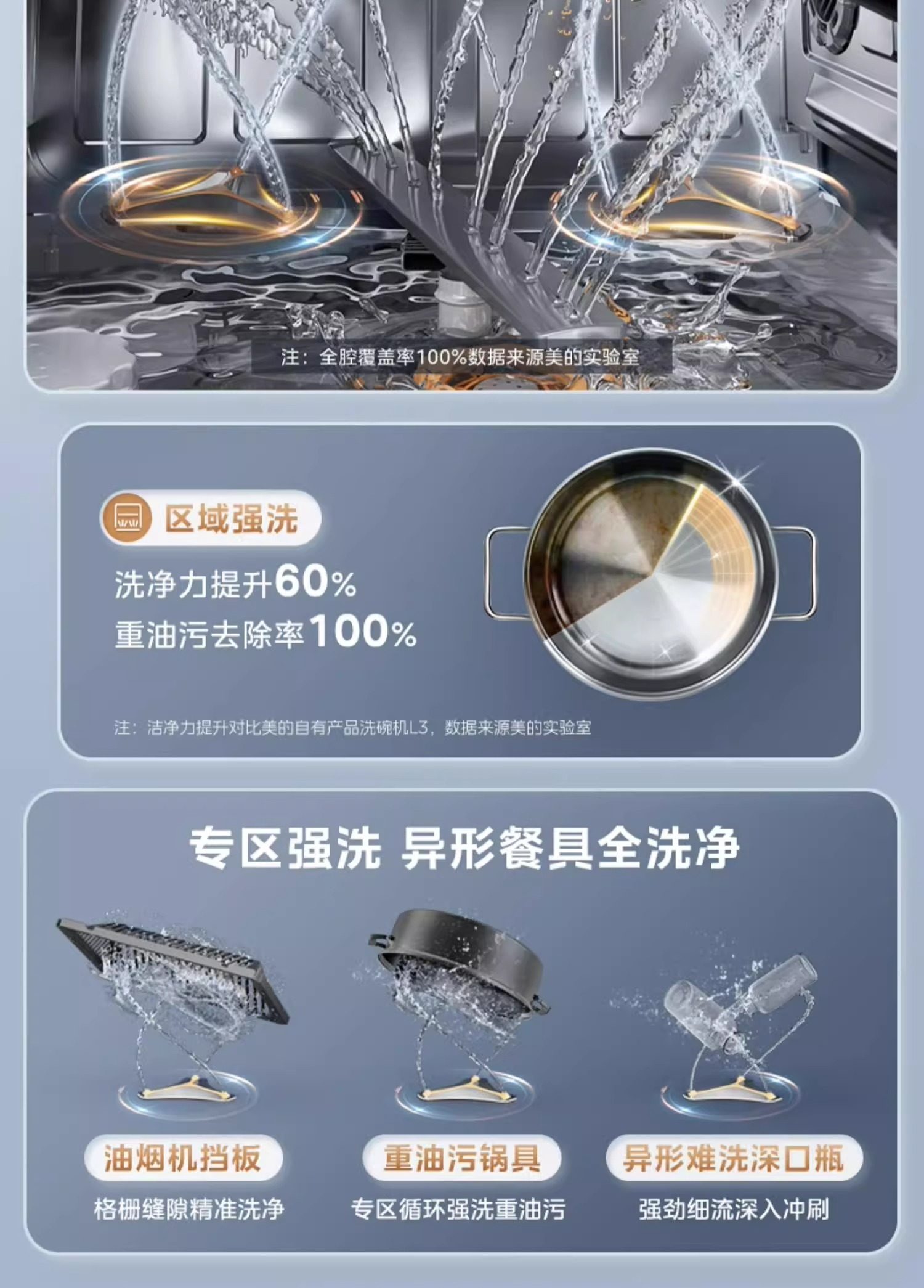 Midea Dishwasher for Home Use, Built-In, Fully Automatic, 18 Sets, Large Capacity, Intelligent Dispensing, Gx1000Smax Premium Edition