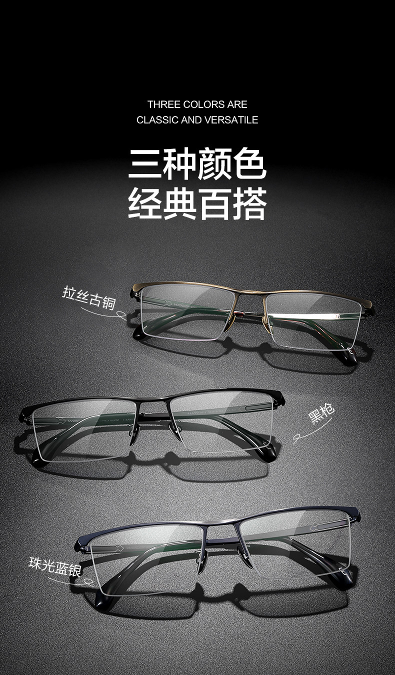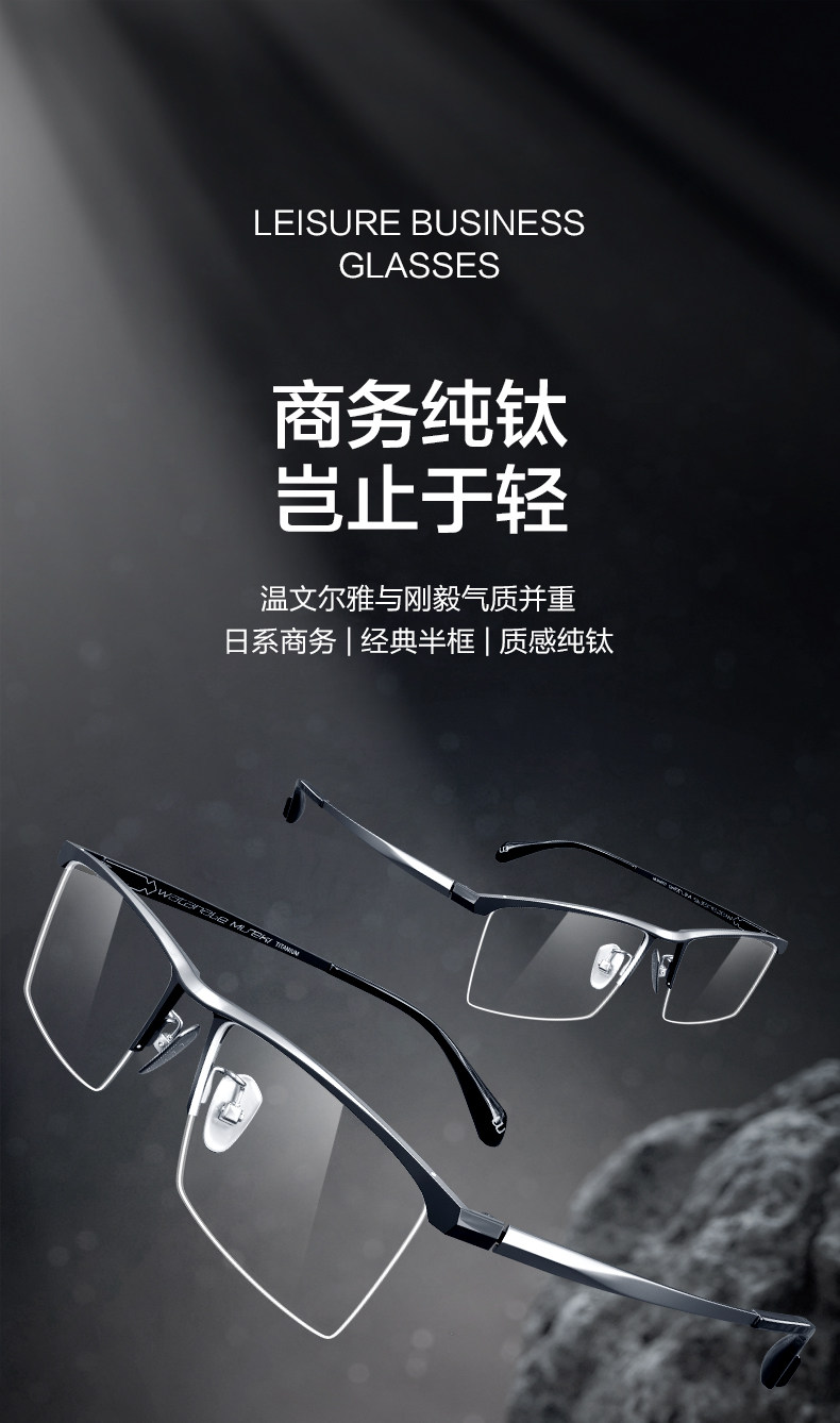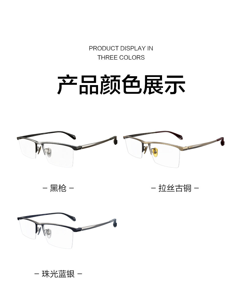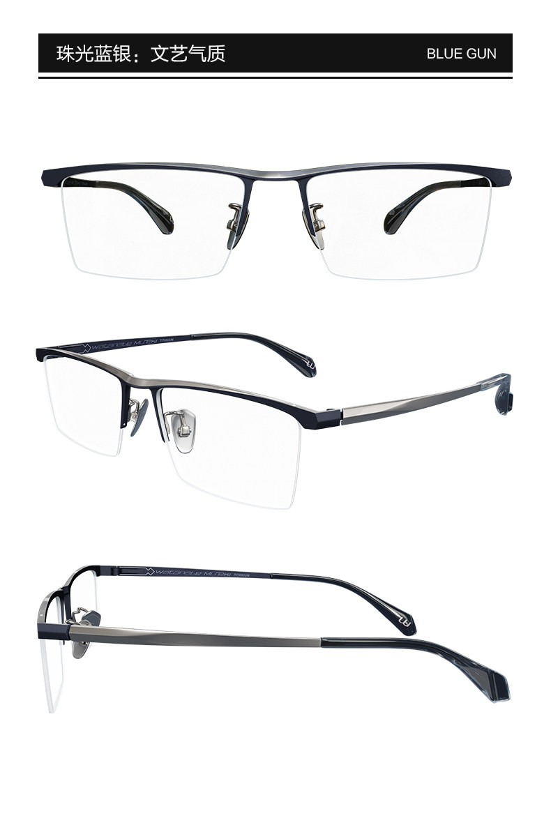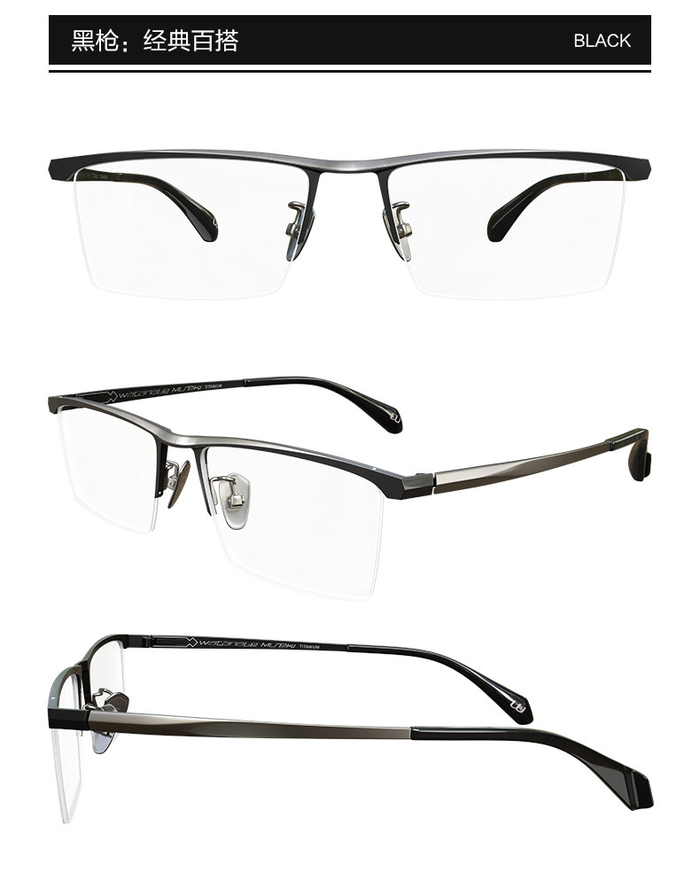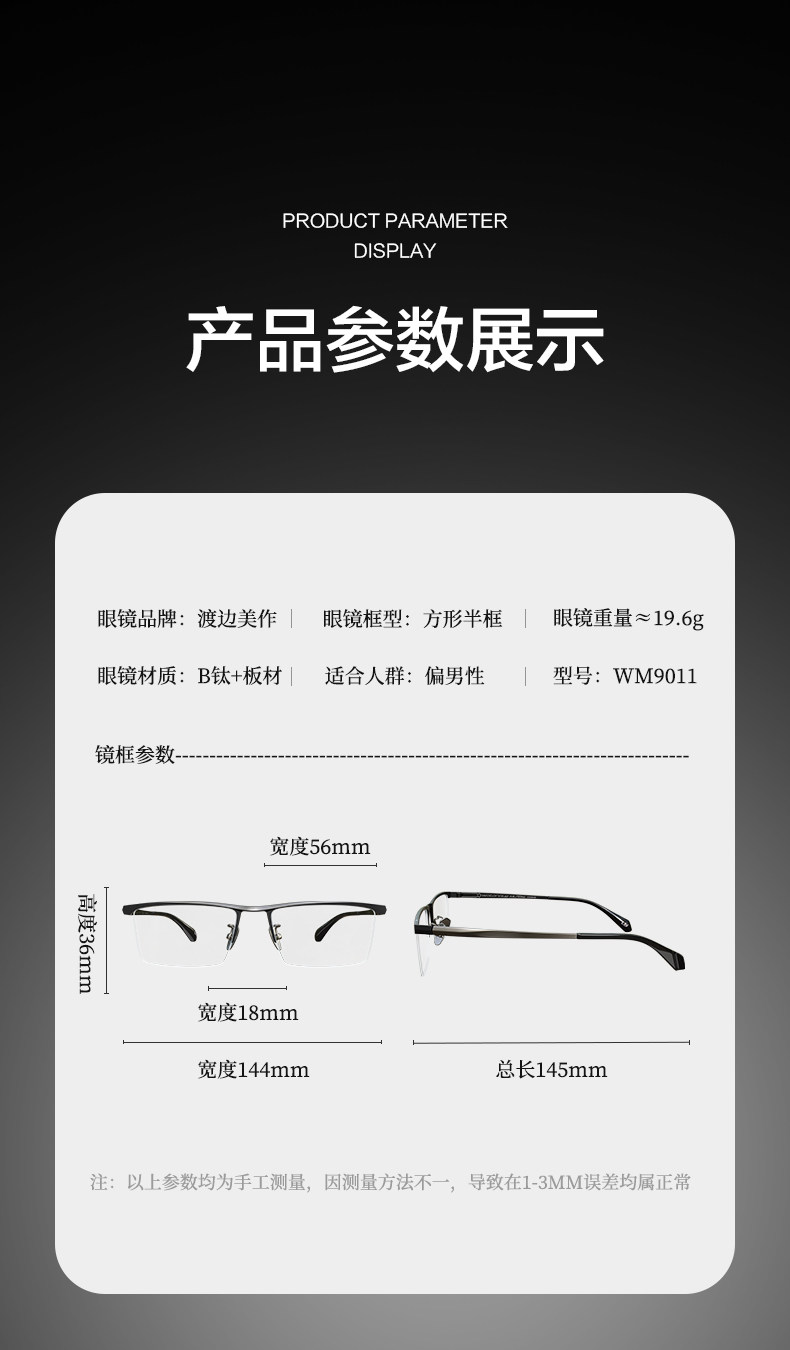 Watanabe Meizuo Pure Titanium Anti-Blue Light Glasses Frame for Men, Can Be Fitted with Prescription Lenses, Black Frame, Classic Casual Business Half-Frame Glasses