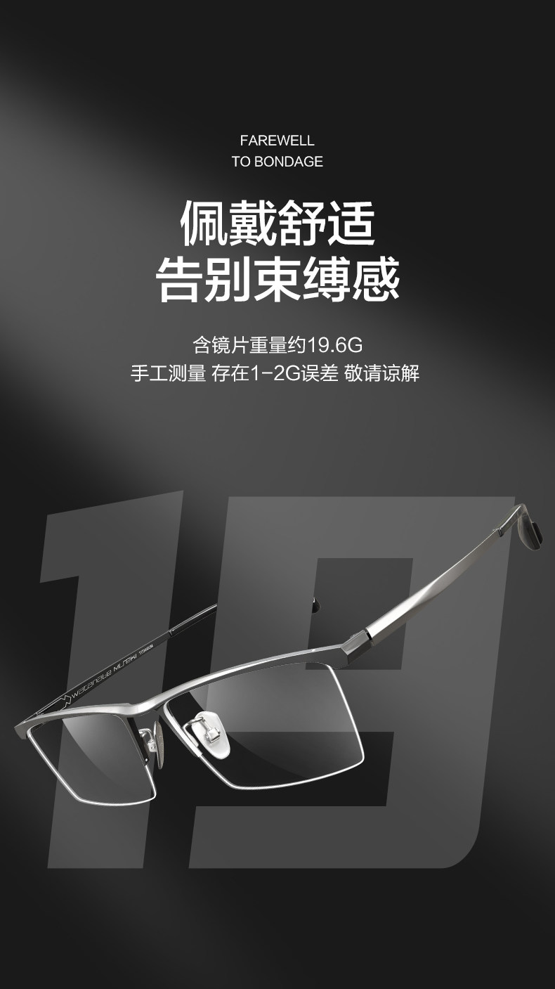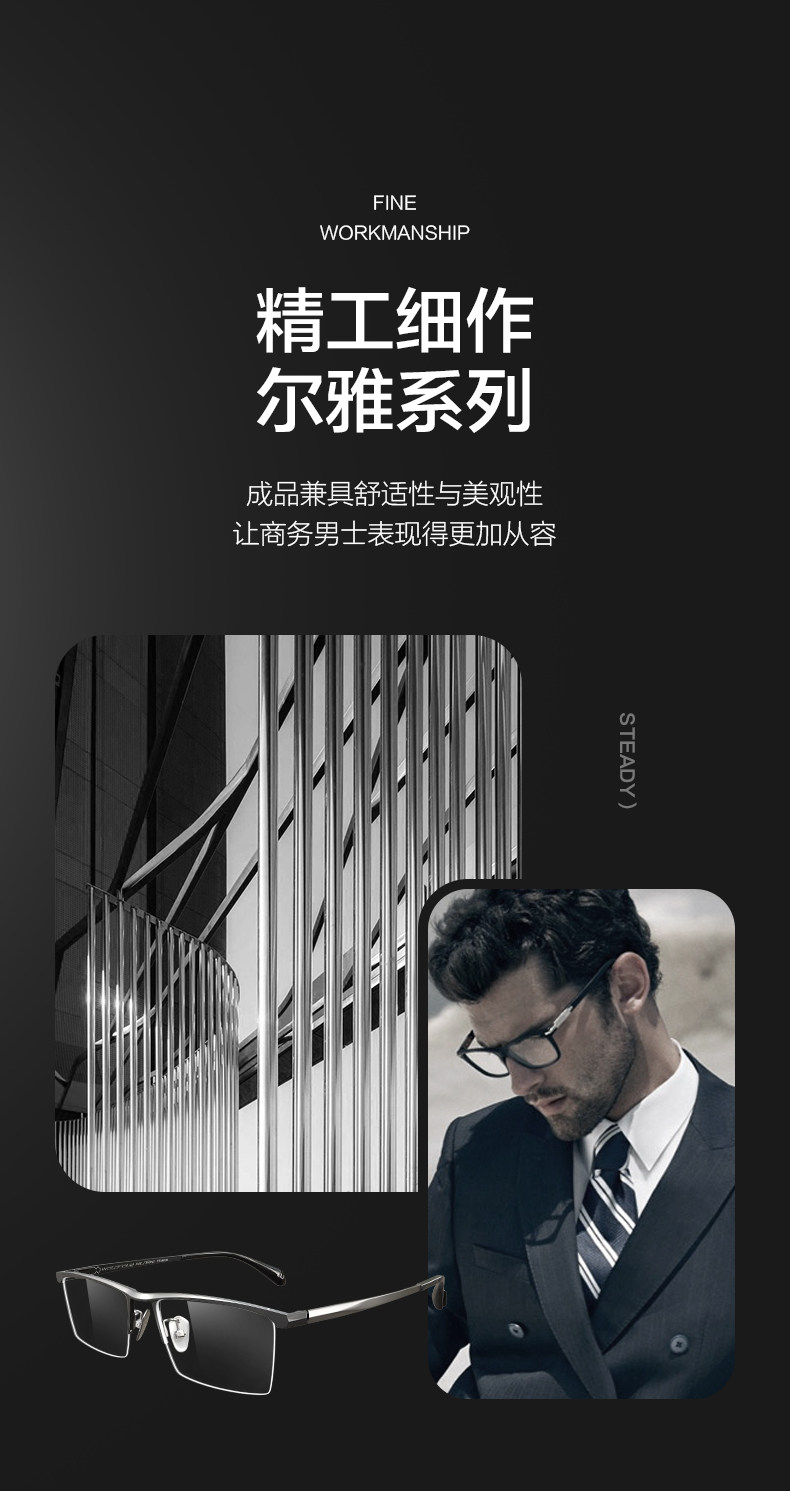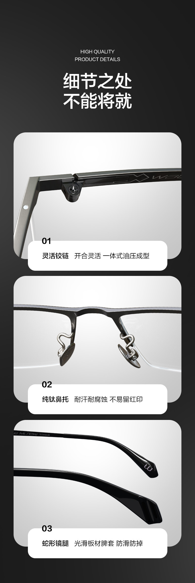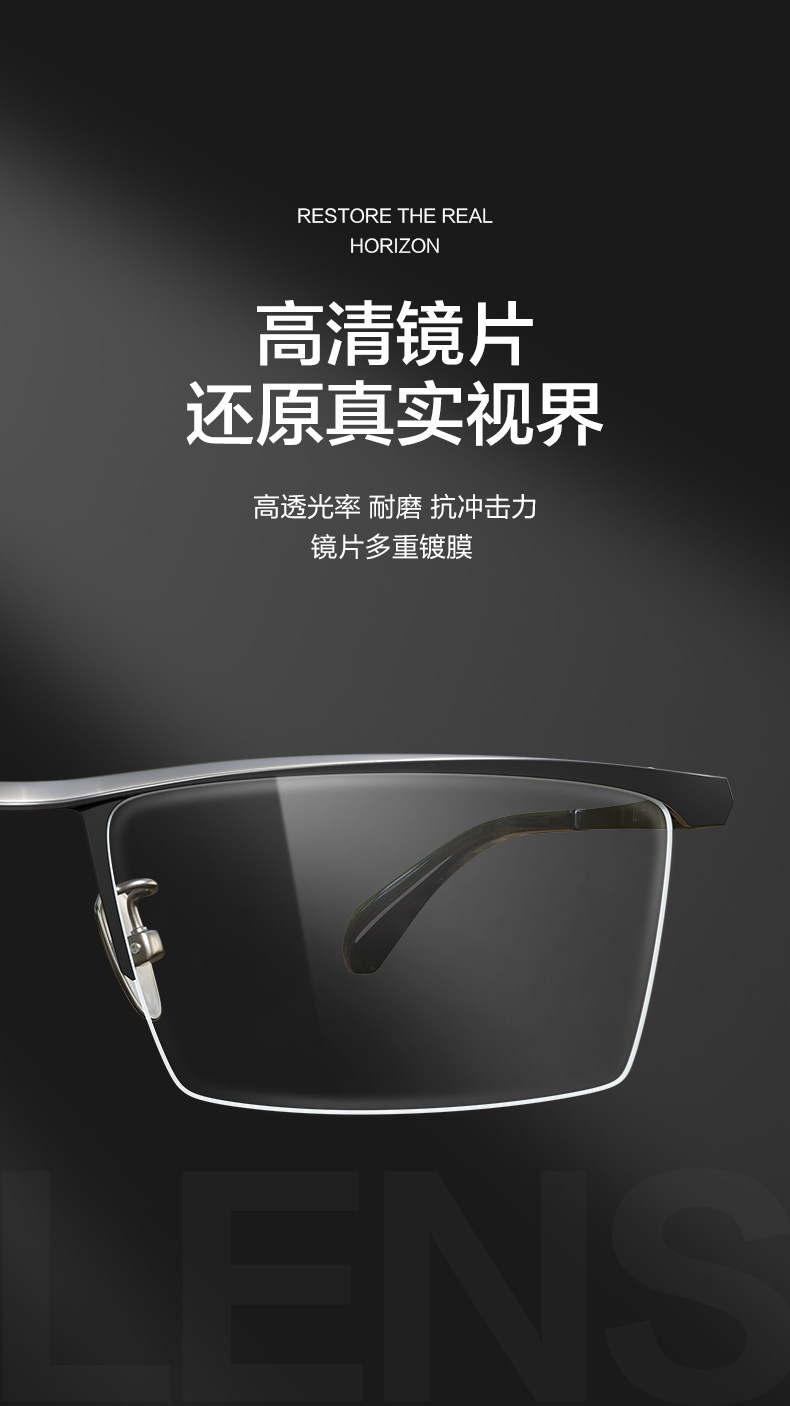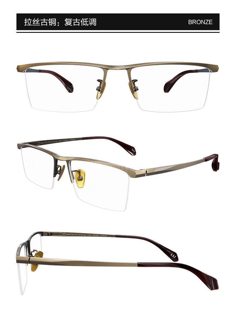 Watanabe Meizuo Pure Titanium Anti-Blue Light Glasses Frame for Men, Can Be Fitted with Prescription Lenses, Black Frame, Classic Casual Business Half-Frame Glasses