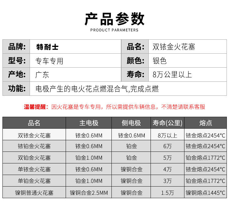 | Spark Plug Material | For Needle Double Iridium |
