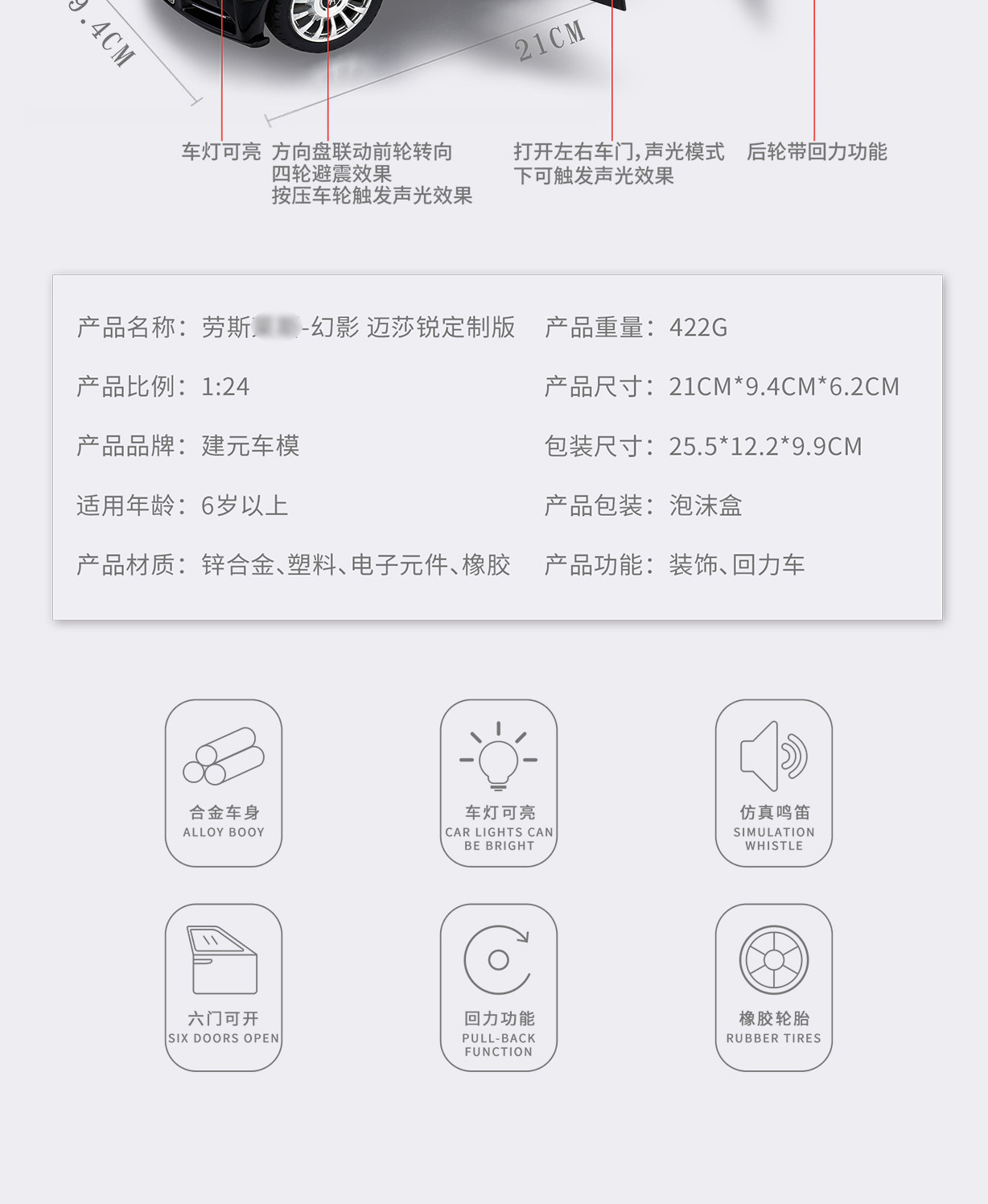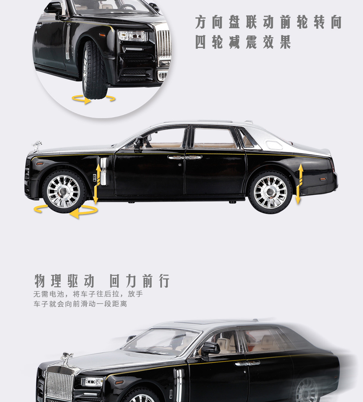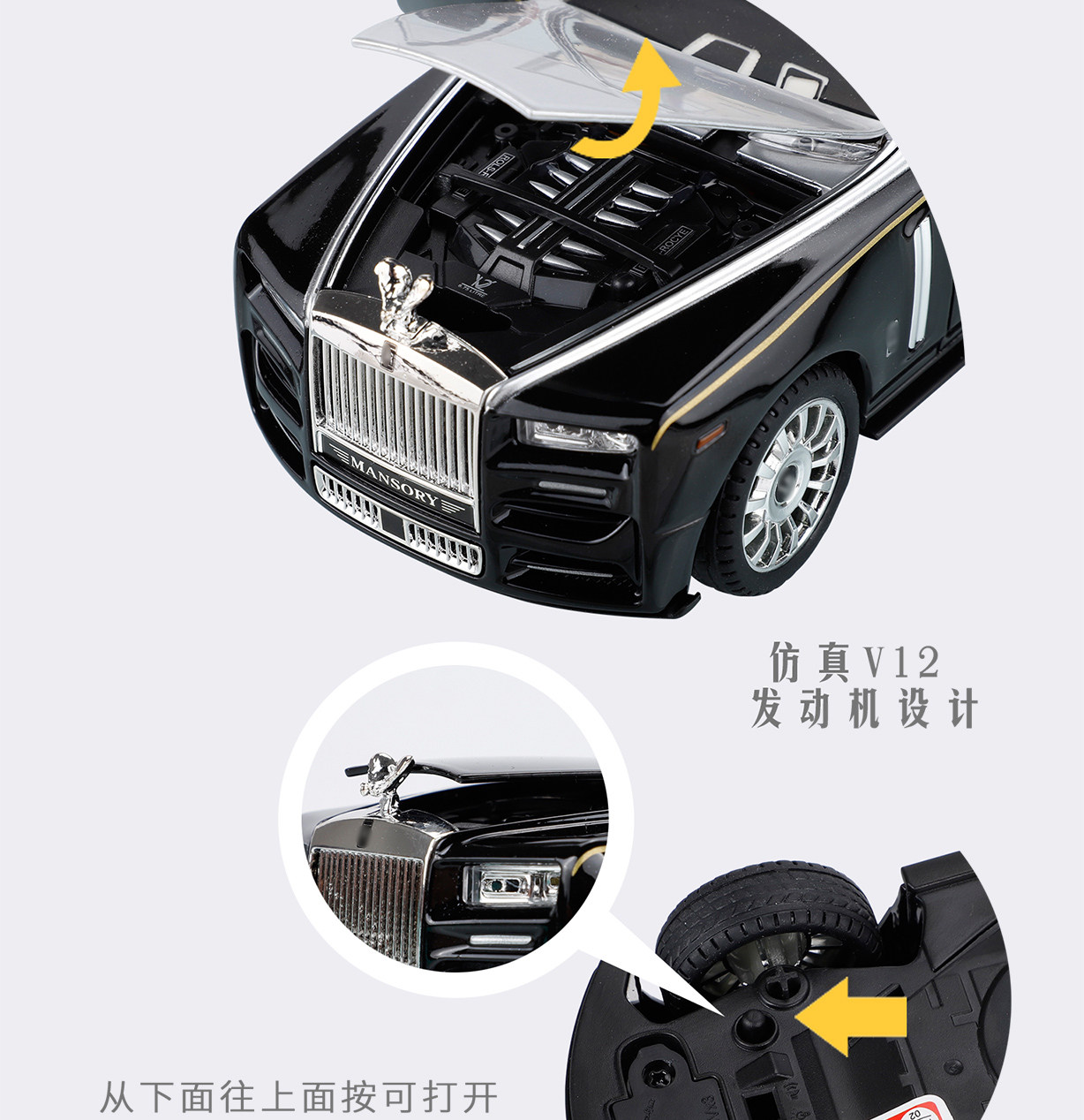 Rolls-Royce Phantom 1:24 Scale Model Car Alloy Simulation Collectible Sports Car Ornament Toy Car for Boys