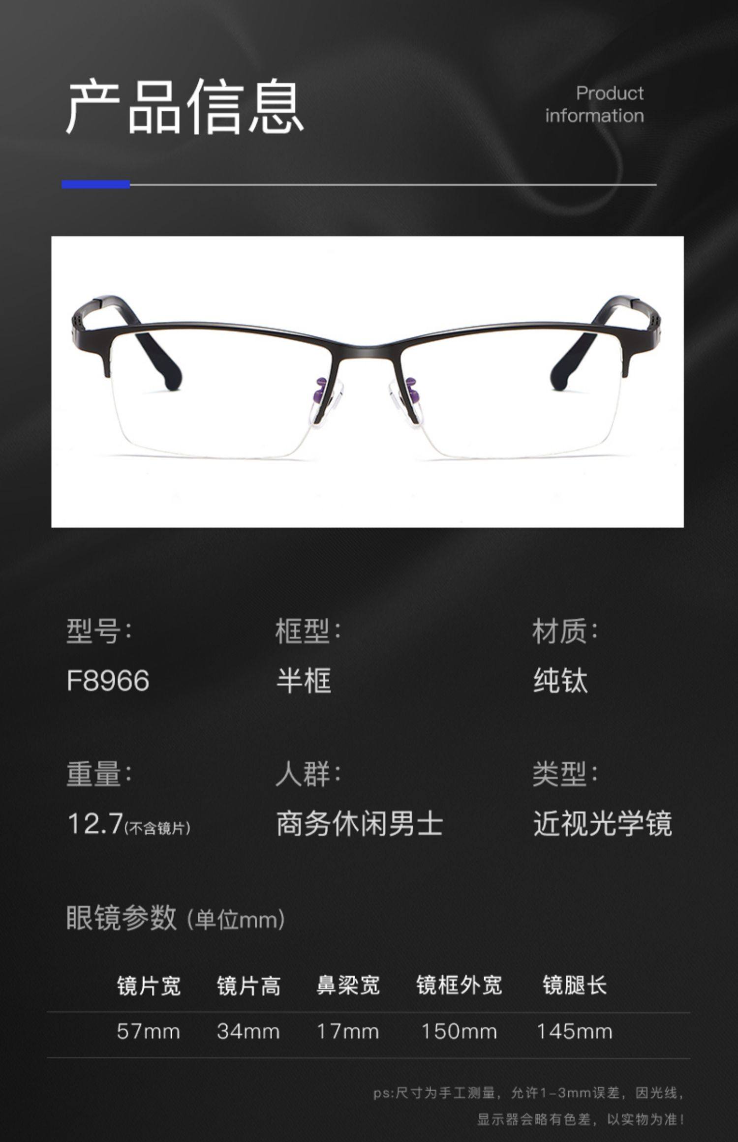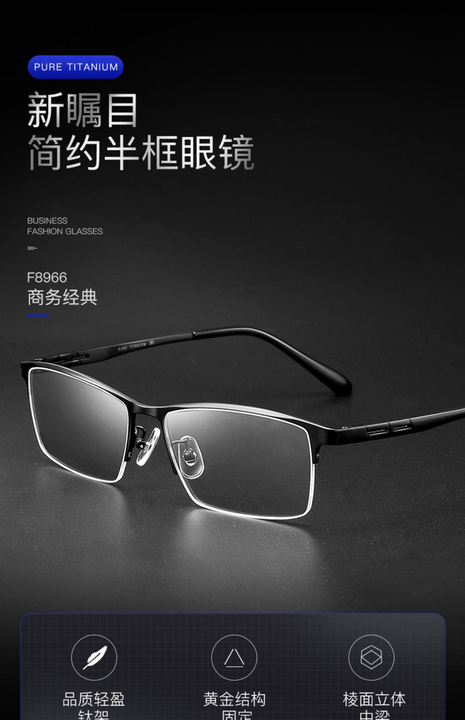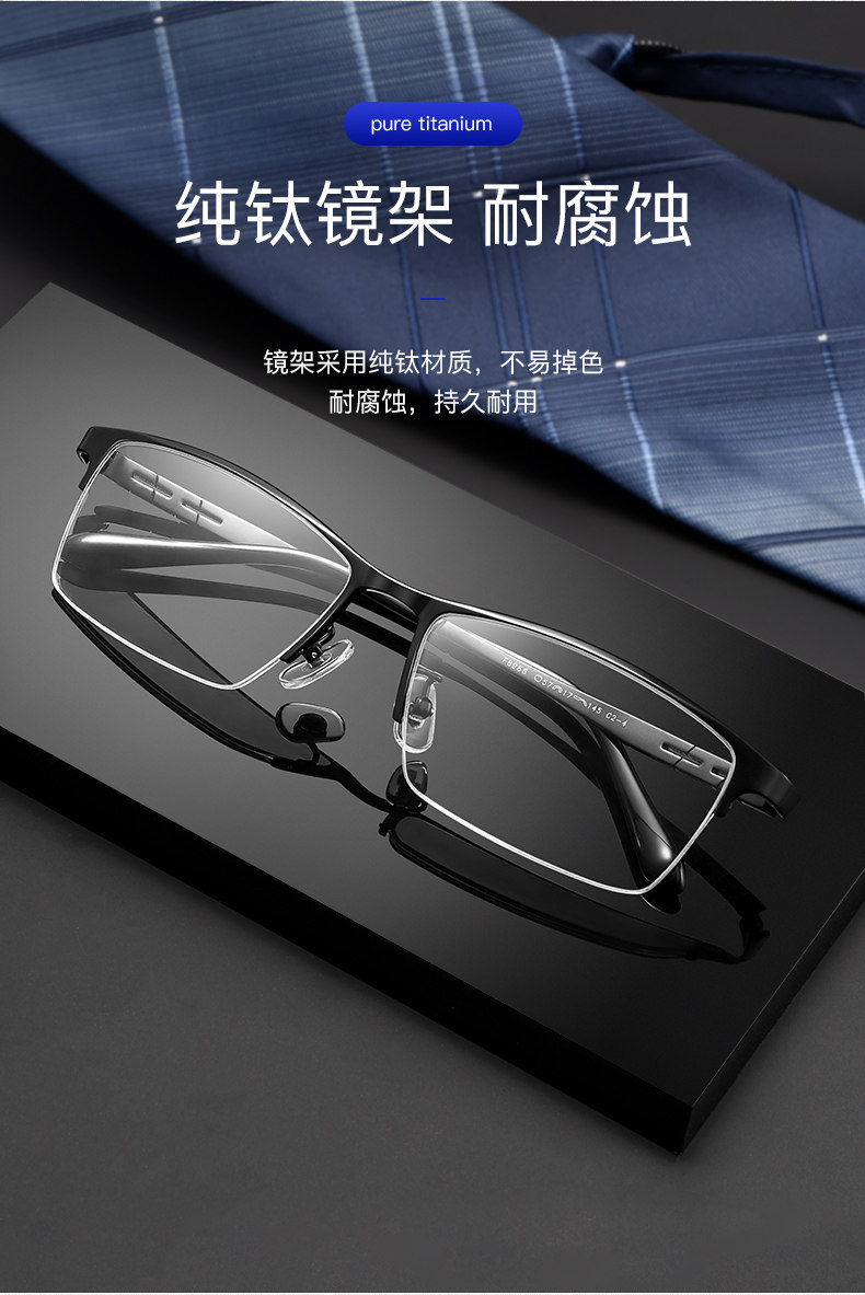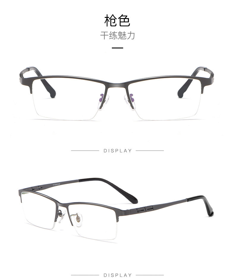 Pure Titanium Ultra-Light Myopia Glasses for Men, Business Half-Frame, Photochromic, Wide Fit for Large Faces, Online Prescription Available, Eyeglass Frames